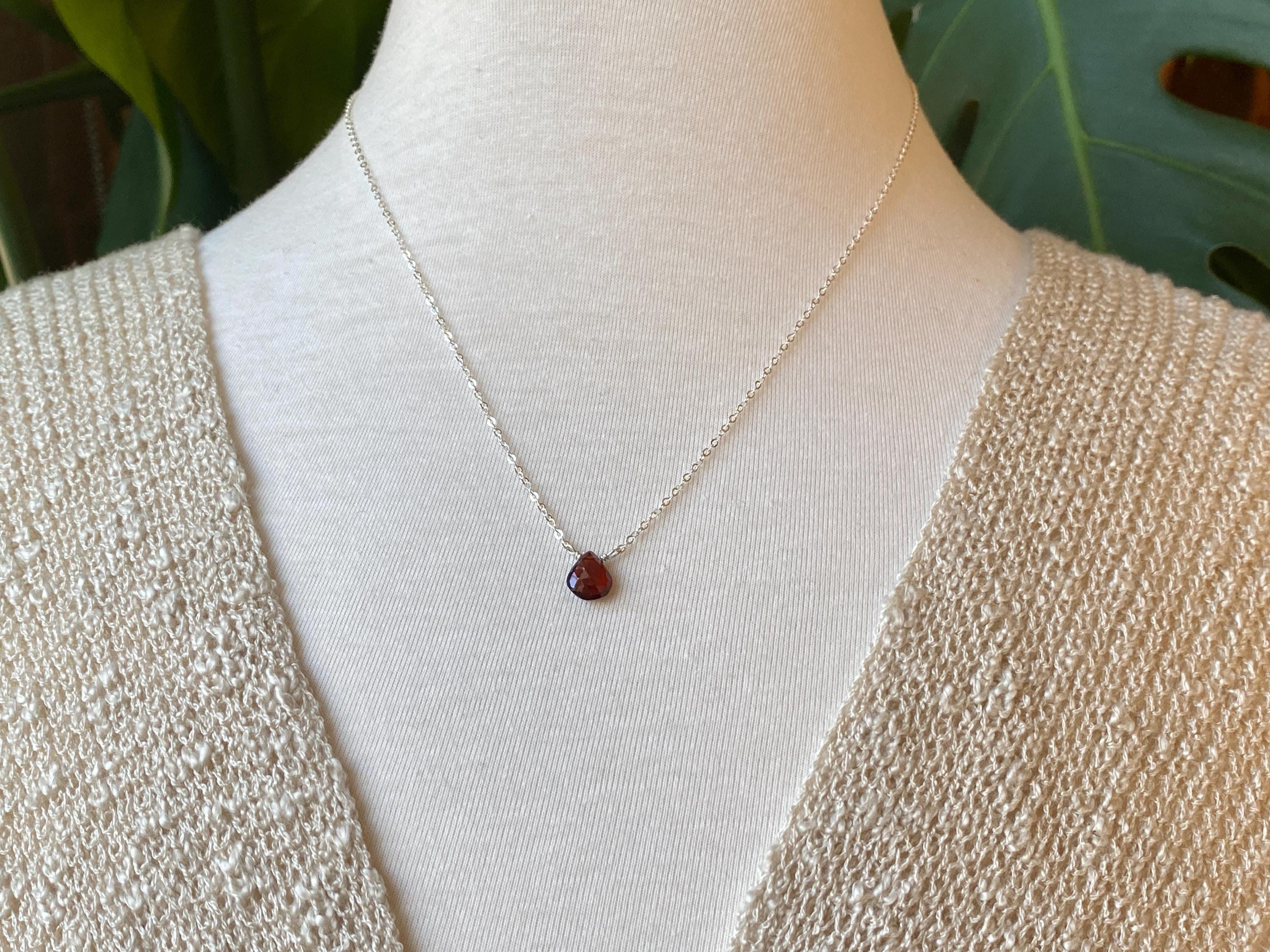 Silver Garnet Necklace, Natural Gemstone Jewelry, Sterling Silver Chain Necklace
