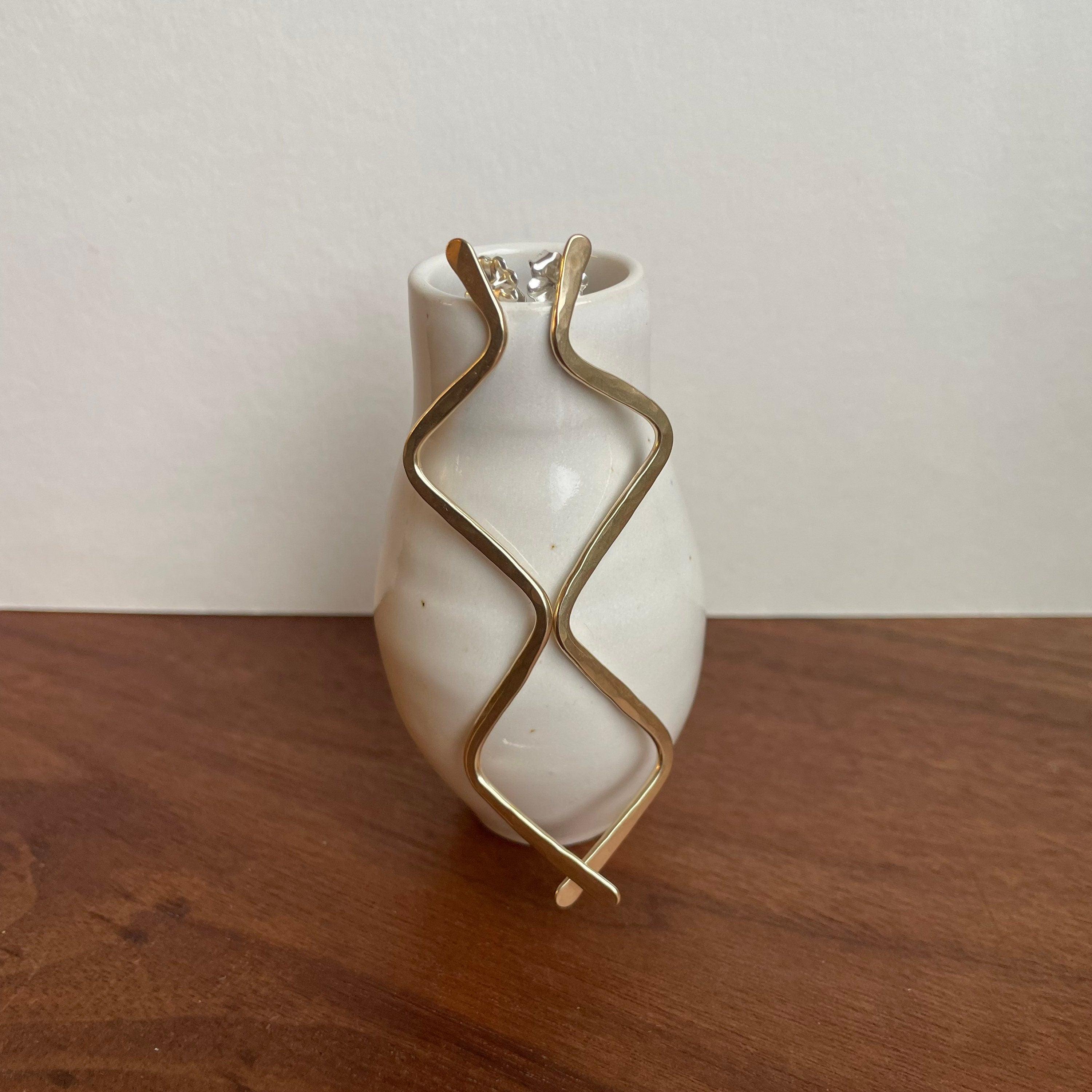 I hand hammer these fun zig zag shaped earrings, leaving softly textured hammer marks. They have an organic texture and shape.