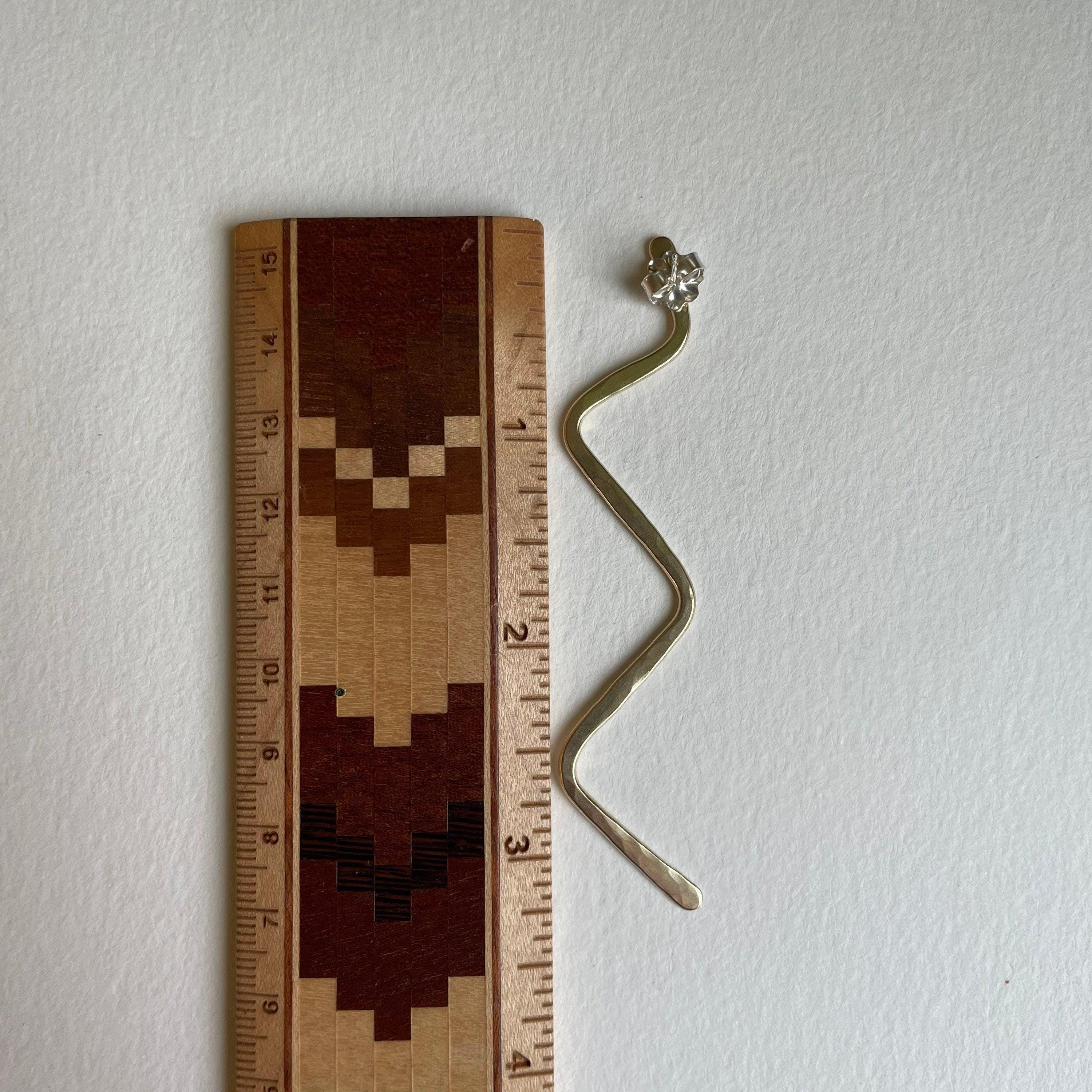 Brass Post Earrings, Zig Zag Long Studs, Long Fun Earrings