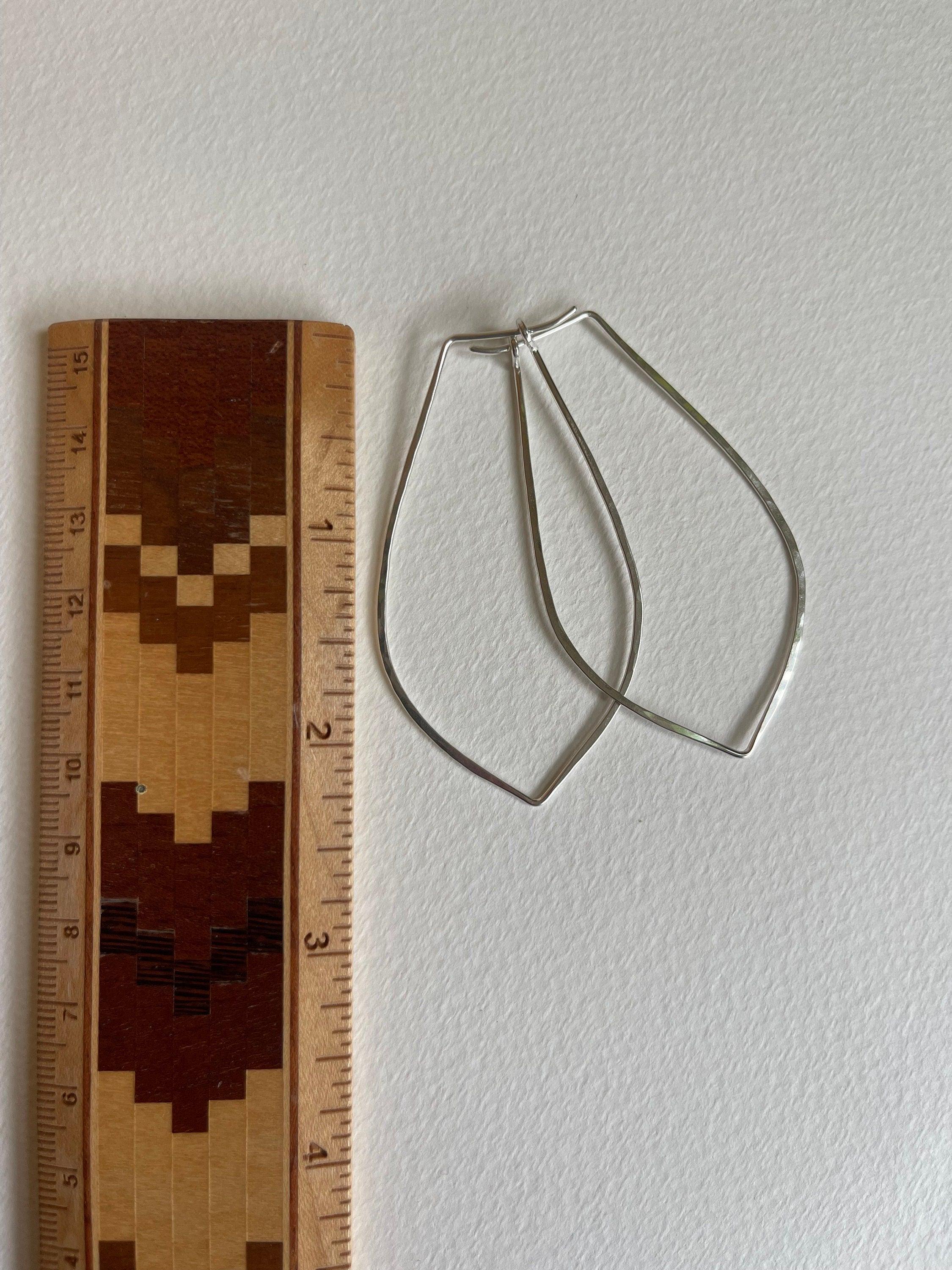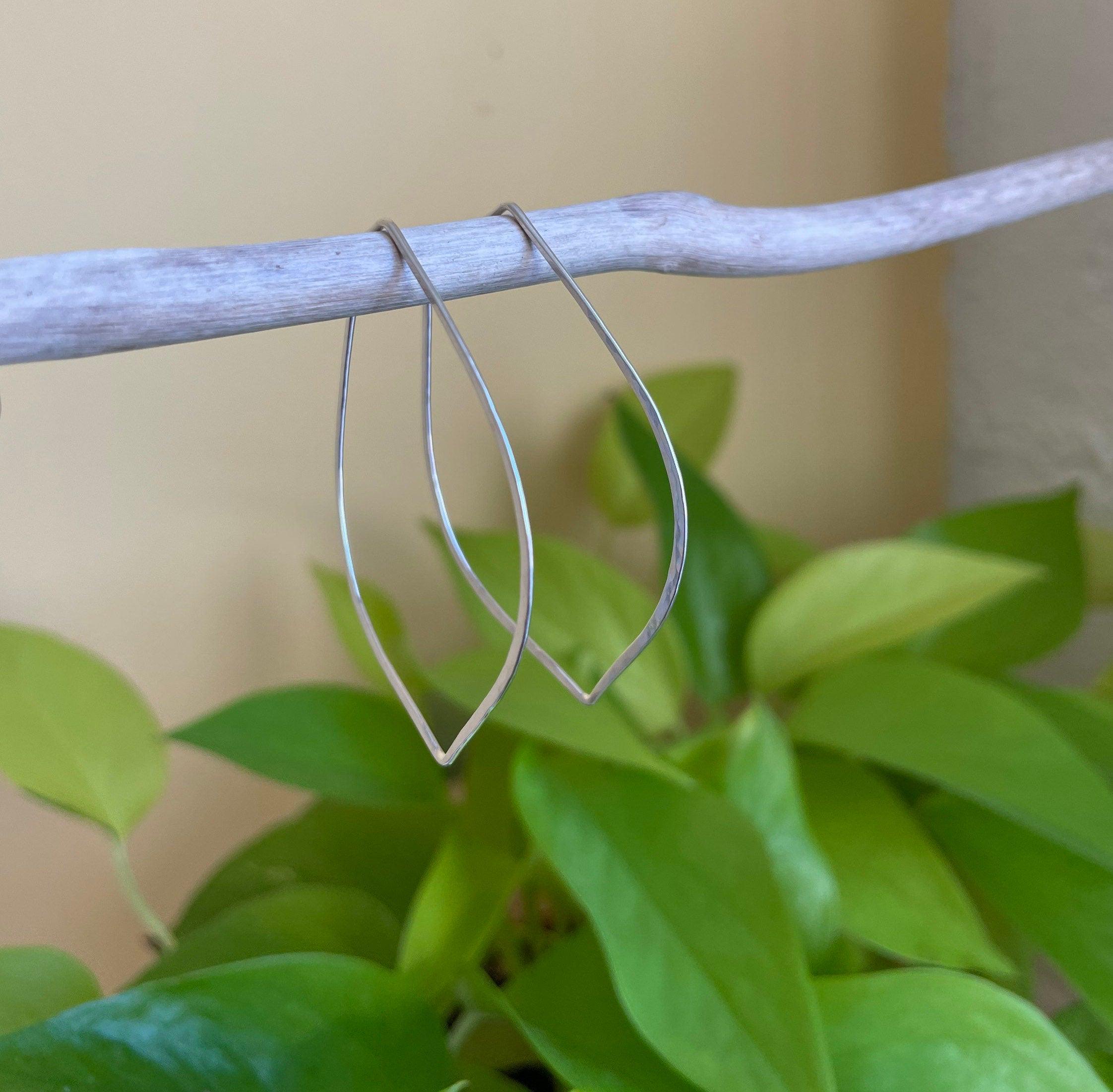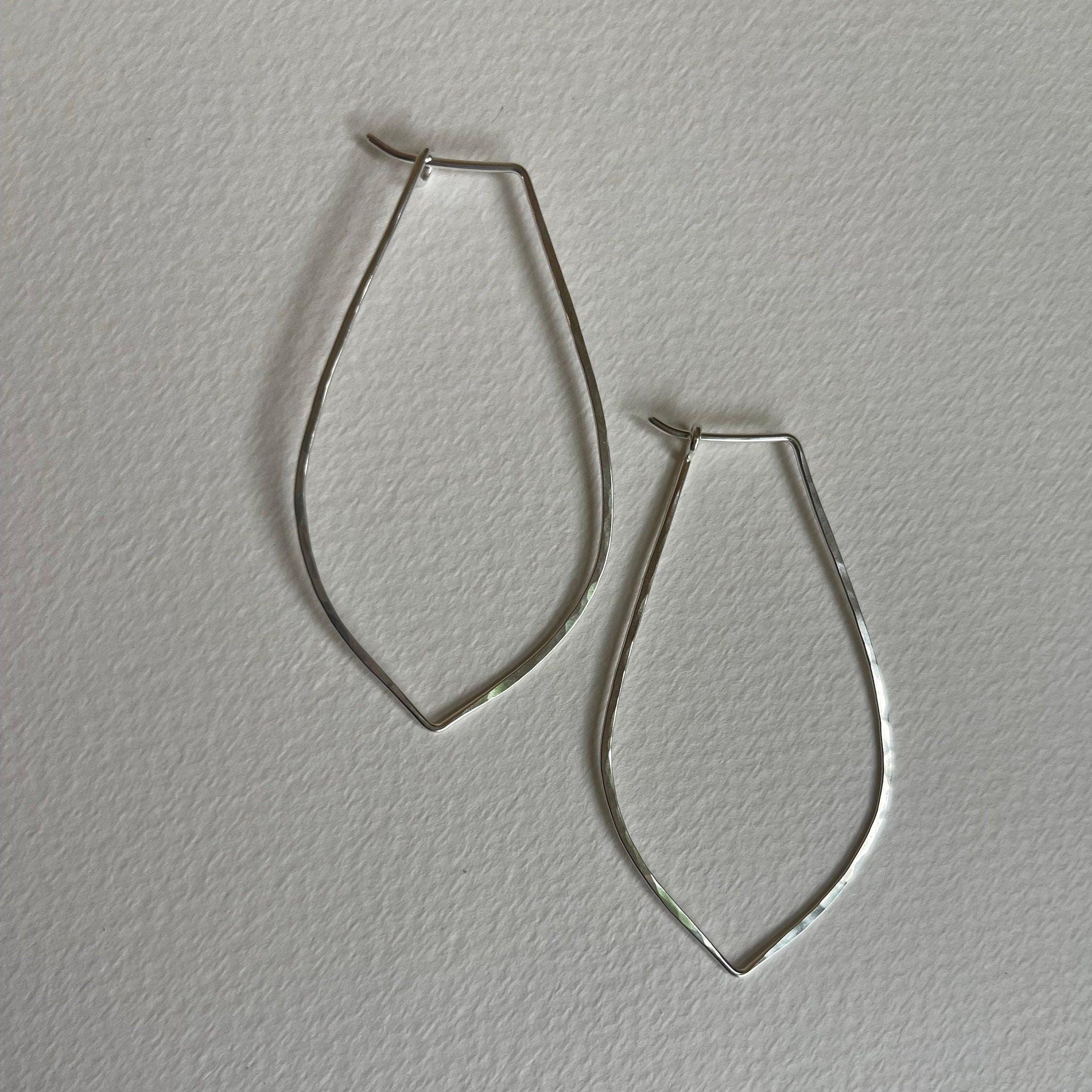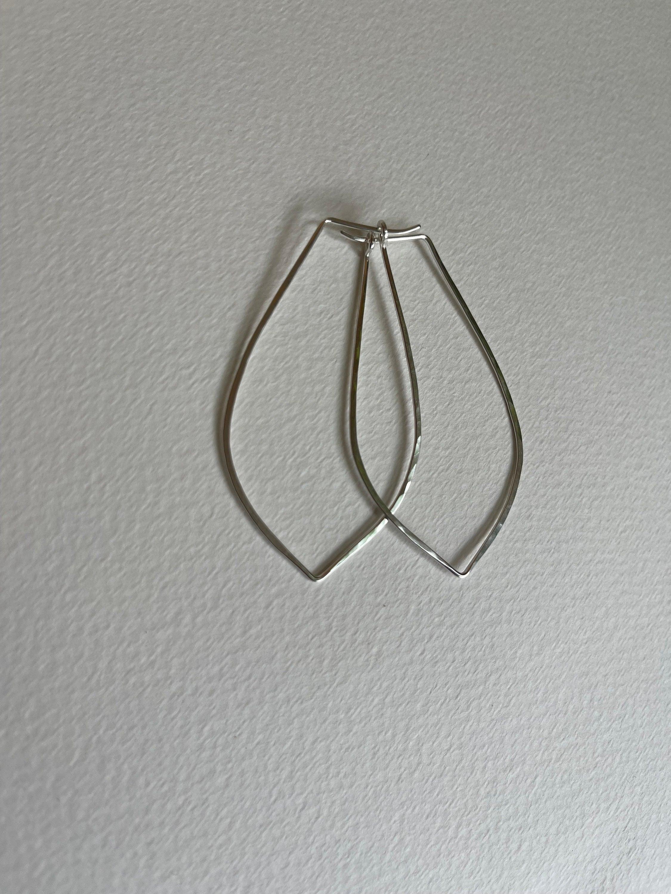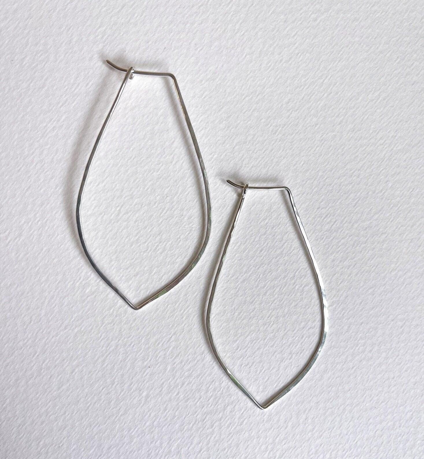 Silver Hoop Earrings, Petal Shaped Marquis, Sterling Silver Jewelry