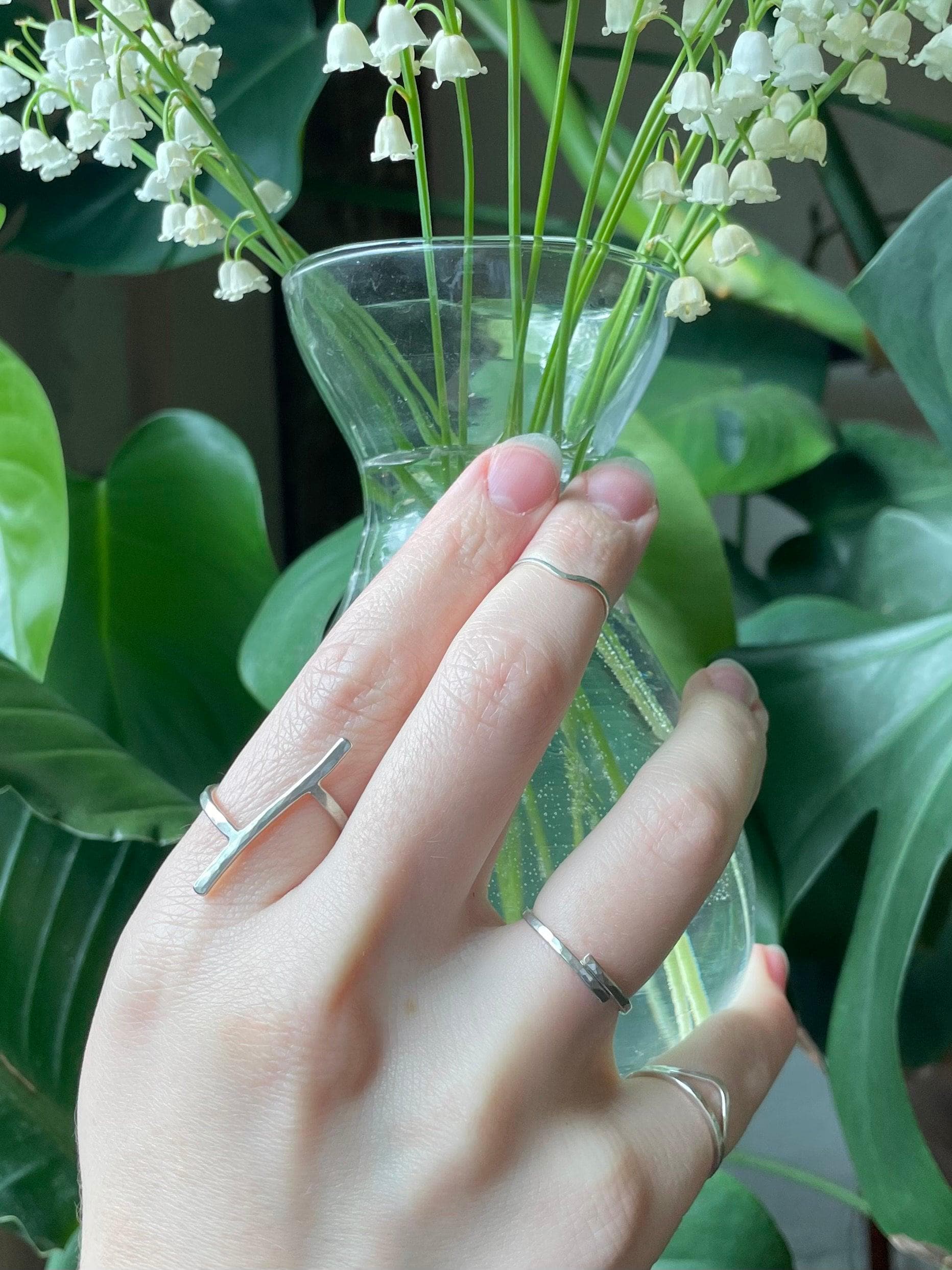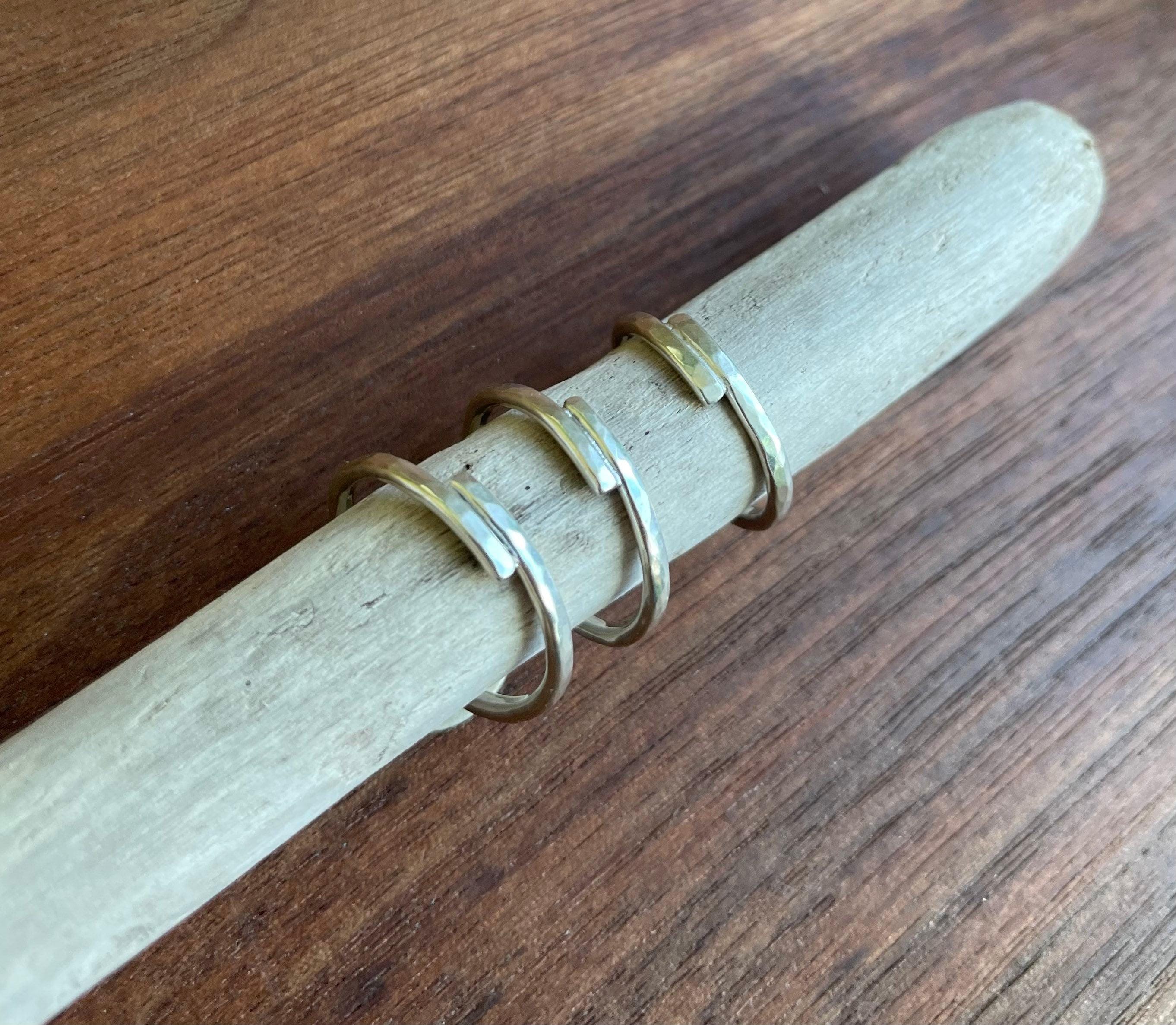 These are thin, delicate & gently hammered solid sterling silver rings. These rings have a soldered overlap joint. They are elegant, light-weight and easy to wear. The hammered texture creates soft facets and a bit of sparkle. Great if your looking for a subtle and minimalist ring. The rings can be midi rings or stacking rings or of course worn on their own. This listing is for one ring. The 5th picture shows stacking options and different styles. You will only receive ONE silver band.