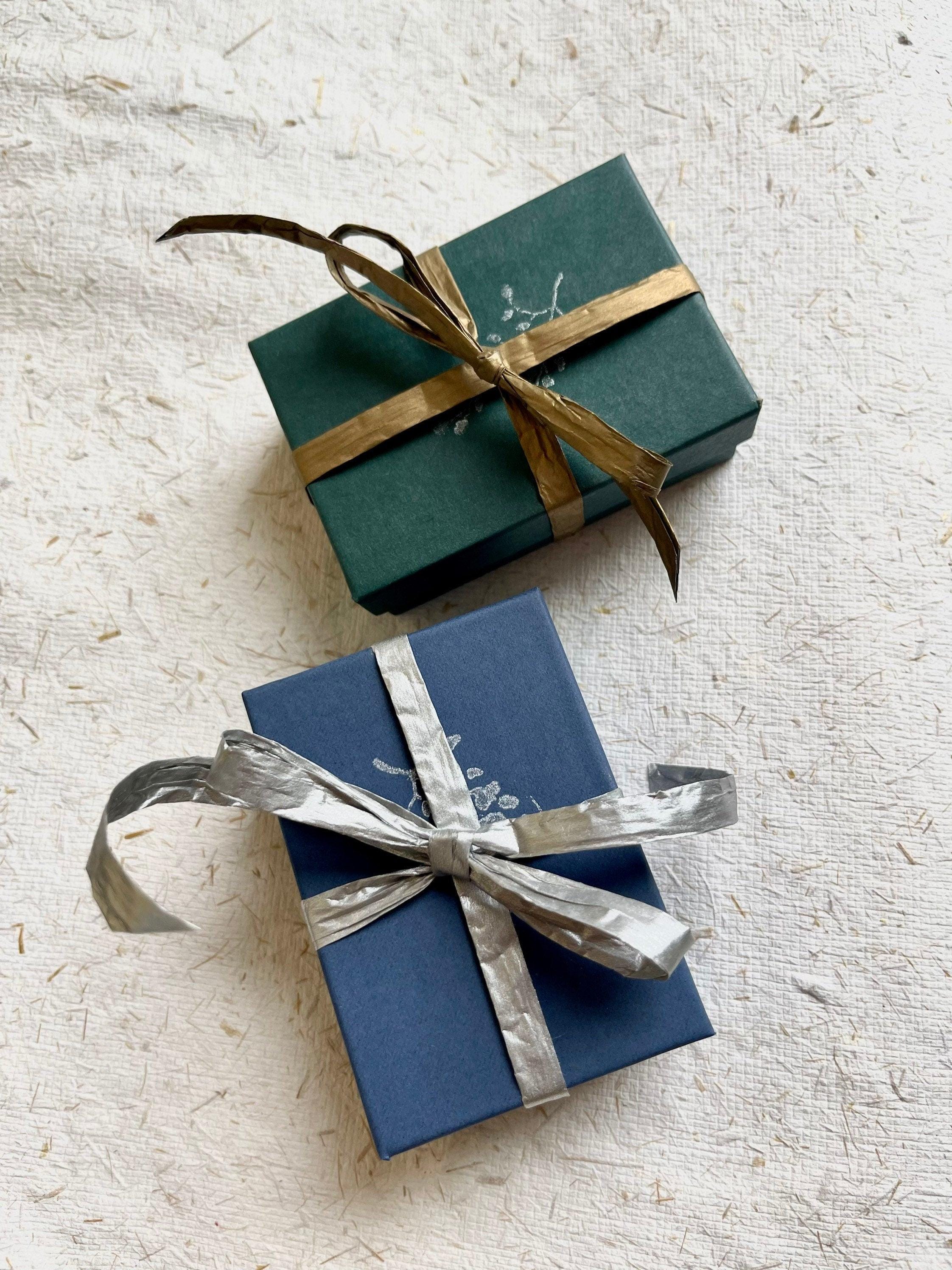 Your ring will arrive in a pretty green or blue box with hand stamped silver branch design on it.