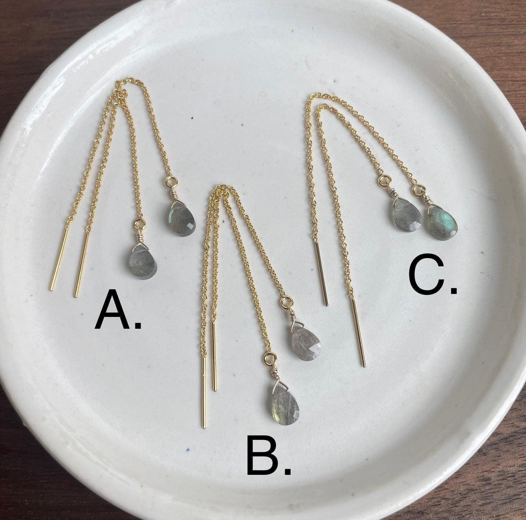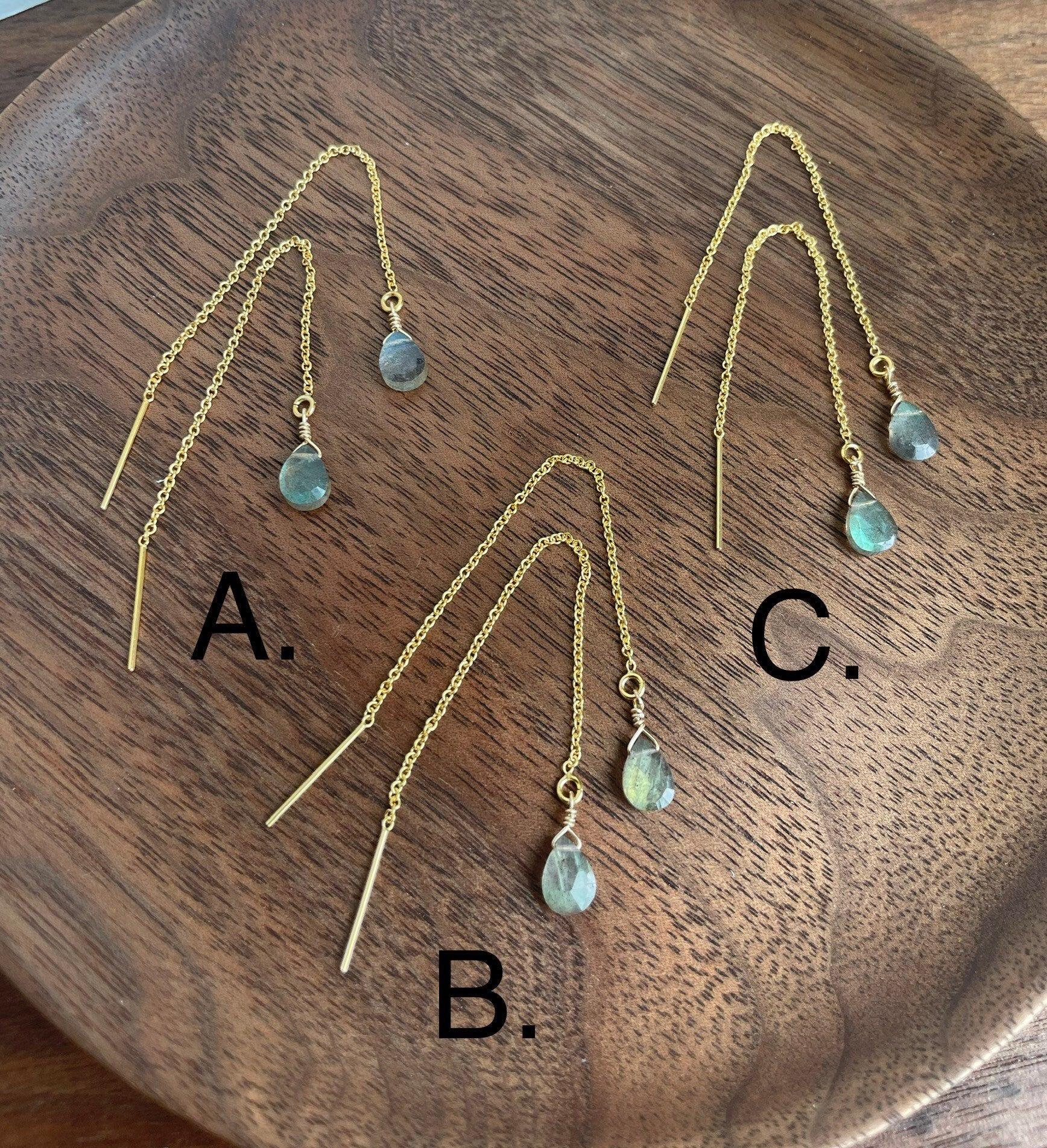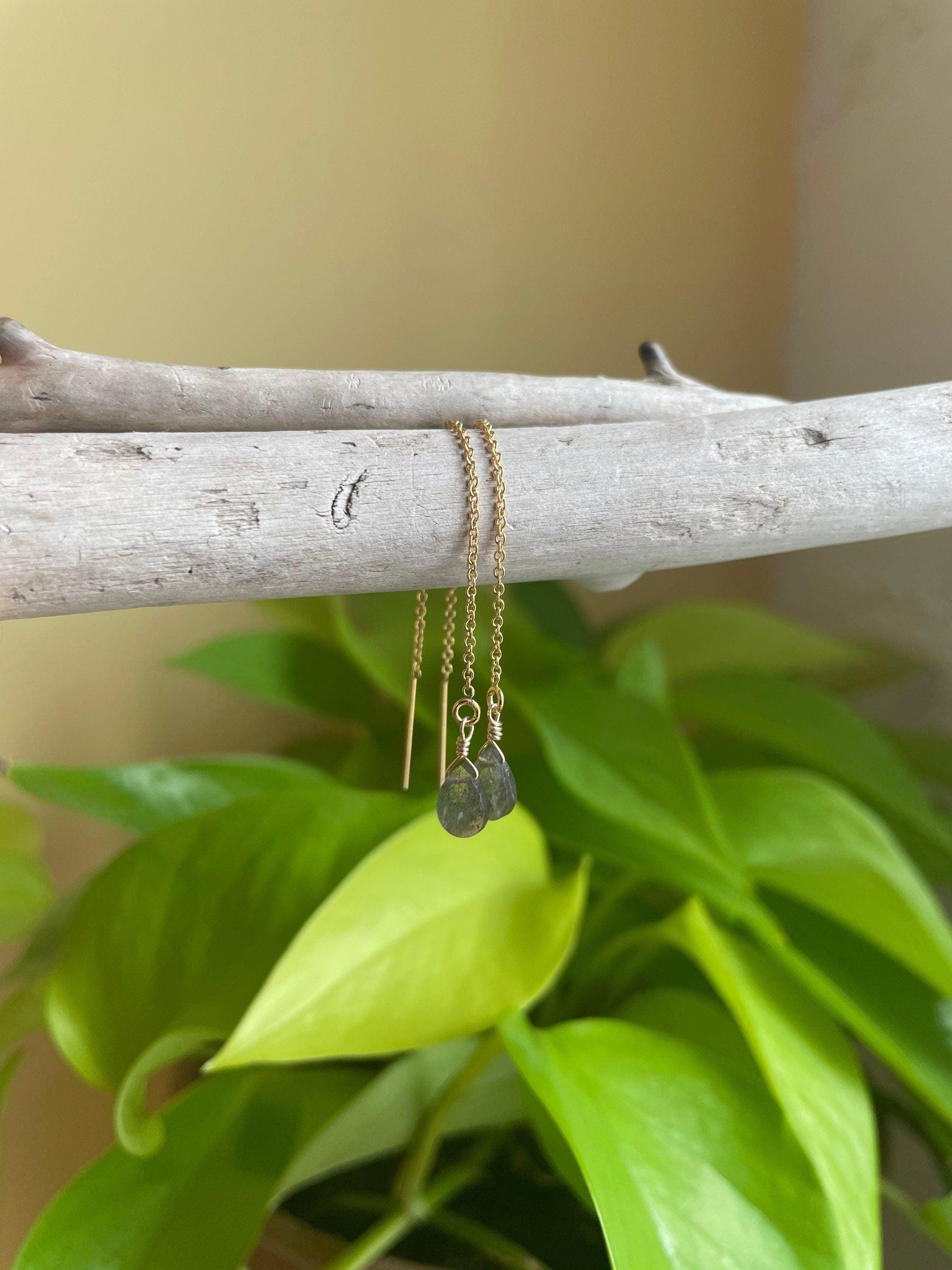 Labradorite Threader Earrings, Natural Gemstone Jewelry, 14K Gold-fill Threader