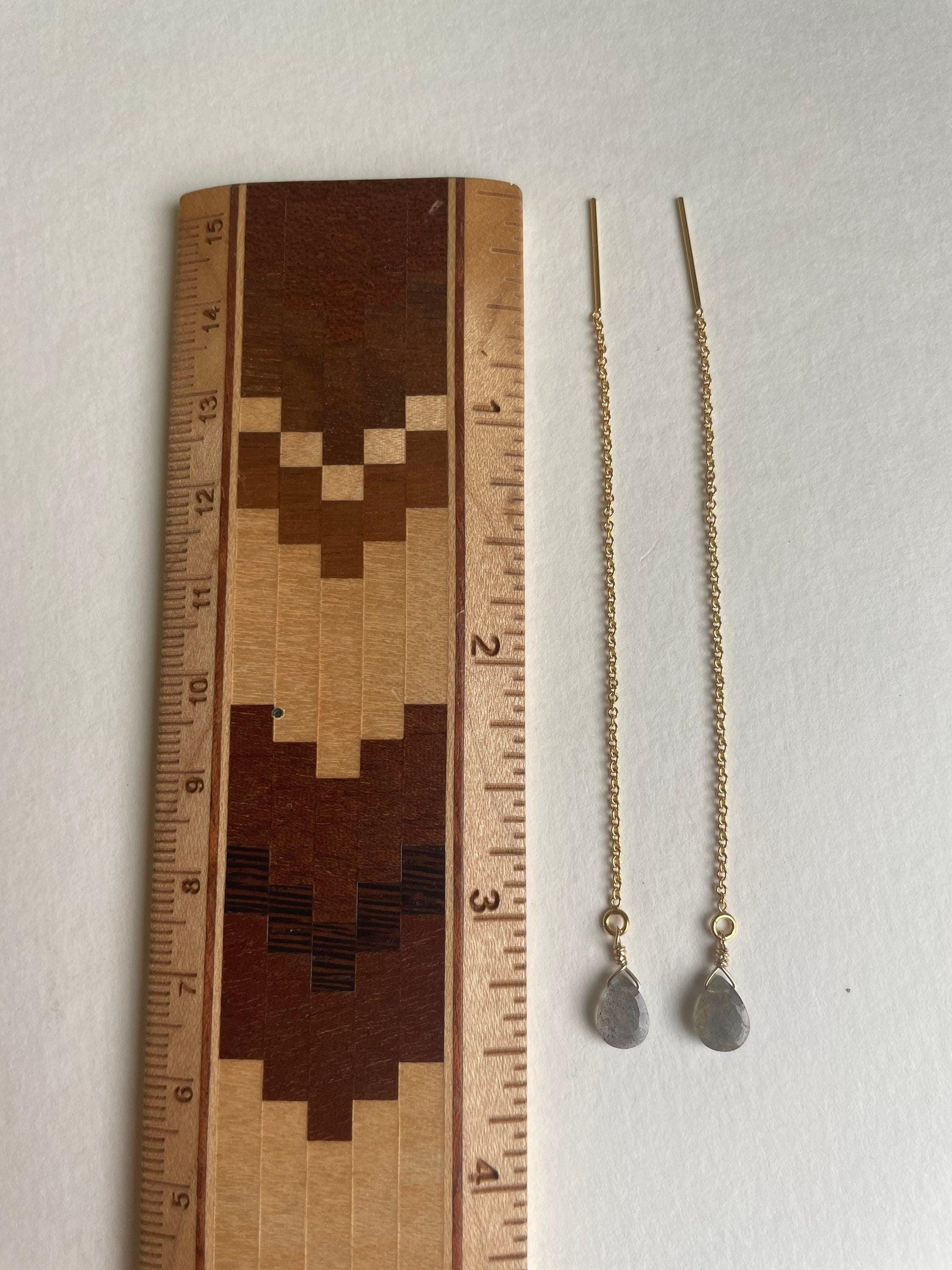 A pair of beautiful handmade labradorite gold threader earrings. Perfect for everyday use and special occasions. These are made with a delicate teardrop natural labradorite gemstone faceted to a threader chain. These are 3.5" long but will dangle at a shorter length when they are in your ears.
