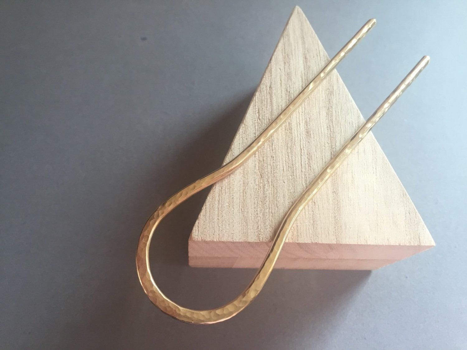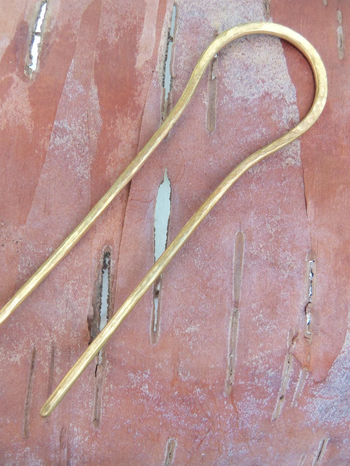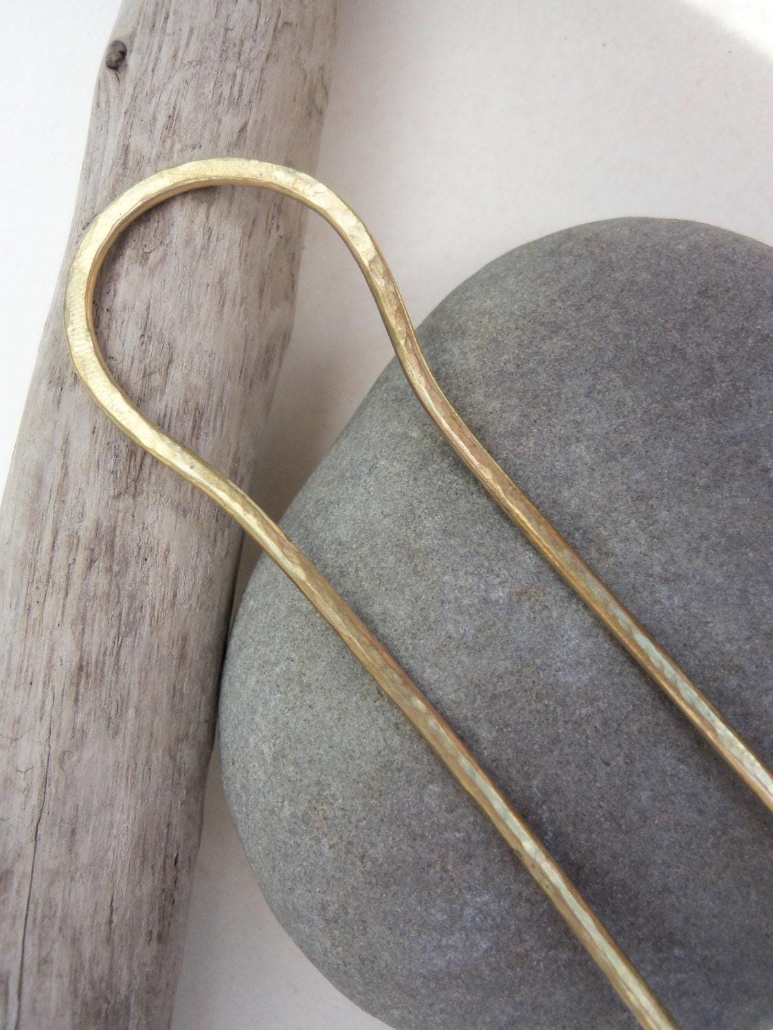 I hand make these elegant, useful and simple hair sticks from solid brass. Hand hammered into shape from thick wire for extra strength so they will last. Because each pin is handmade the hair pin you will receive may differ slightly from the one pictured.