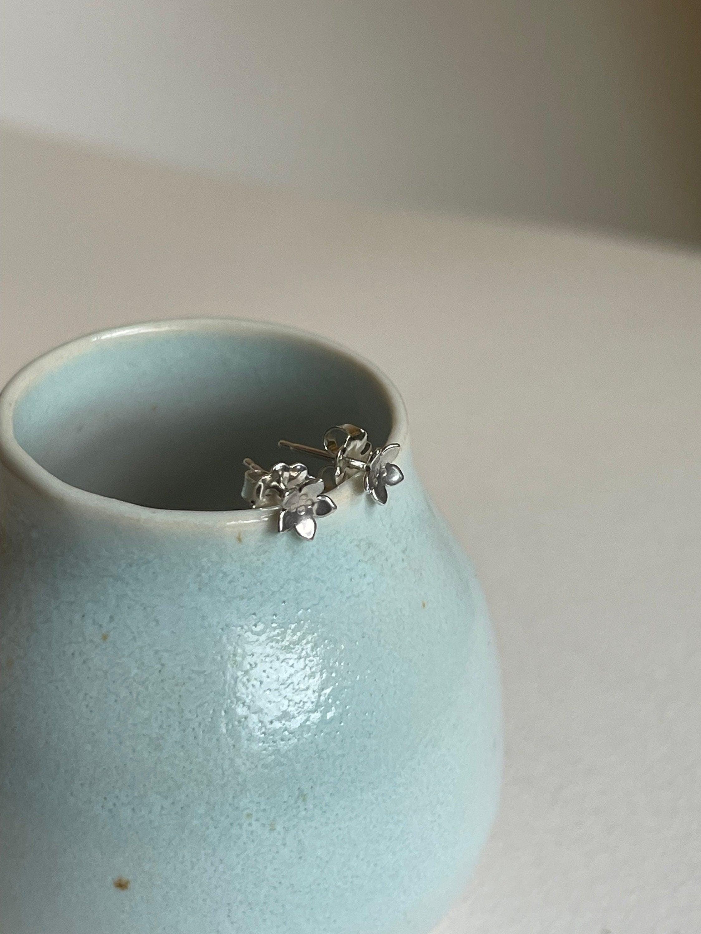 Silver Flower Stud Earrings, Sterling Silver Posts,