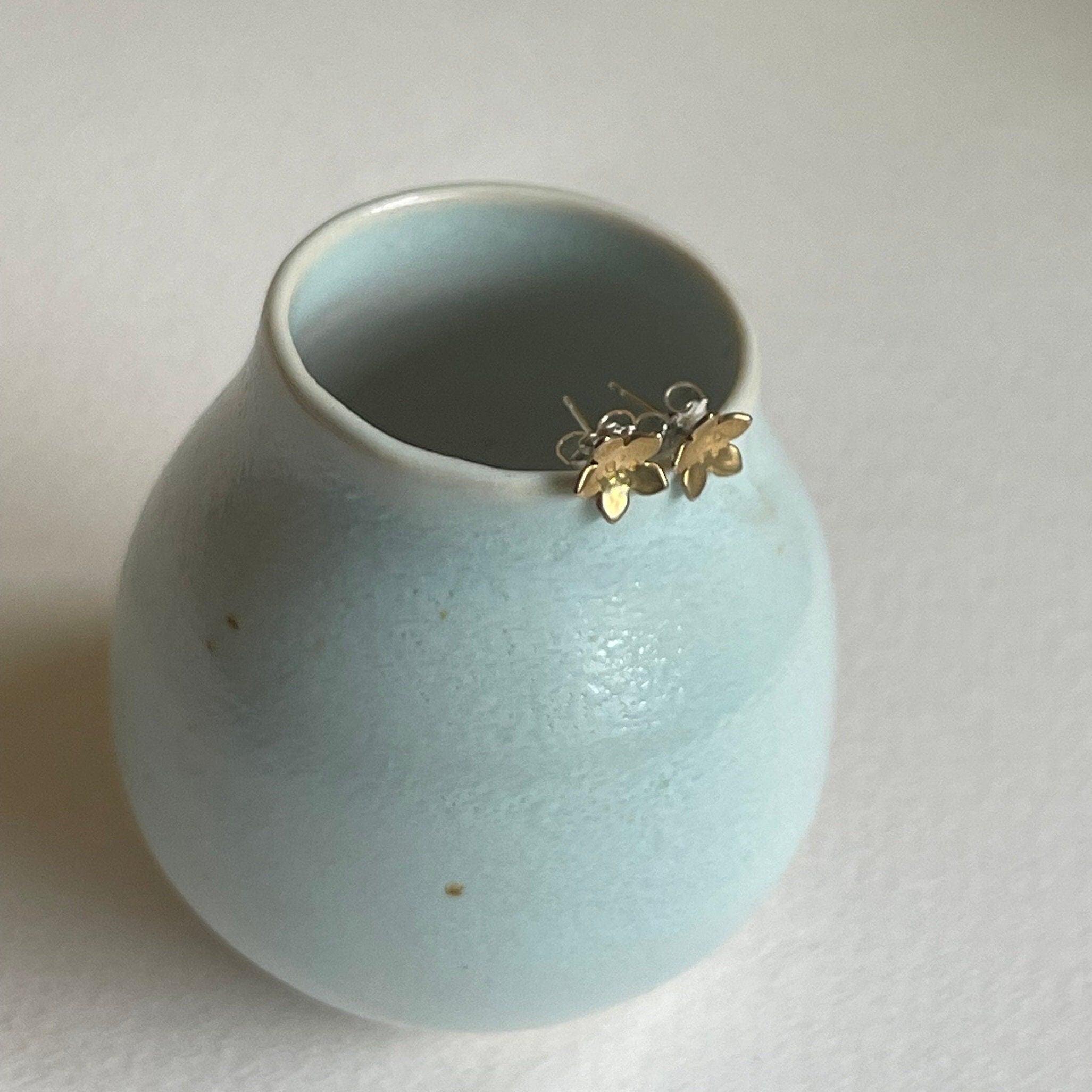 Brass Flower Stud Earrings, Sterling Silver Posts,