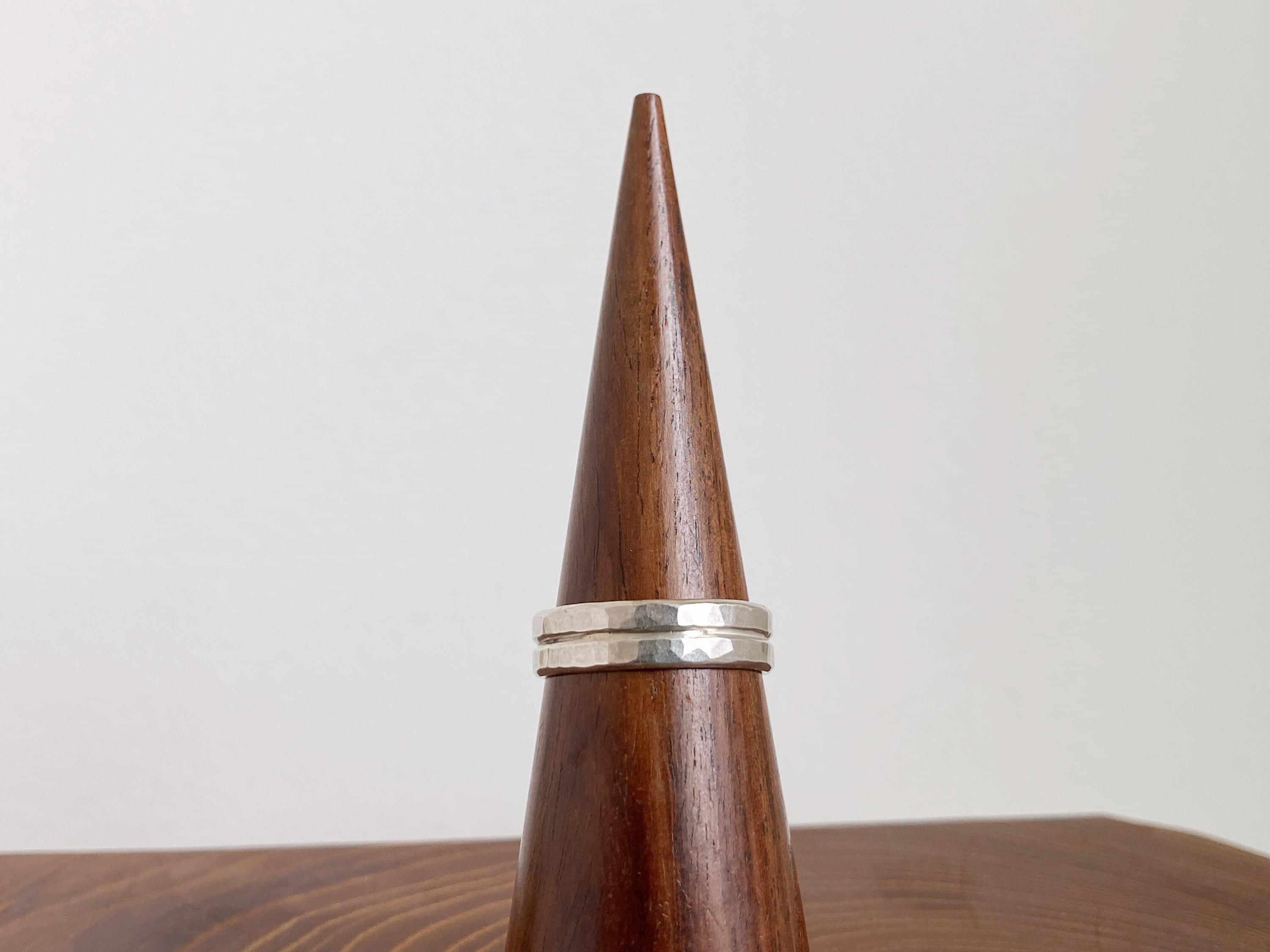Sterling Silver Thick Band, Double Silver Hammered Ring, Stacking Ring