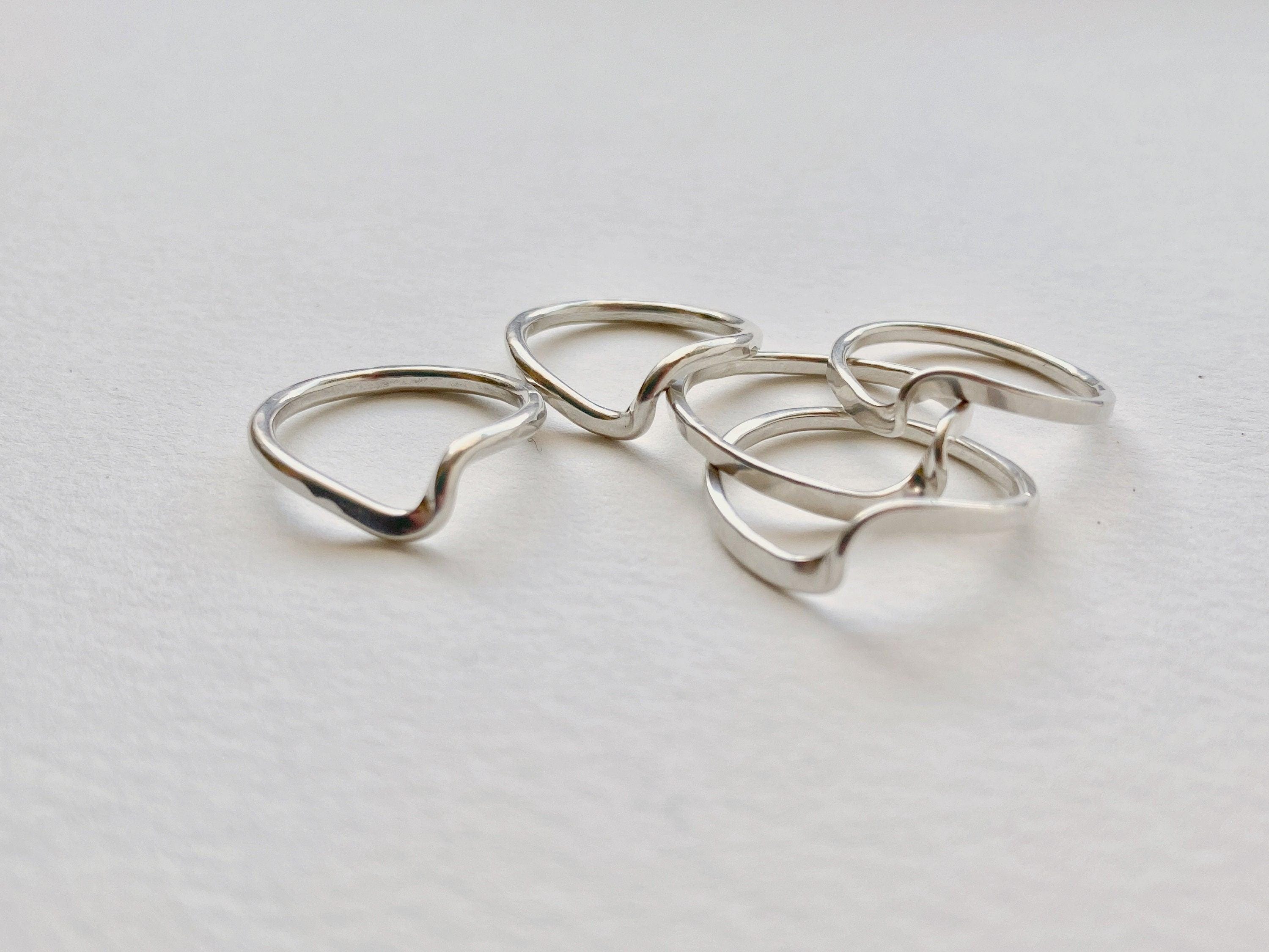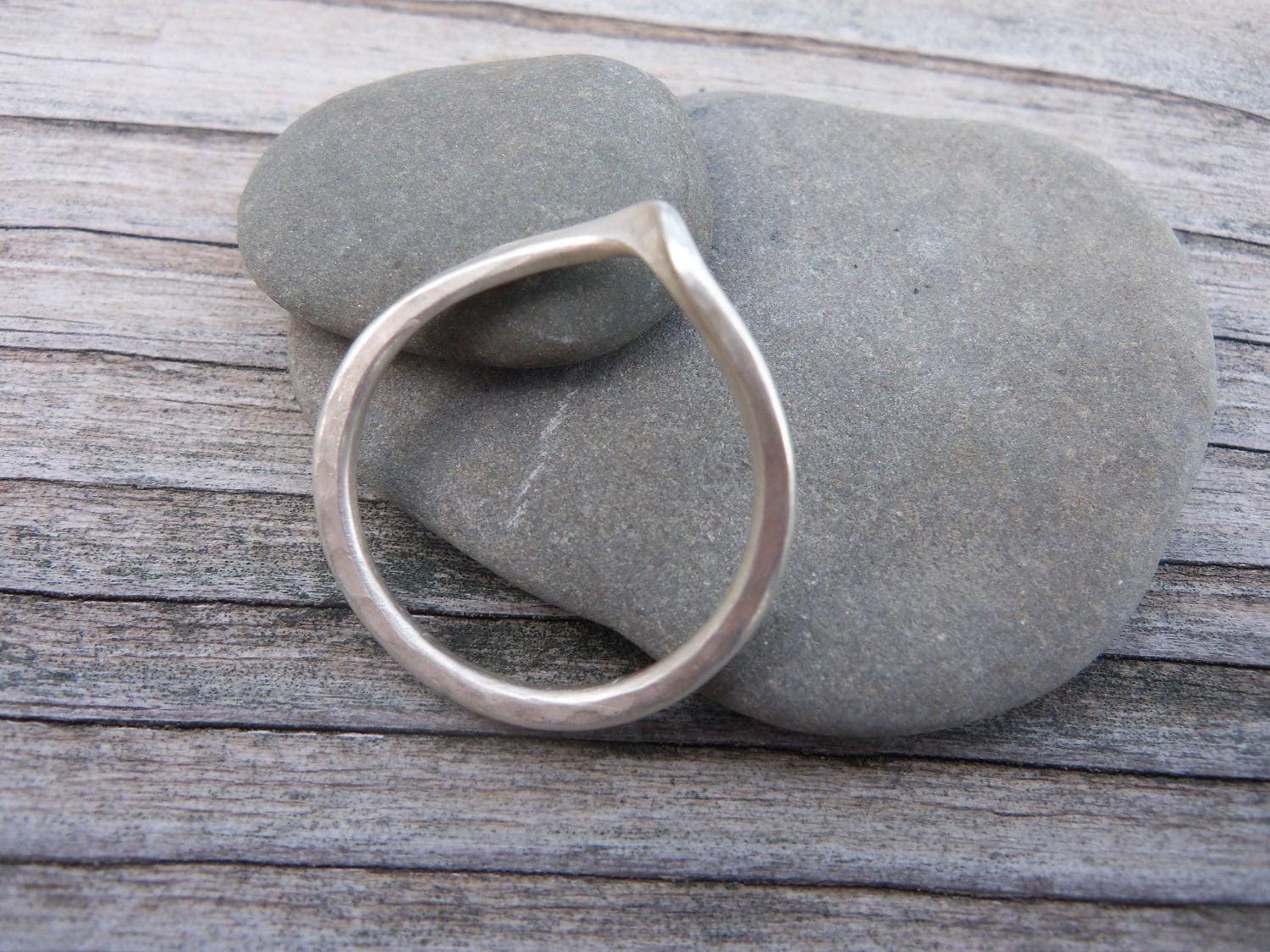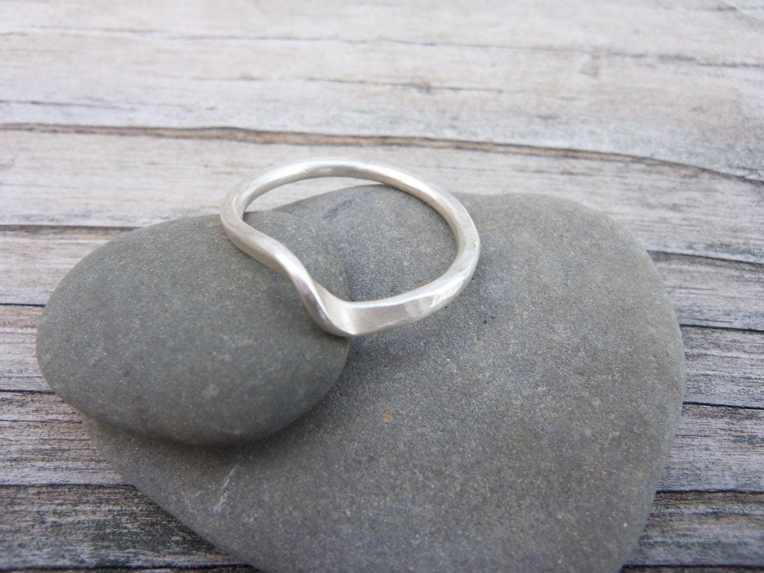 This is a classic sterling silver wave like curved ring. I make these by forging, hammering, bending and soldering sterling silver wire. It is minimal and elegant and subtly catches the light.