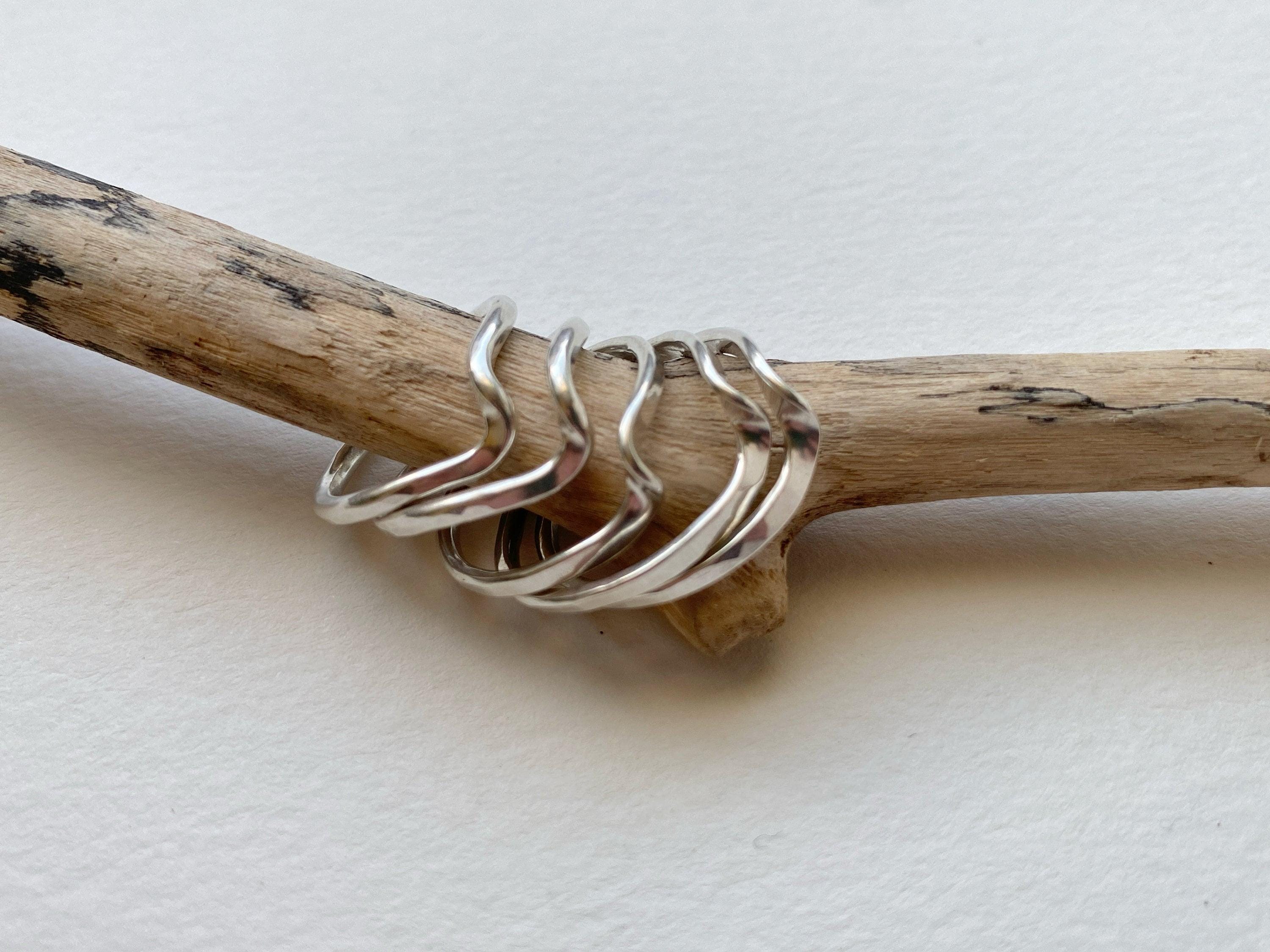 Sterling Silver Wave Ring, Pretty Twist Ring, Hand Hammered