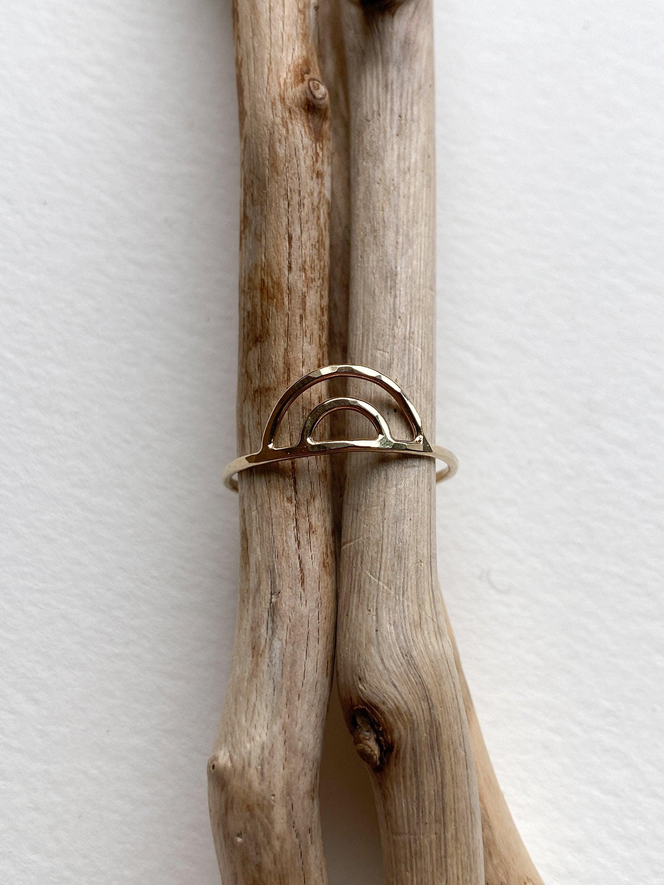 Arches Gold Ring, 14k Gold-fill Hammered Rainbow Band, Gold ring