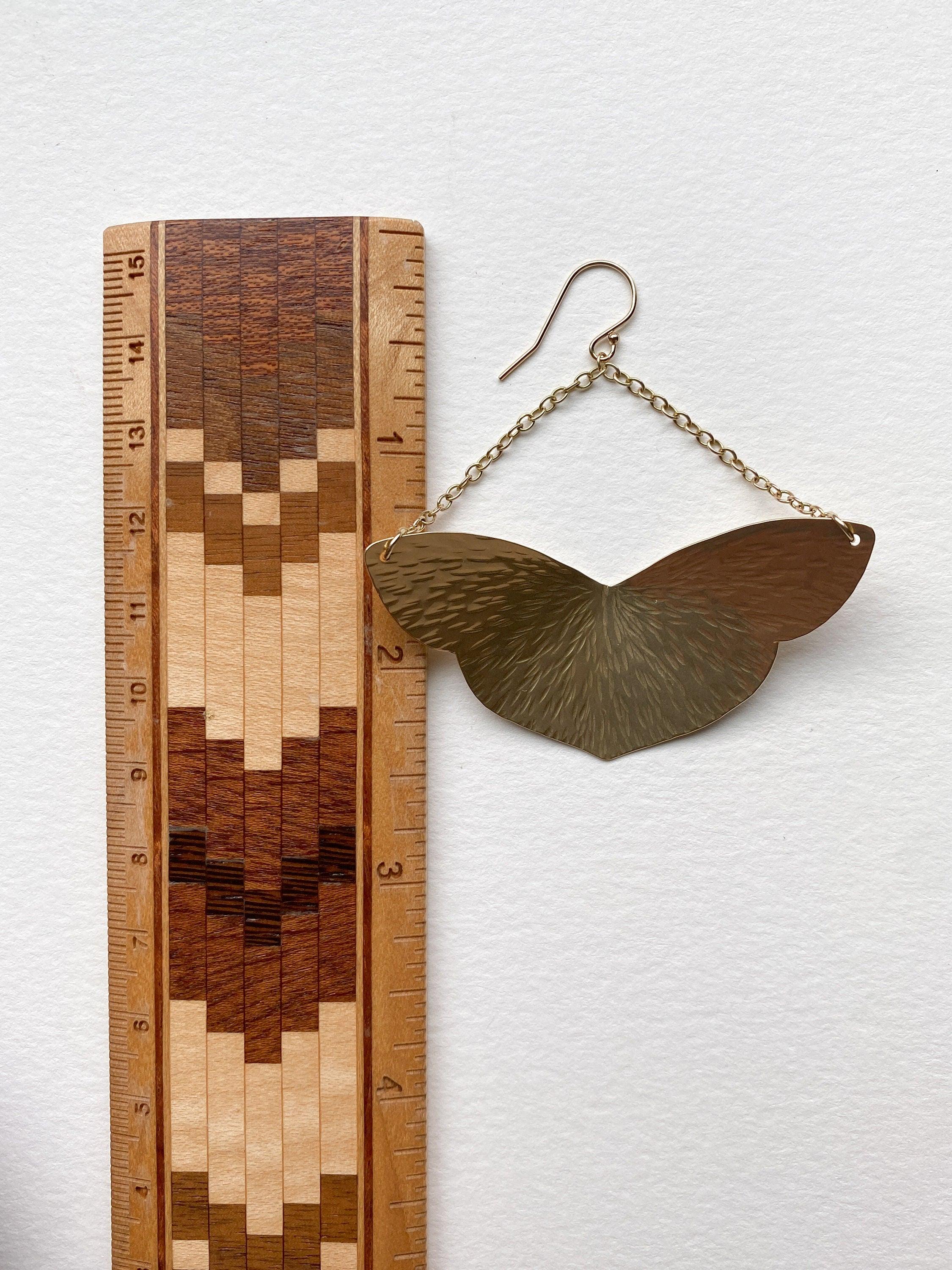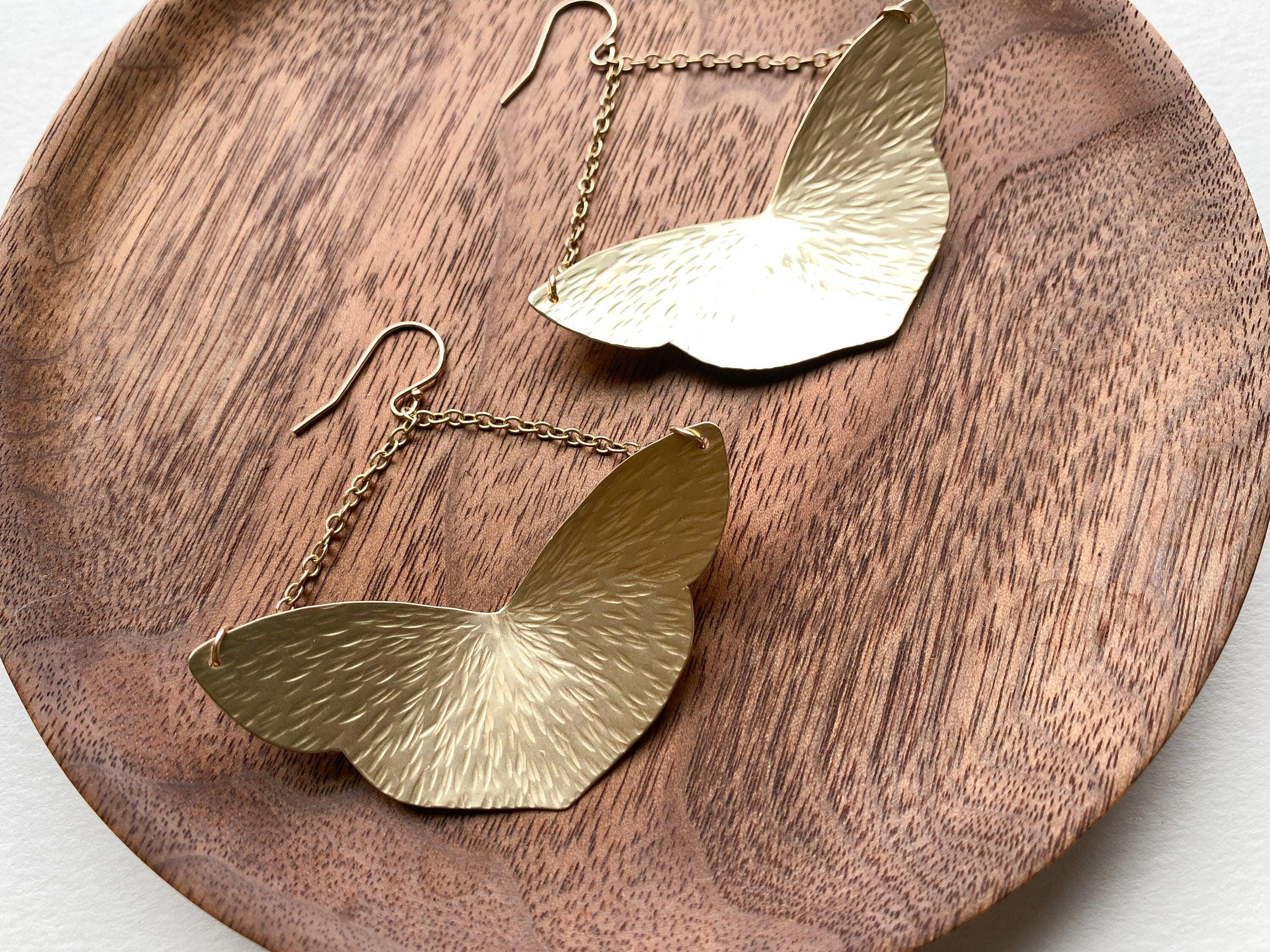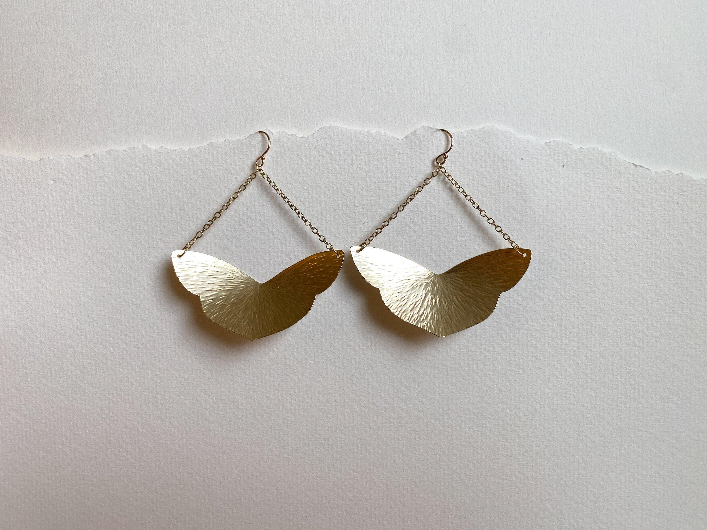 Large Brass Moth Shape Trapeze Earrings. Brass Wing Earrings,