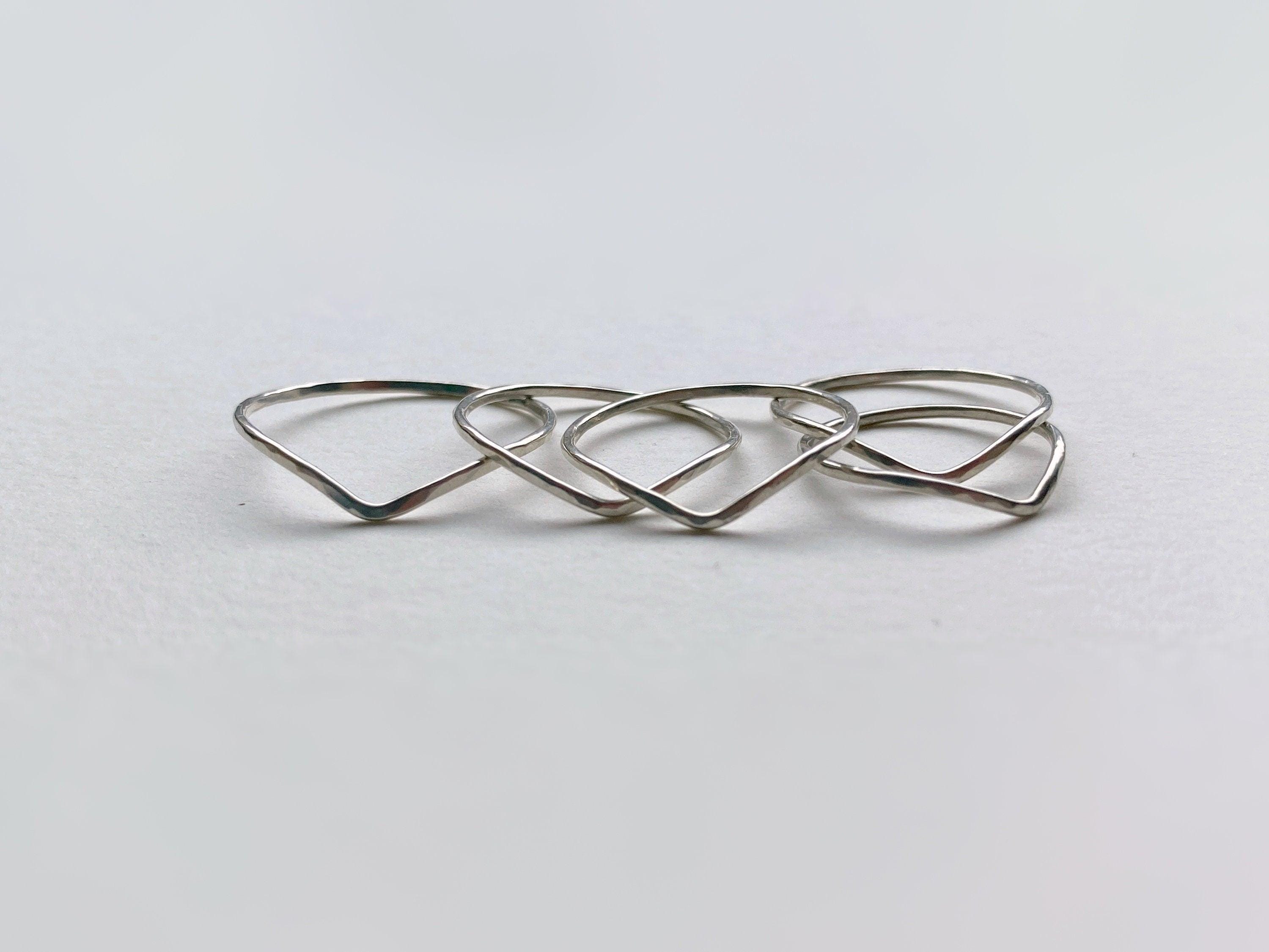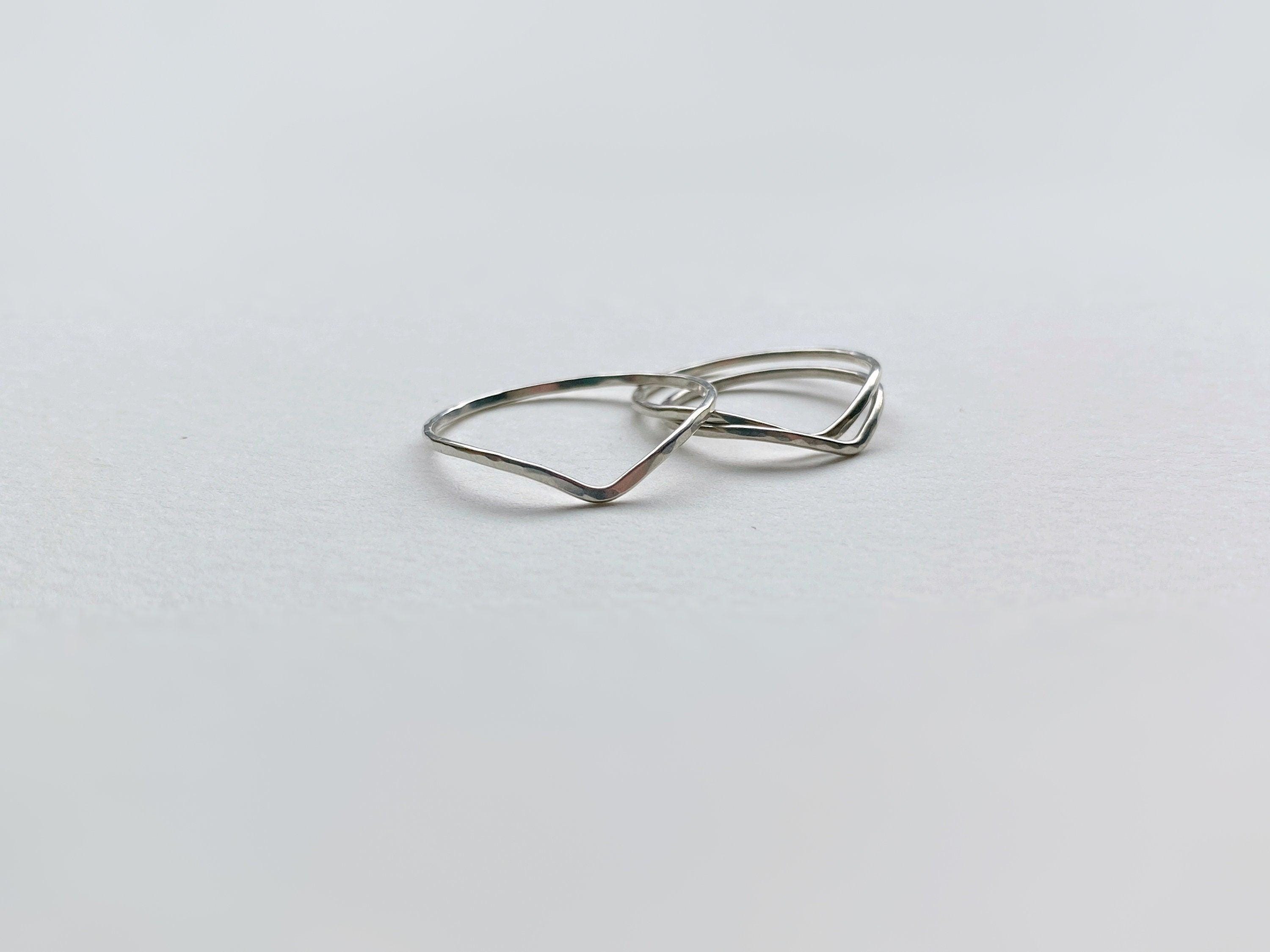 These are thin, delicate & gently hammered solid sterling silver rings. These rings have a subtle V shape. They are elegant, light-weight and easy to wear. The hammered texture creates soft facets and a bit of sparkle. Great if your looking for a subtle and minimalist ring. The rings can be midi rings or stacking rings or of course worn on their own. This listing is for one ring. You will only receive ONE silver band.