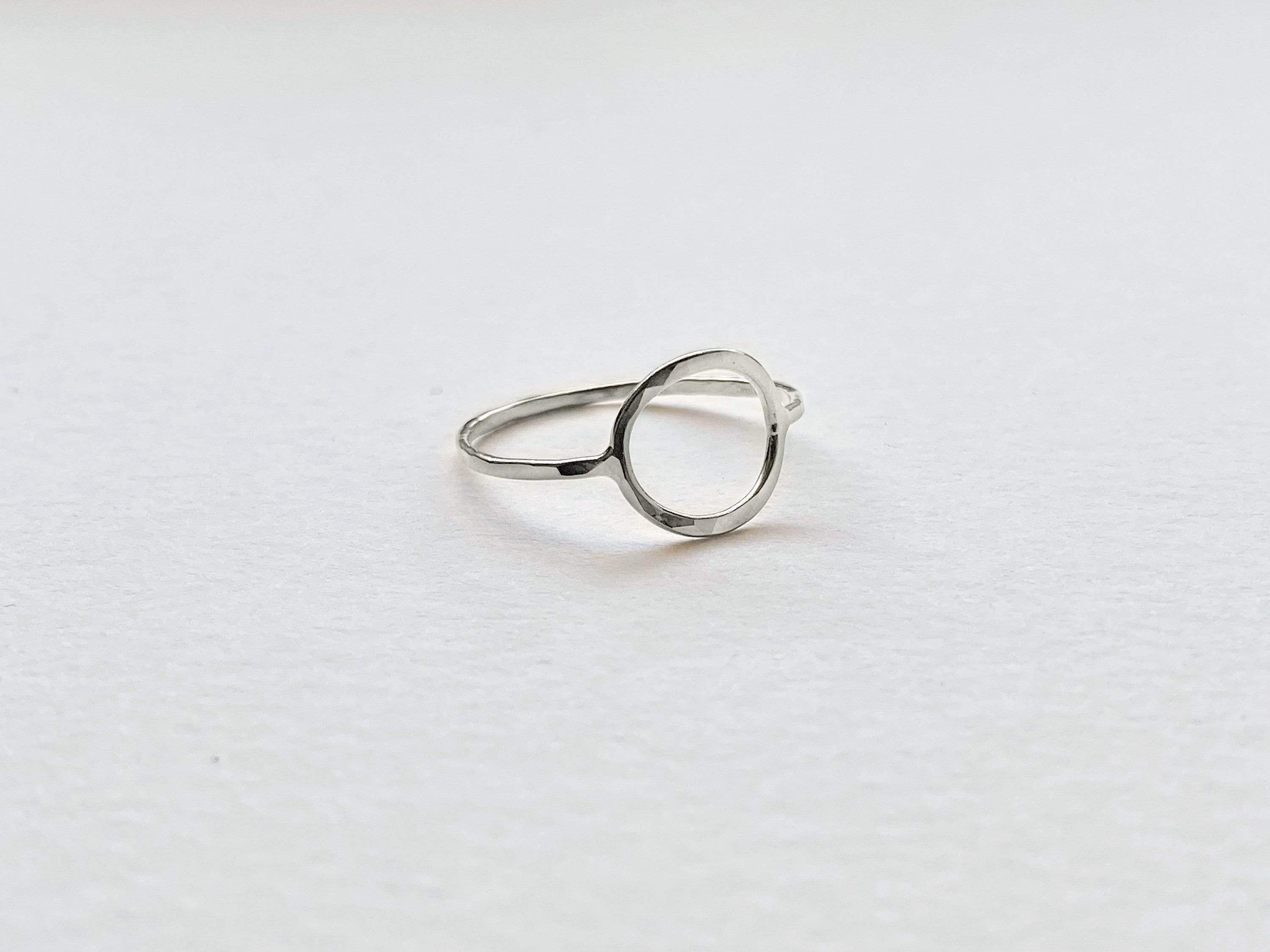 These are thin, delicate & gently hammered rings. They are elegant, lightweight and easy to wear. The hammered texture creates soft facets that create a bit of sparkle. Great if you‘re looking for a subtle and minimalist ring. This ring has a pretty, delicate circle as a focal point.