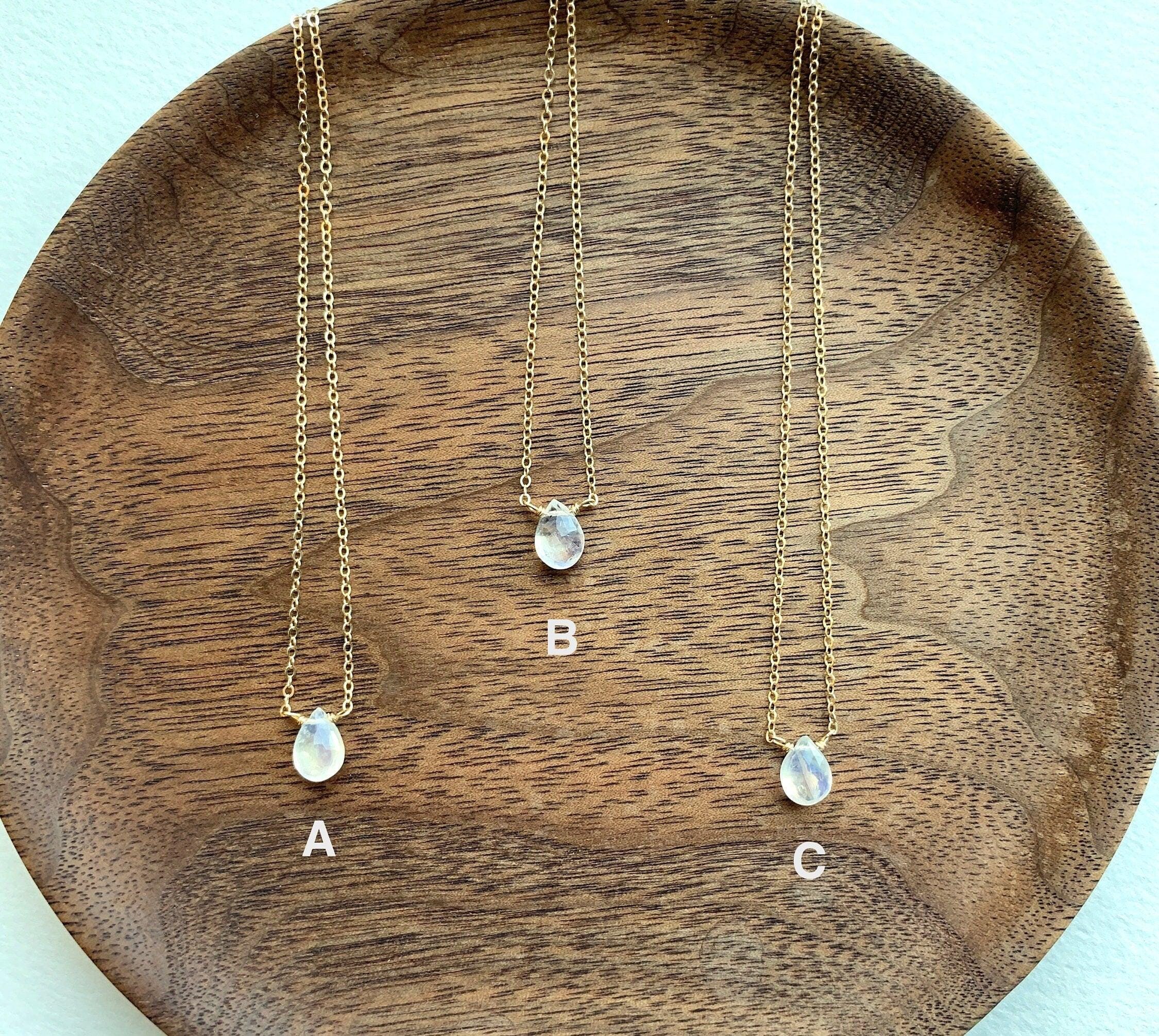 Rainbow Moonstone & 14k gold fill Necklace, Natural Moonstone, June Birthstone Teardrop Necklace, Pretty Gemstone Necklace