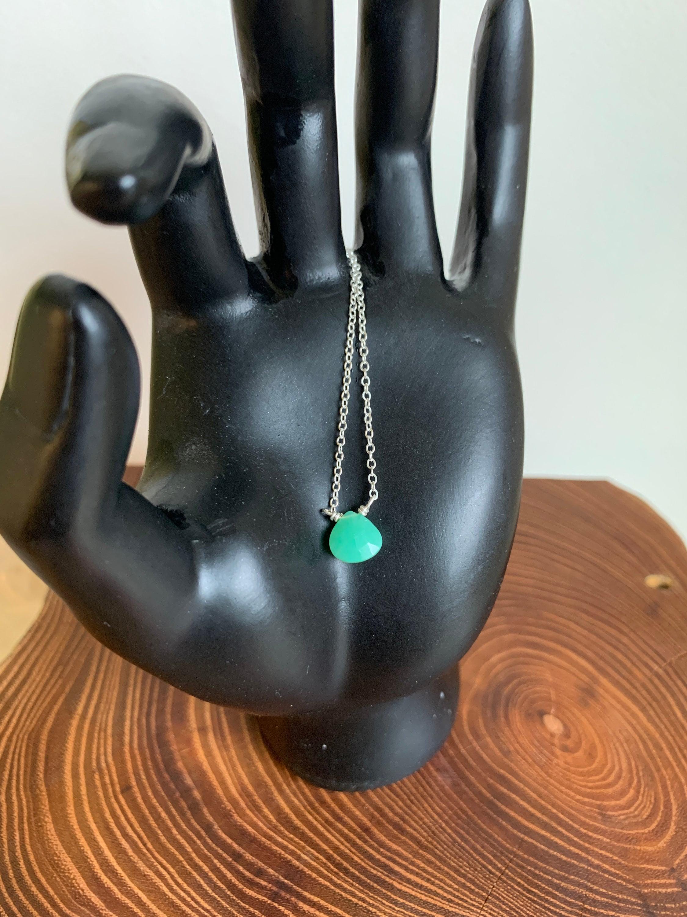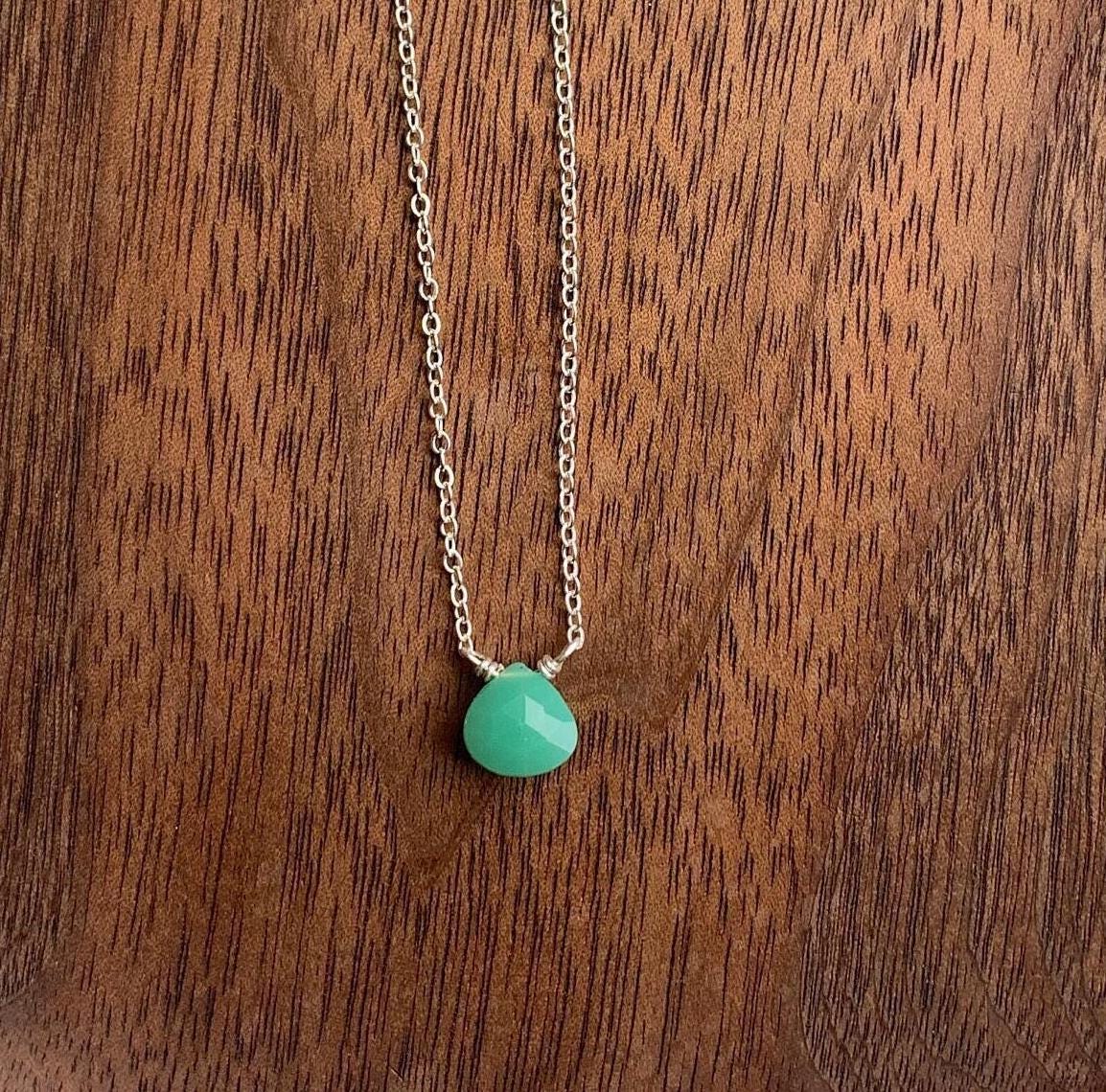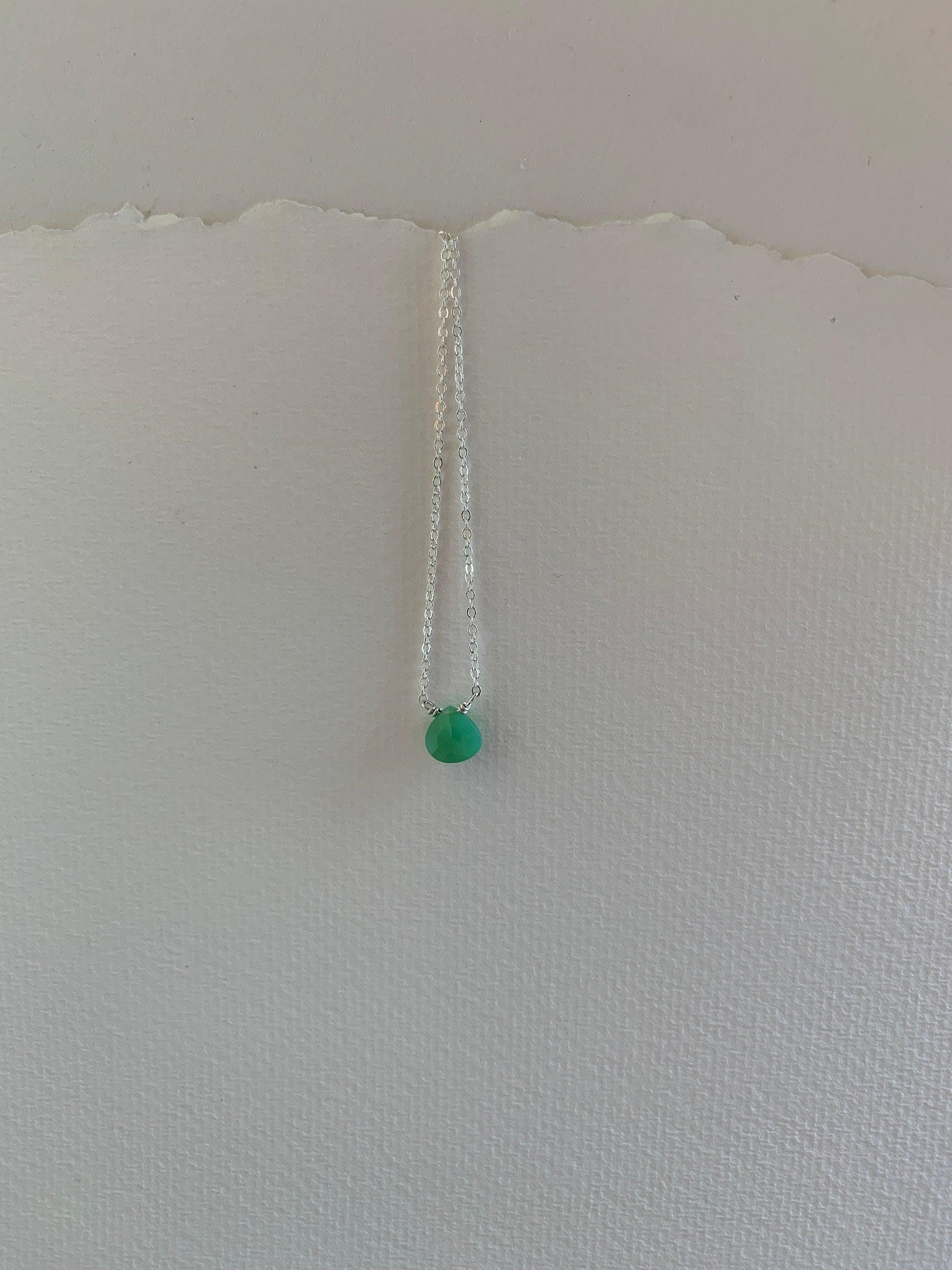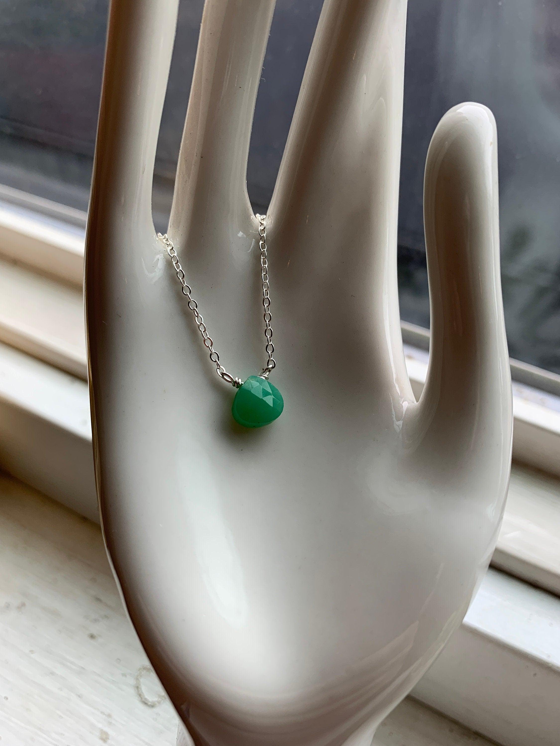 Chrysoprase & Sterling Silver Necklace, May Alternative Birthstone, Delicate Bright Green Gemstone Necklace, Elegant Jewelry