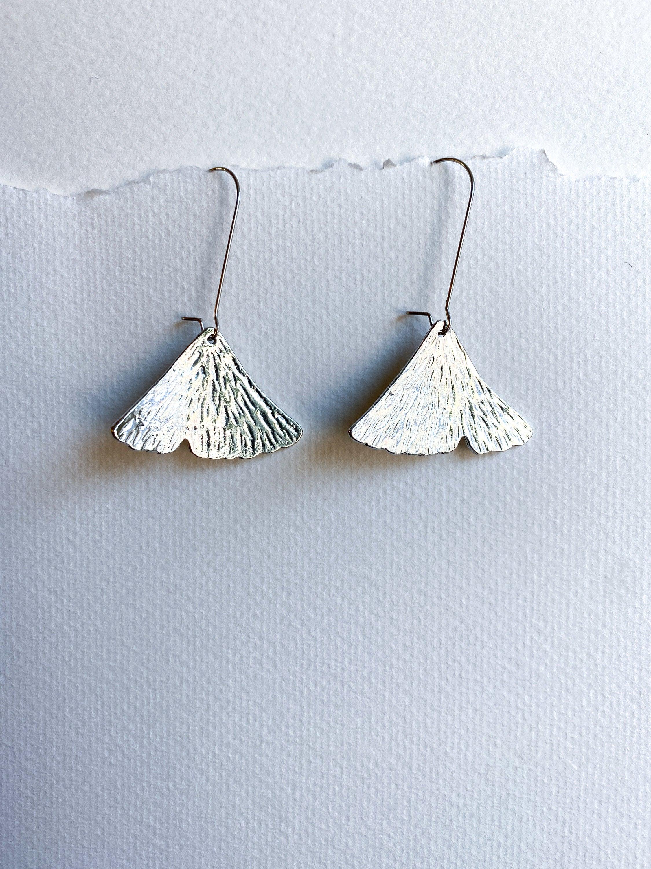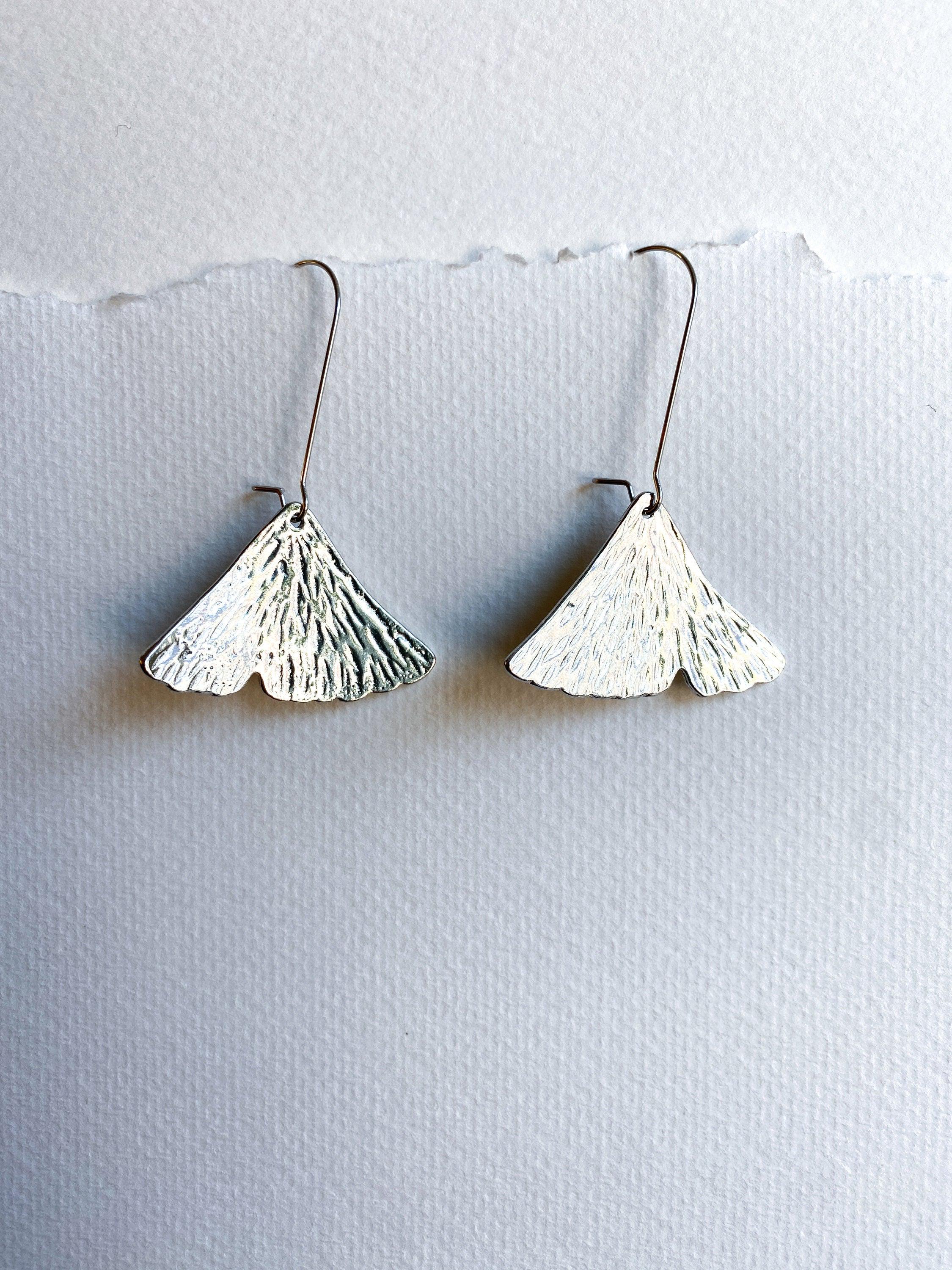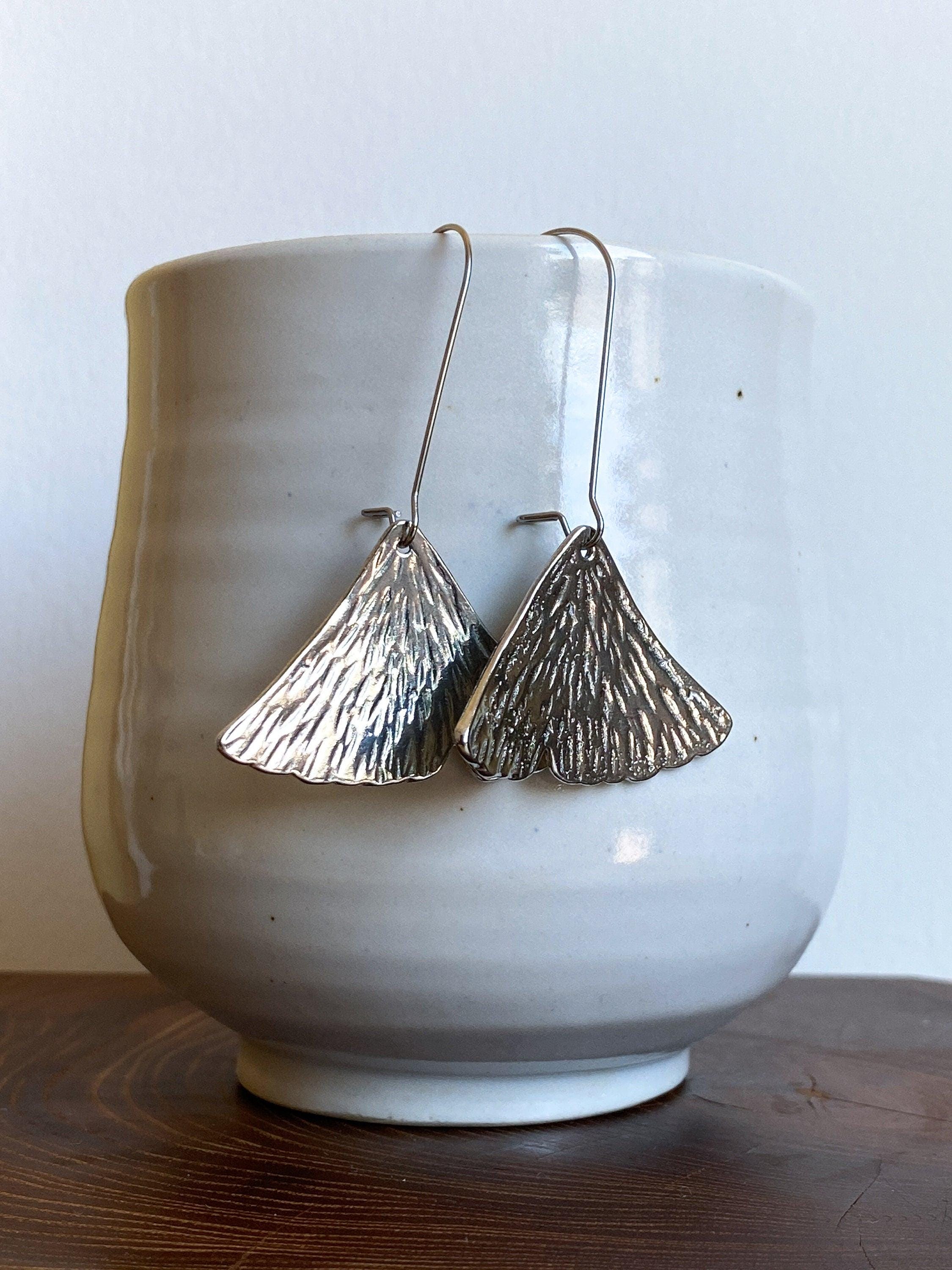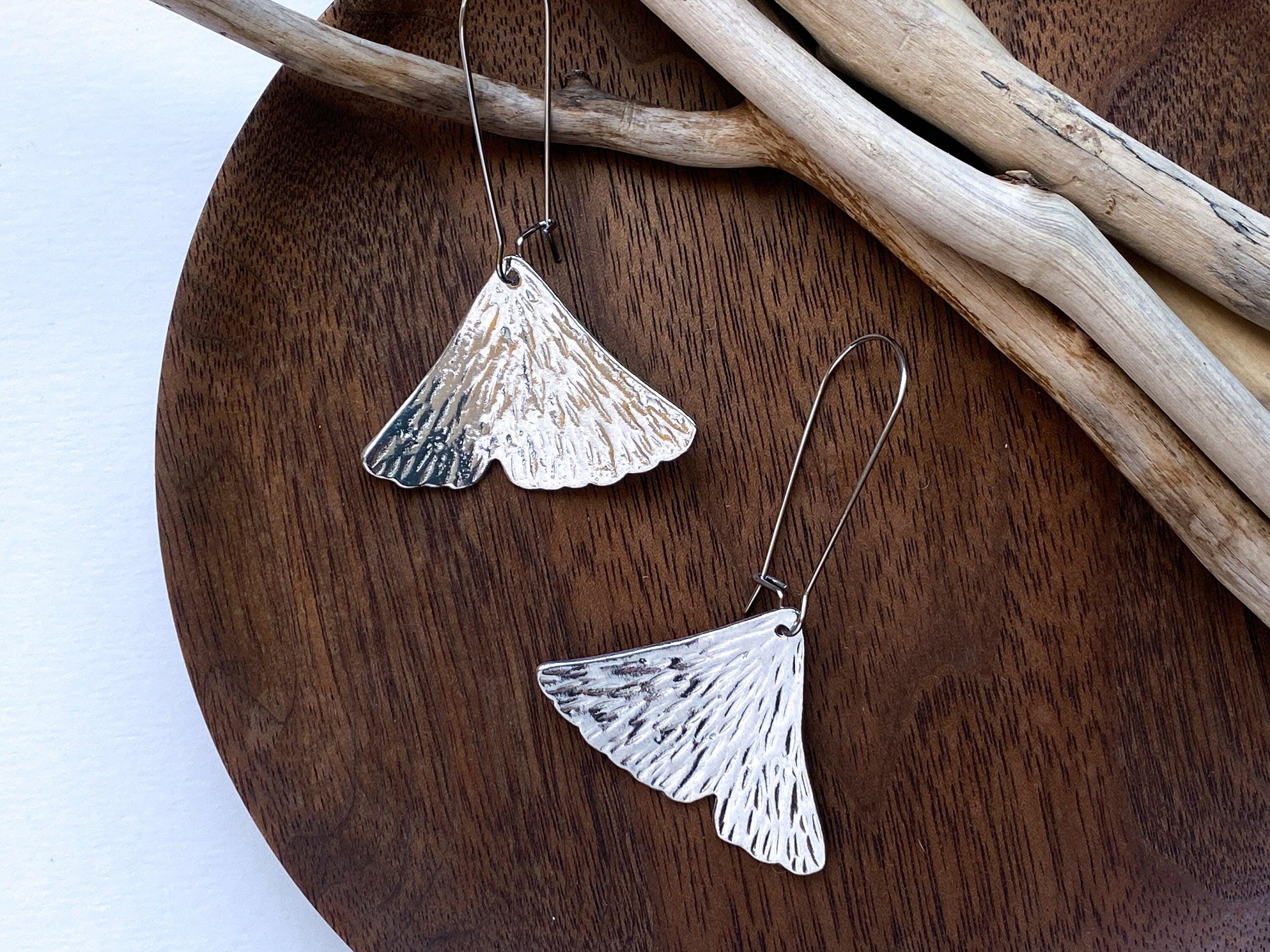 Pewter Ginkgo Leaf Earrings, Modern Pewter Lead Free, Handmade Botanical Earrings