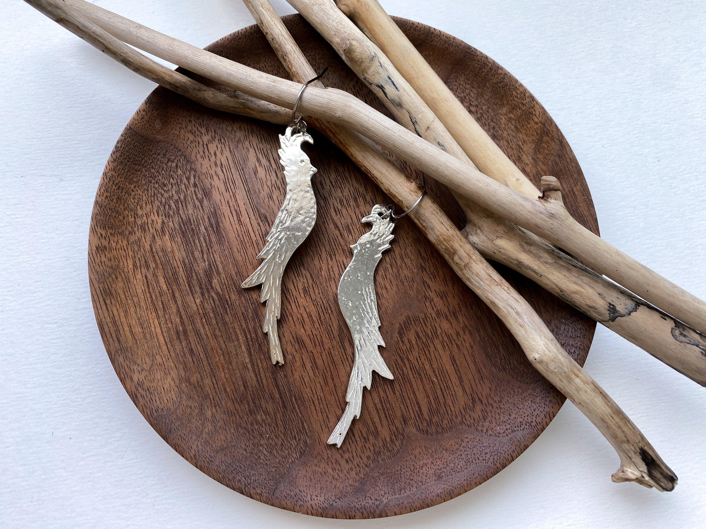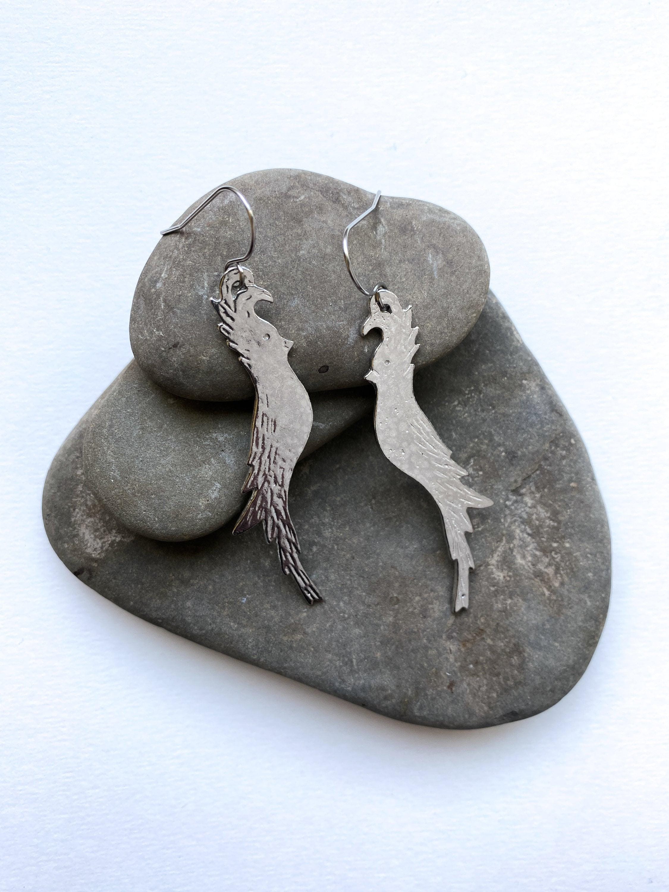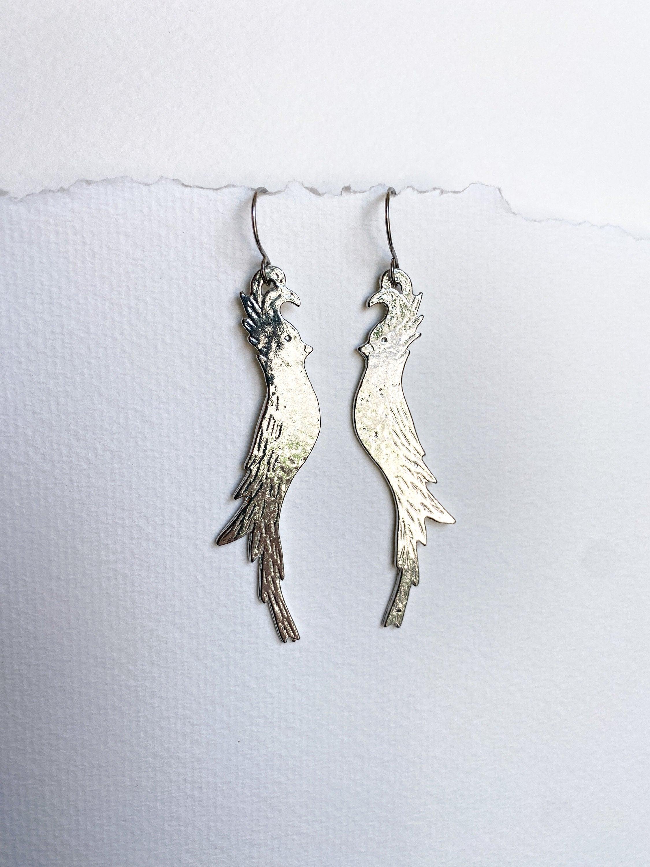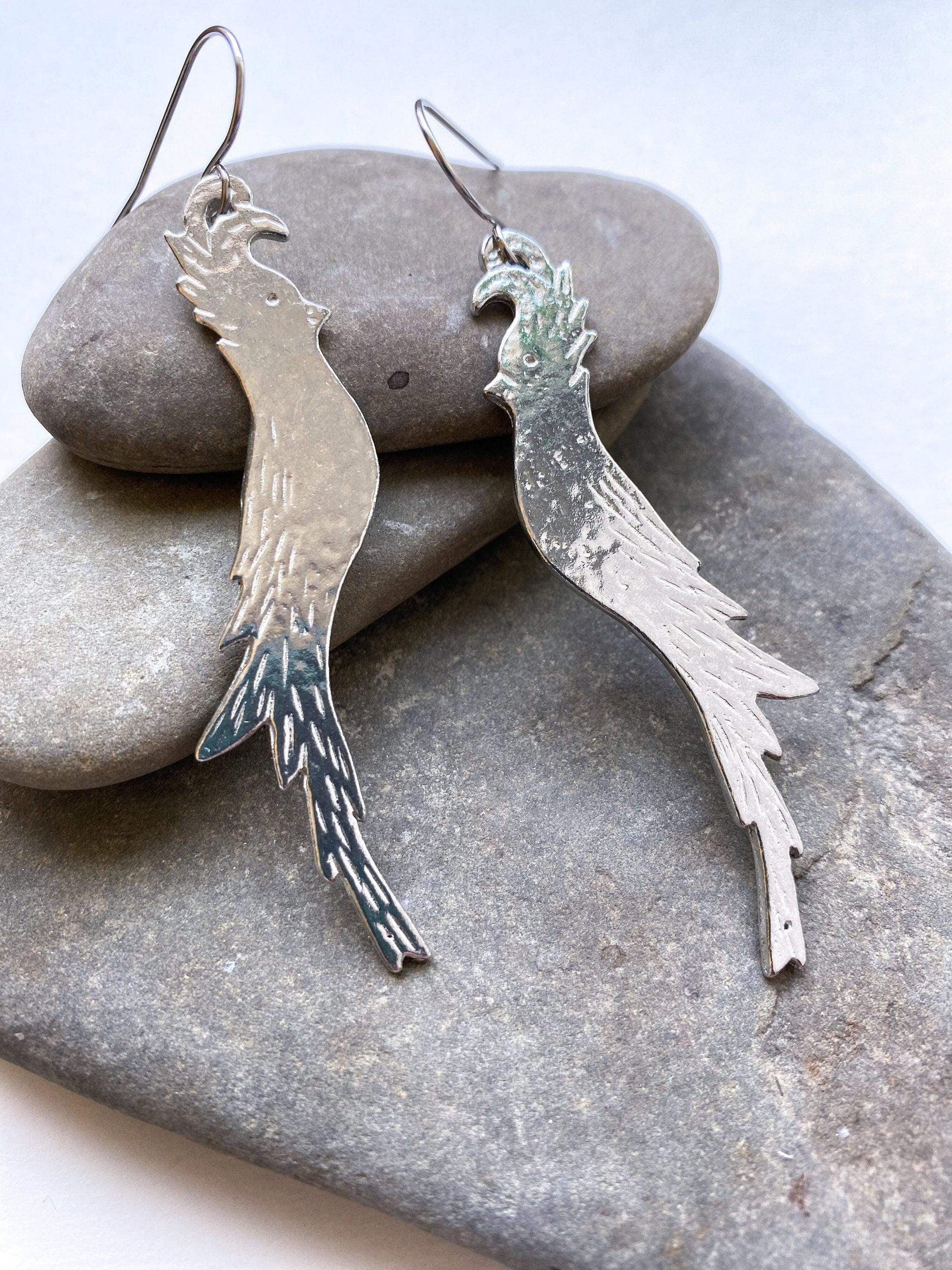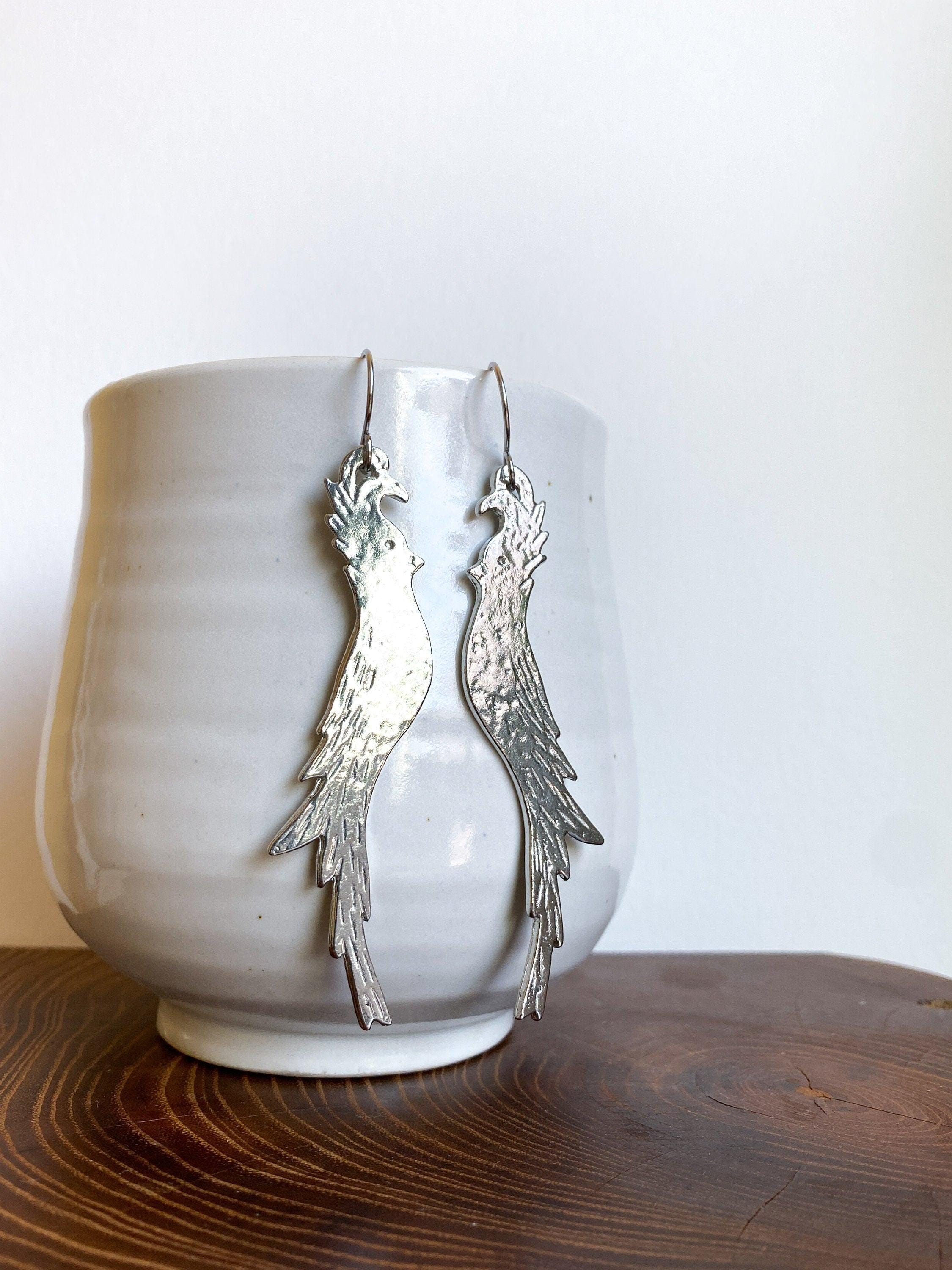 Pewter Long Bird Earrings, Modern Pewter Lead Free, Handmade Earrings