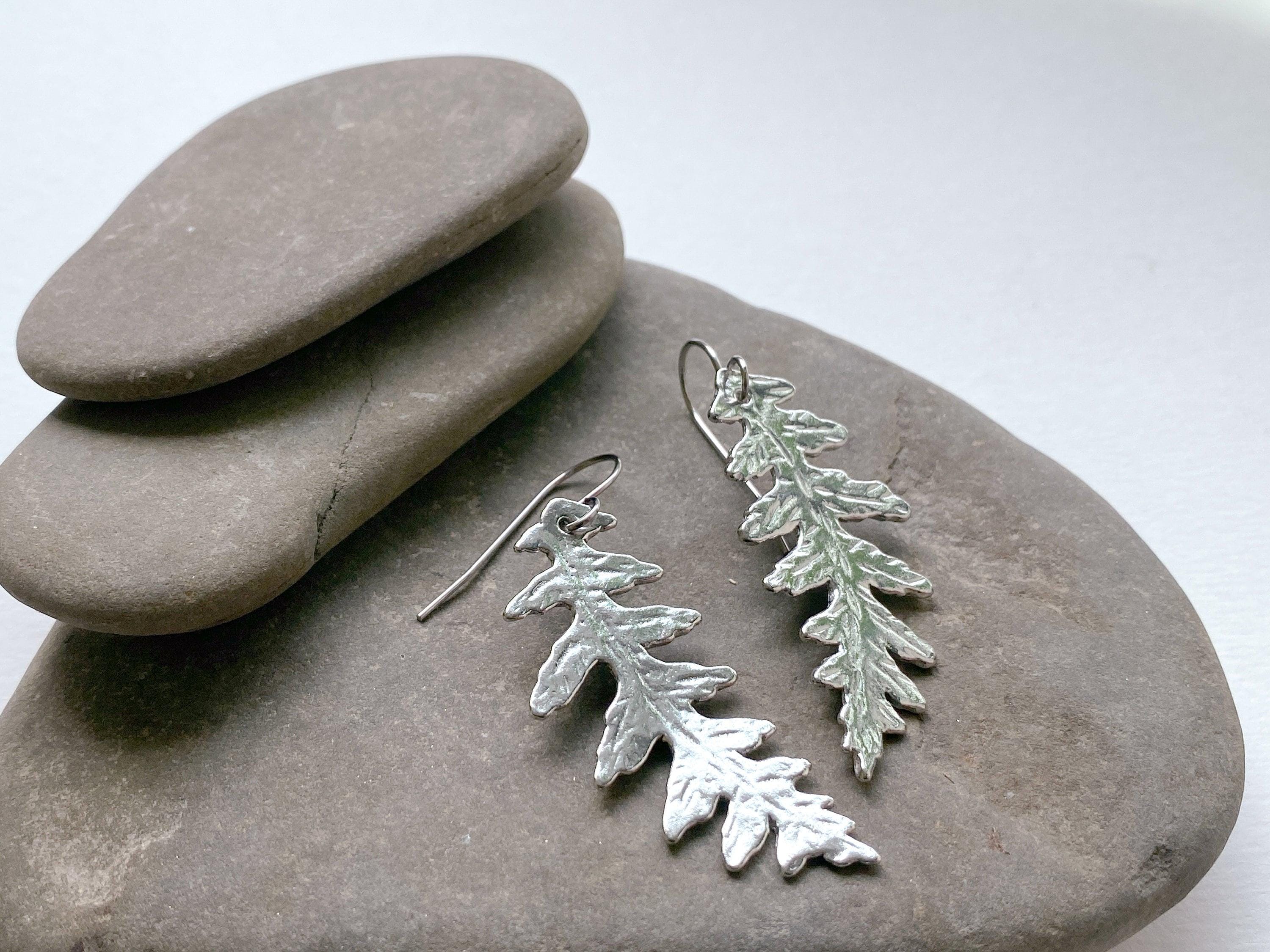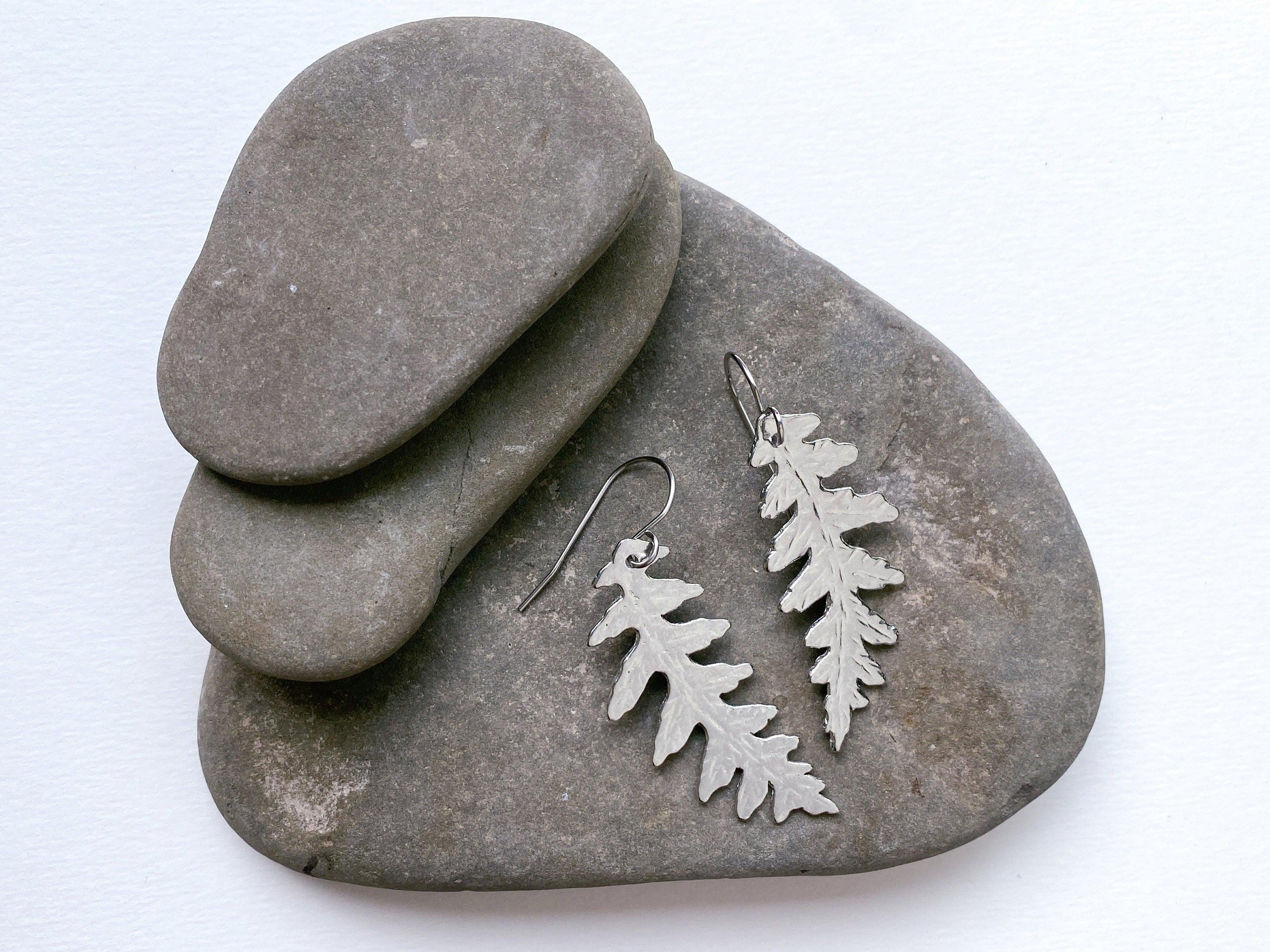 Pewter Fern Earrings, Modern Pewter Lead Free, Handmade Botanical Earrings