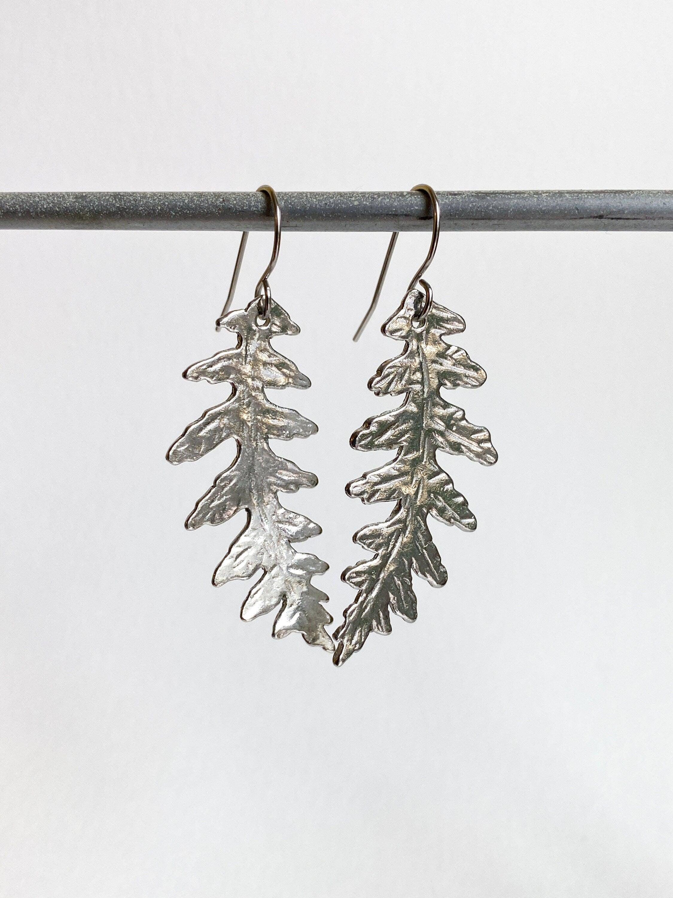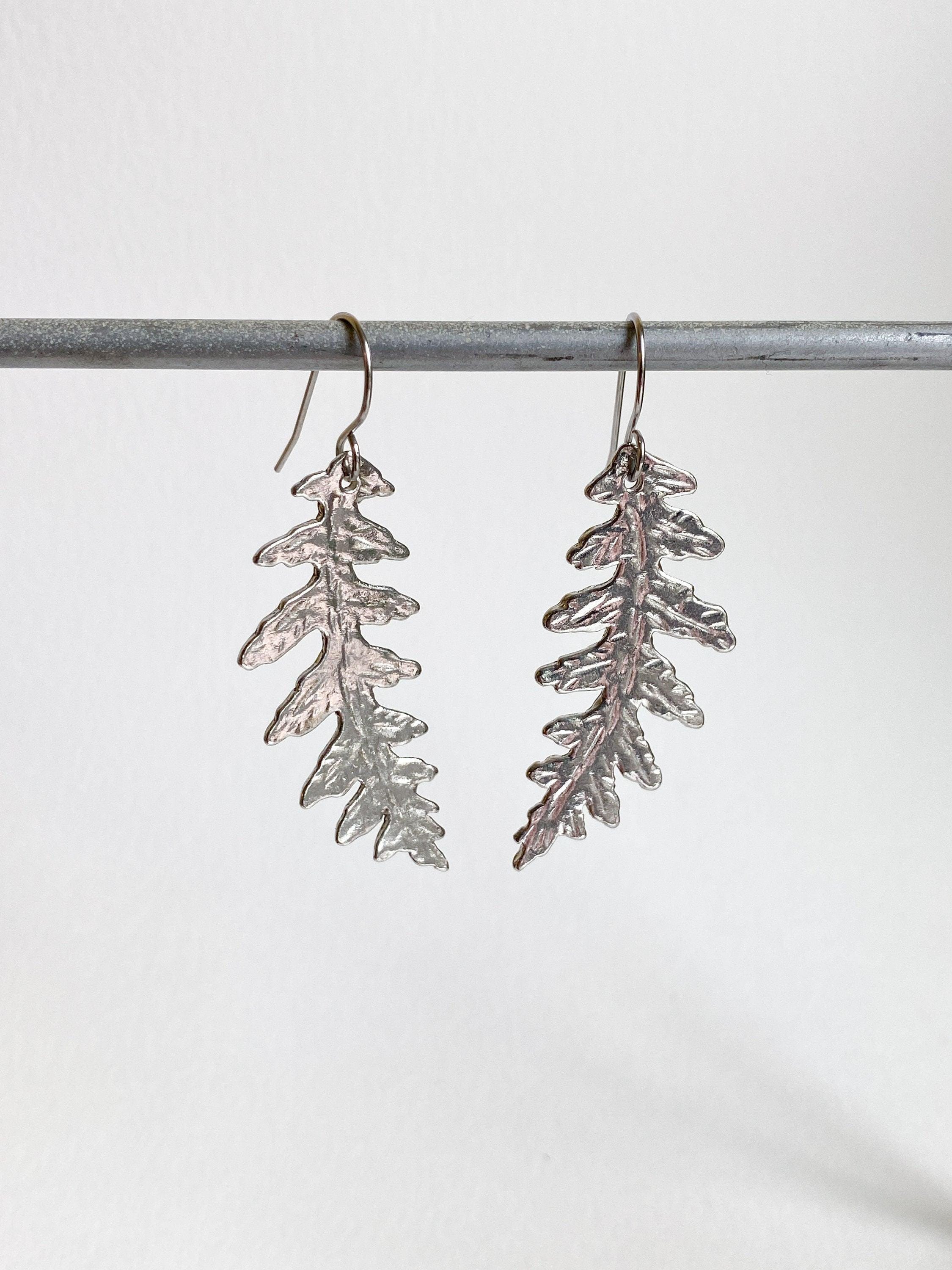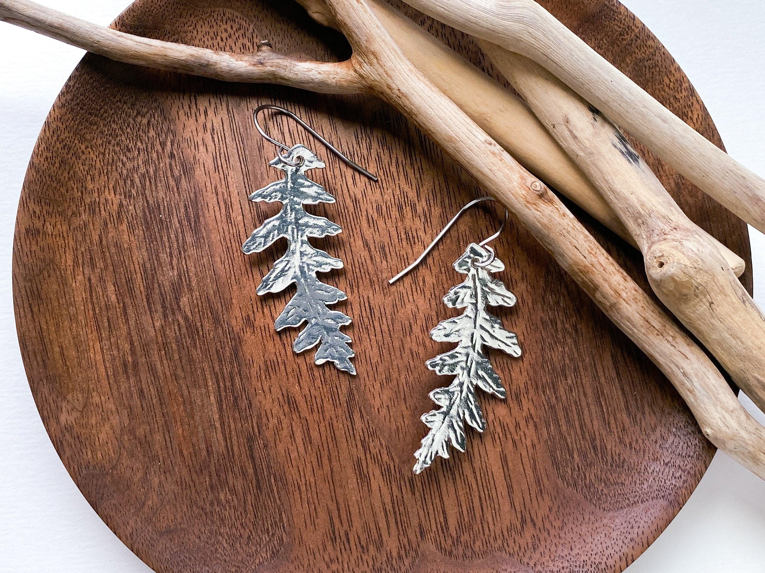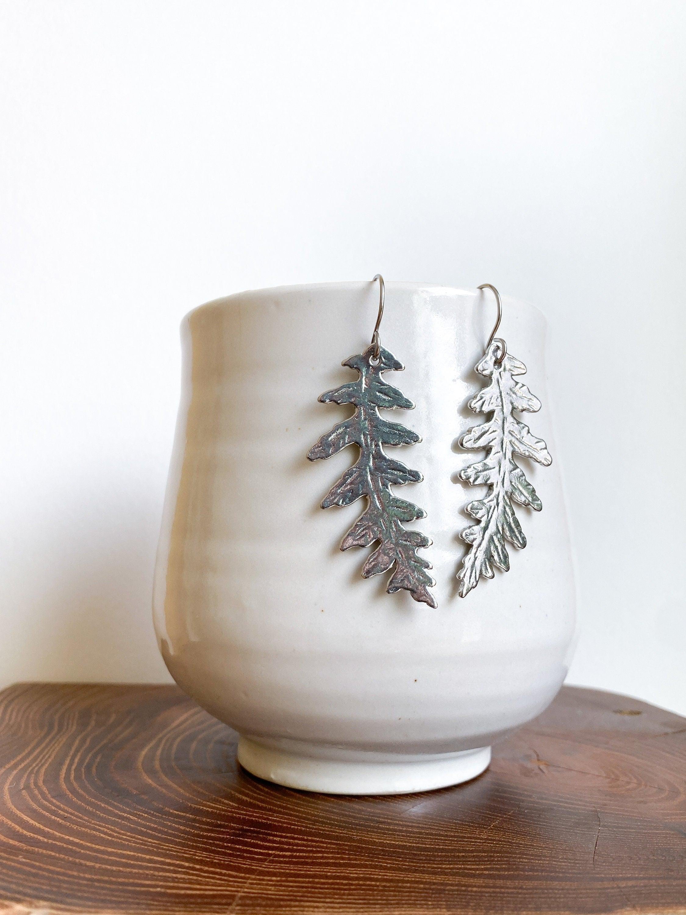 These fern leaf shaped earrings are pretty and modern, with a unique textured finish that will vary slightly from pair to pair.