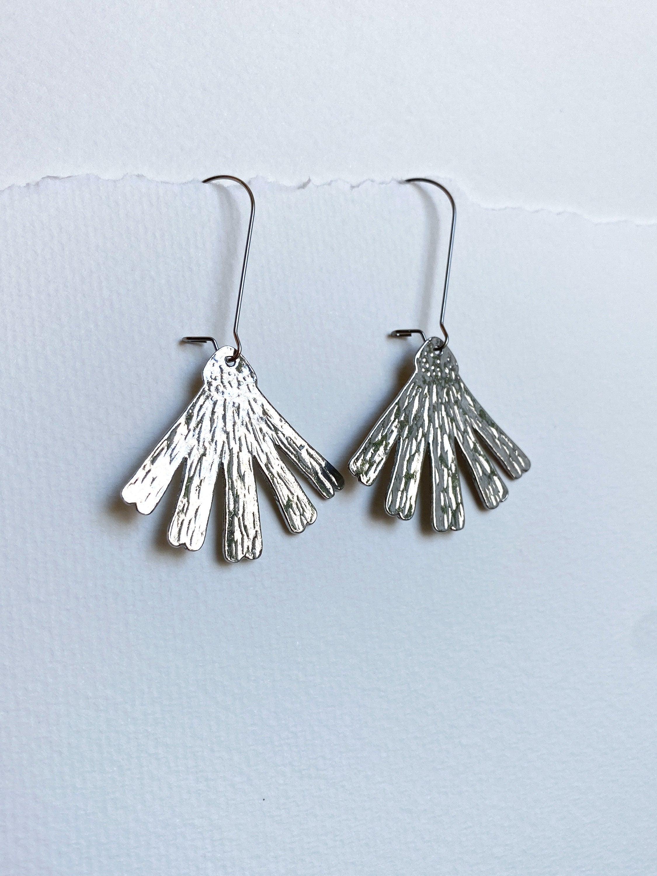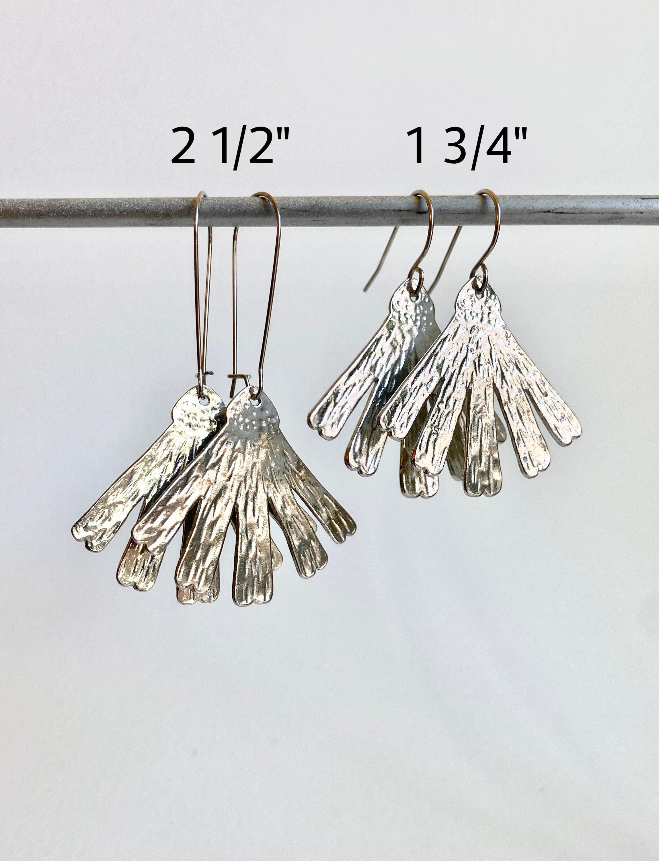 These Coneflower or Echinacea flower earrings are floral and modern, with a unique textured finish that will vary slightly from pair to pair. These are available in two different lengths - the flower is the same size, choose either a long 1 1/4" ear wire or a standard 1/2" ear wire.