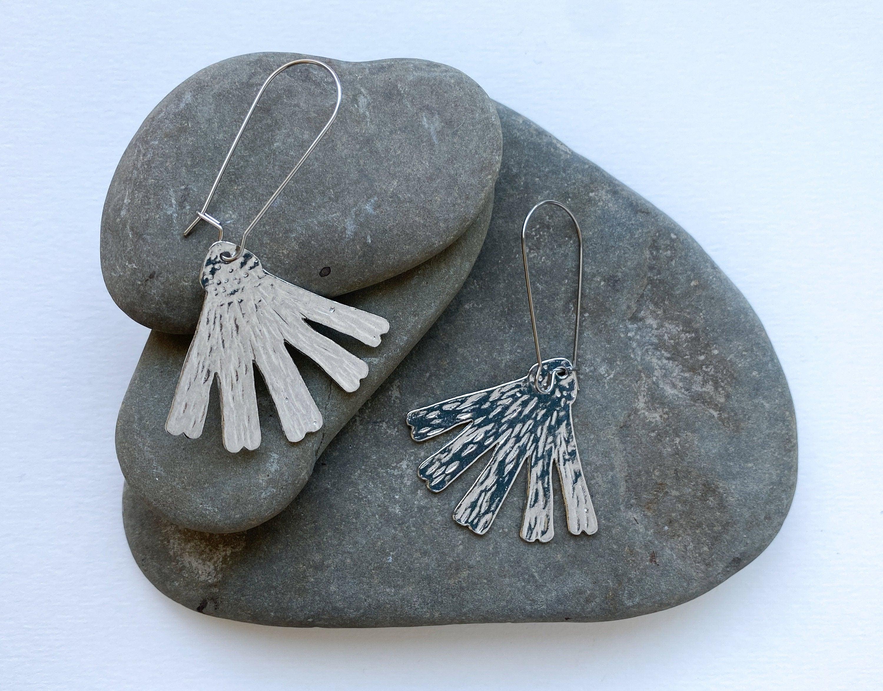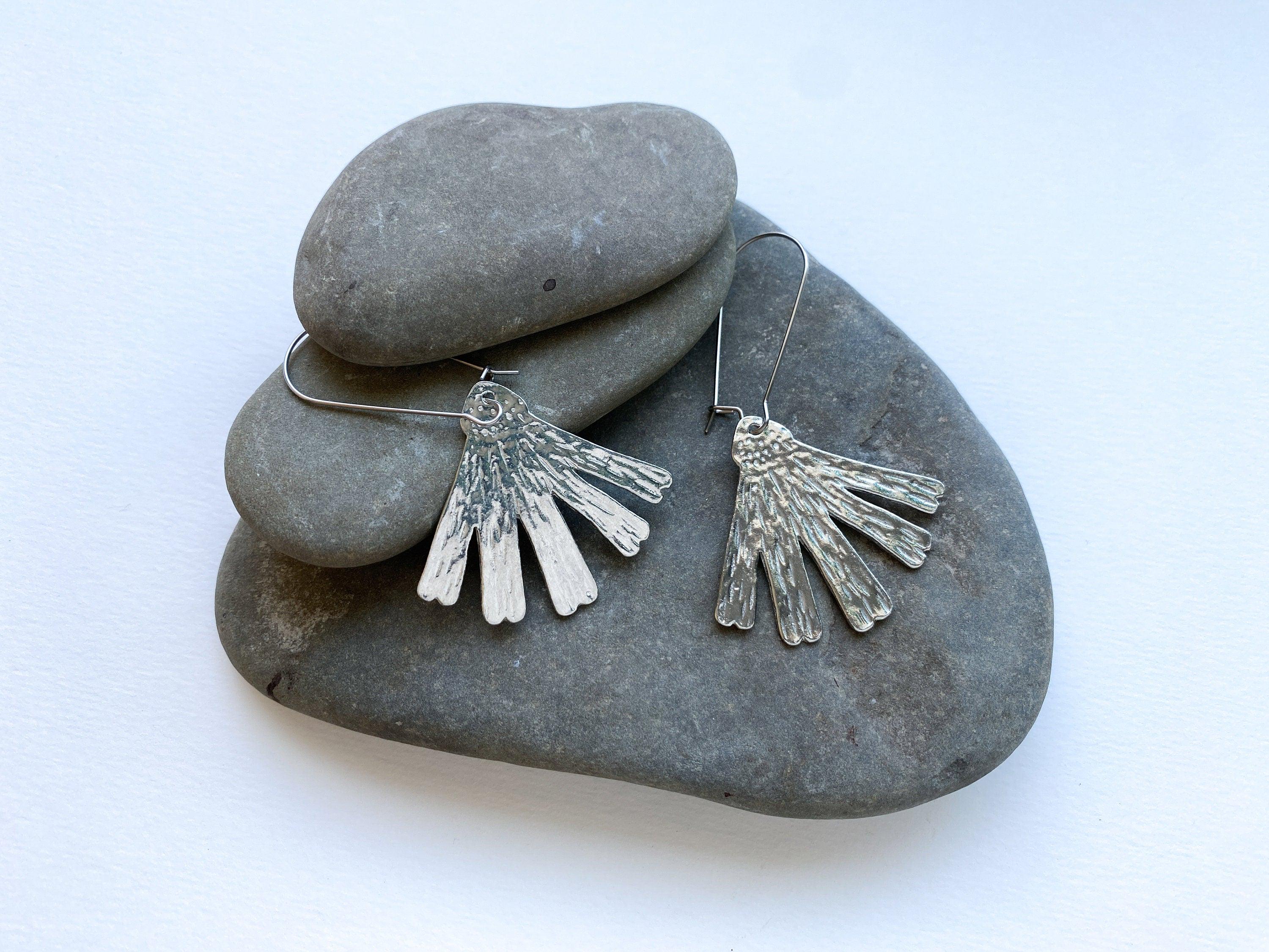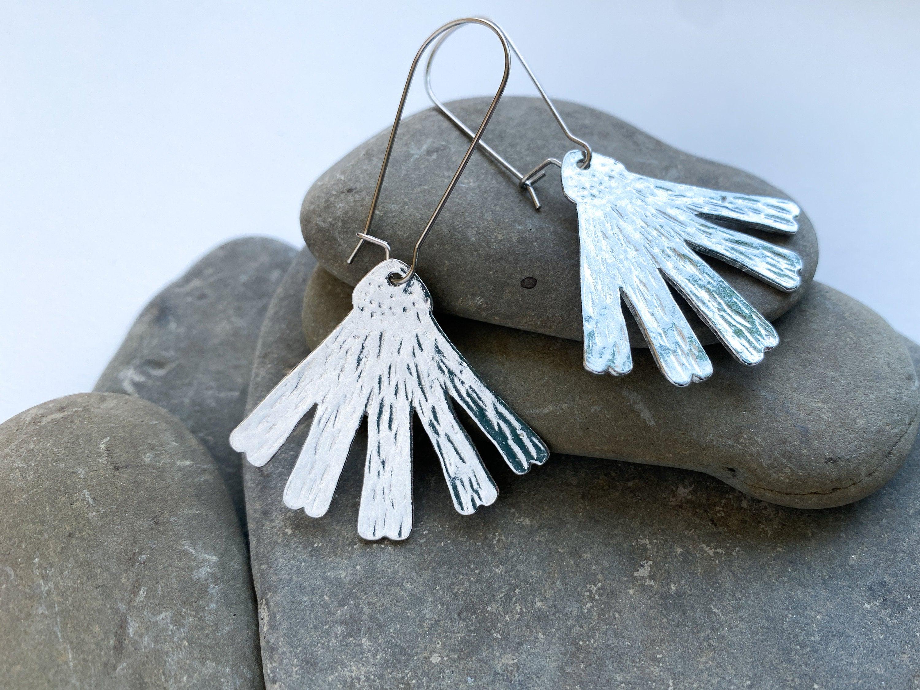 These handmade pewter earrings are pretty and lightweight, perfect for a bold everyday look. Our modern pewter is lead free, and the earrings dangle from stainless steel ear wires.
