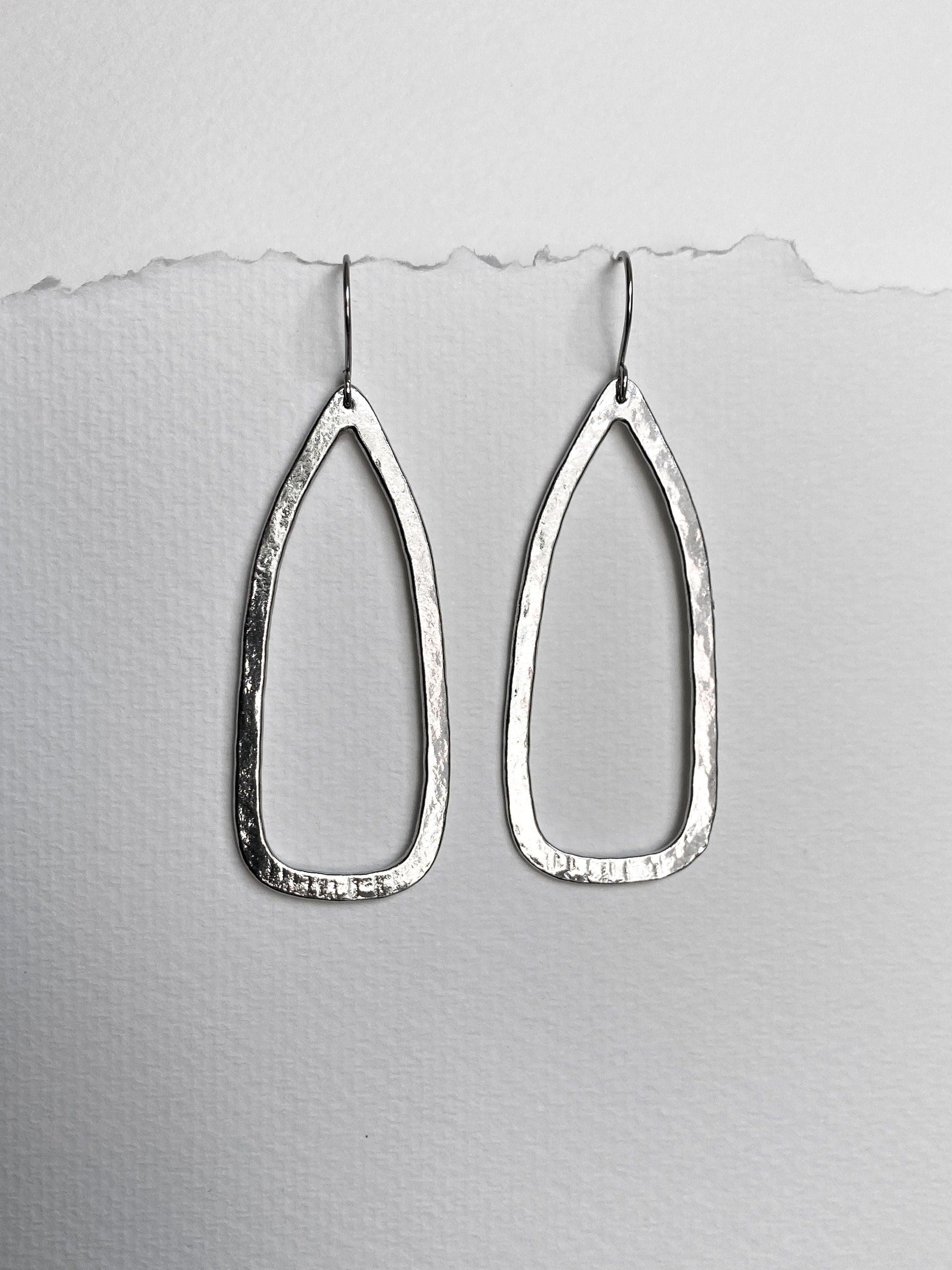 These long teardrop earrings are minimalist and bold, with a unique textured finish that will vary slightly from pair to pair.