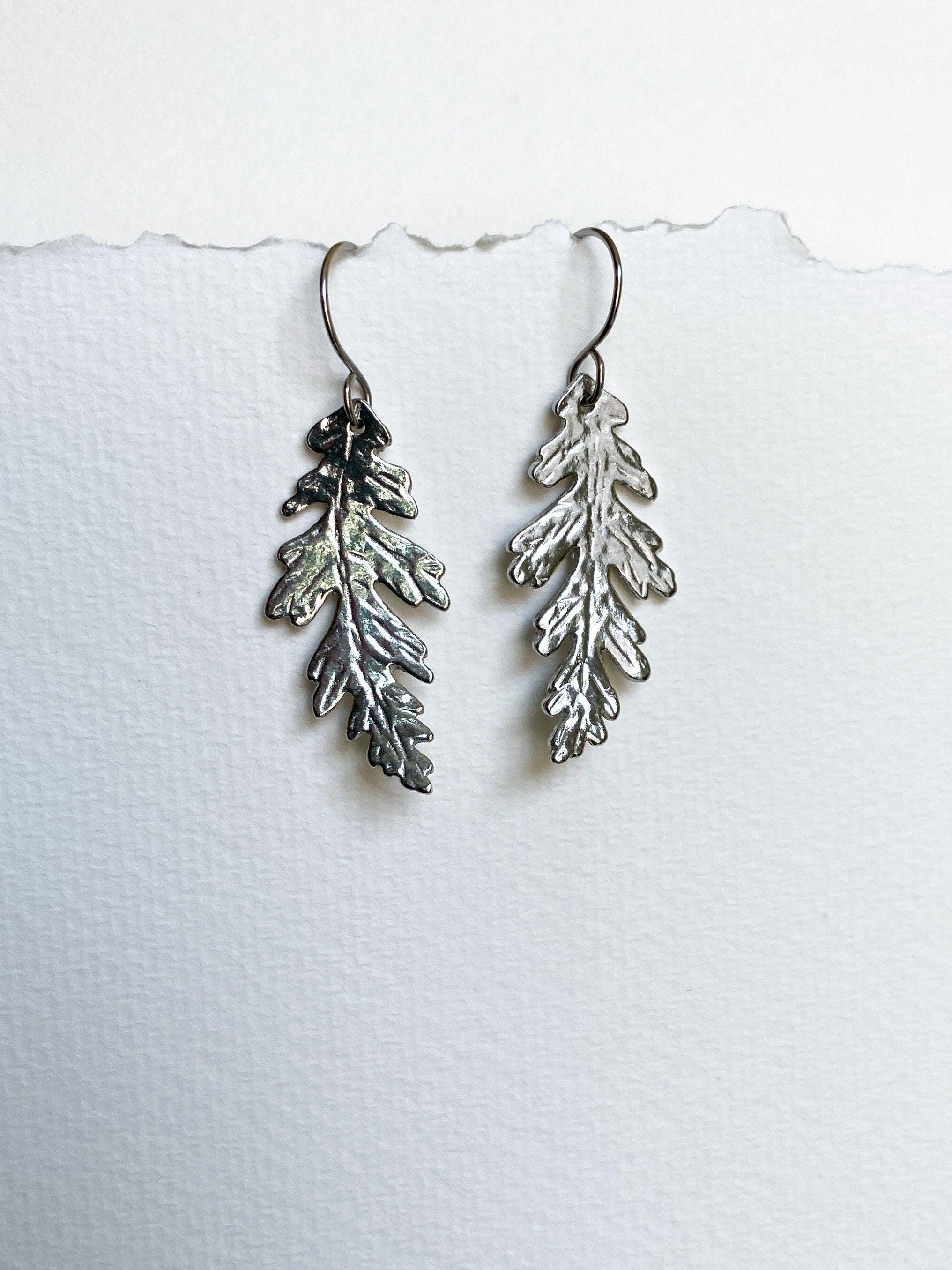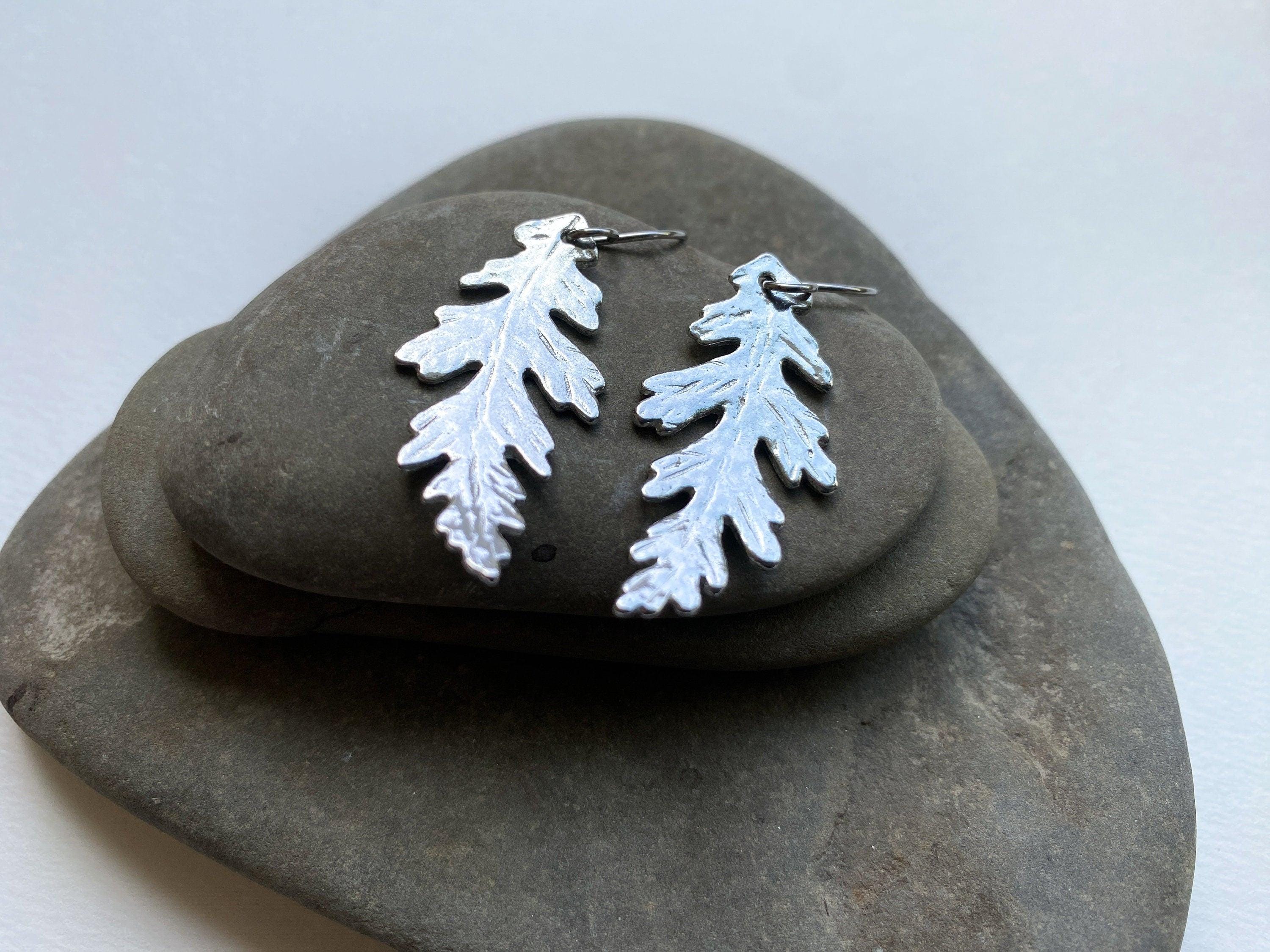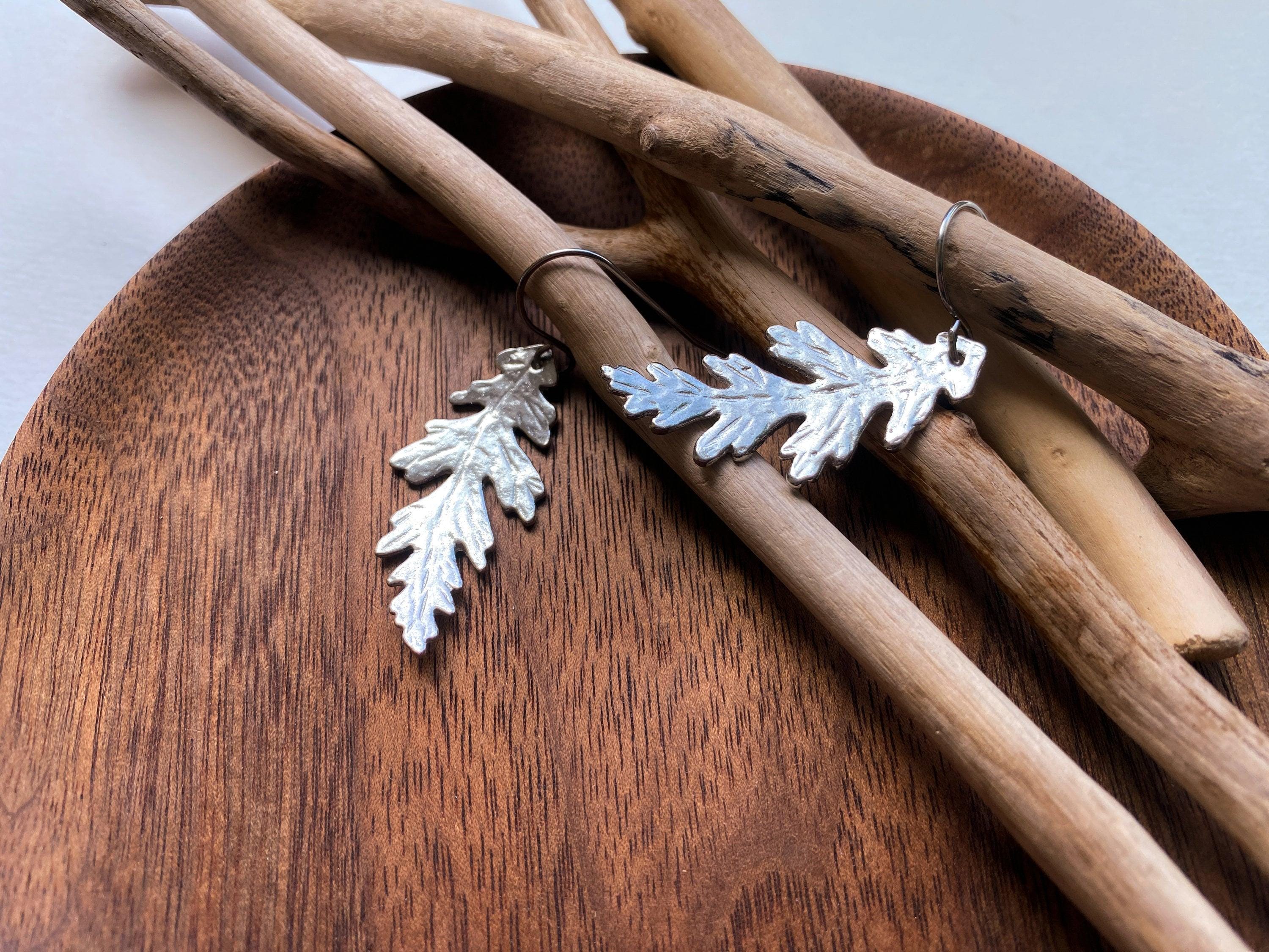 Pewter Oak Leaf Earrings, Modern Pewter Lead Free, Handmade Botanical Earrings
