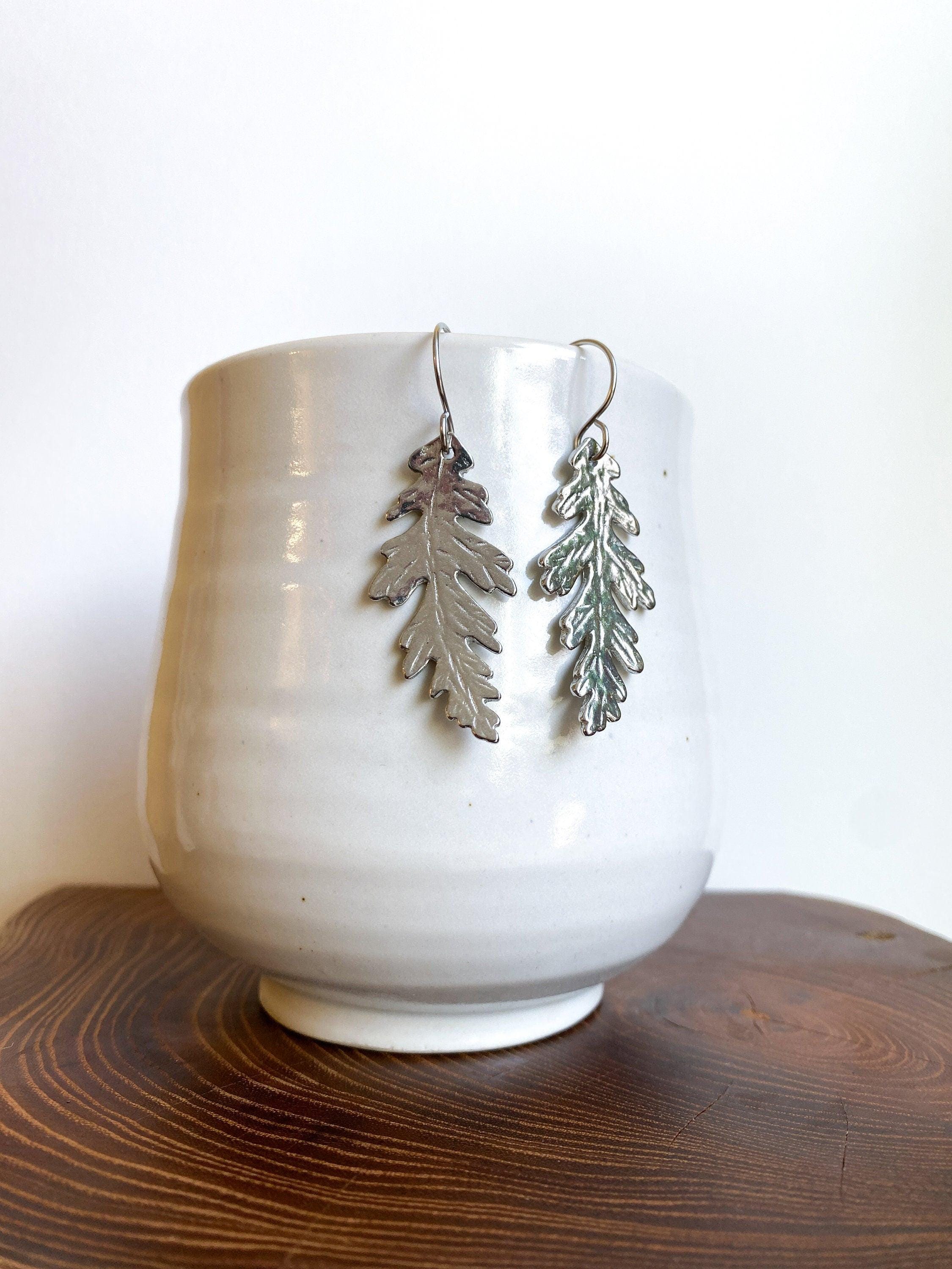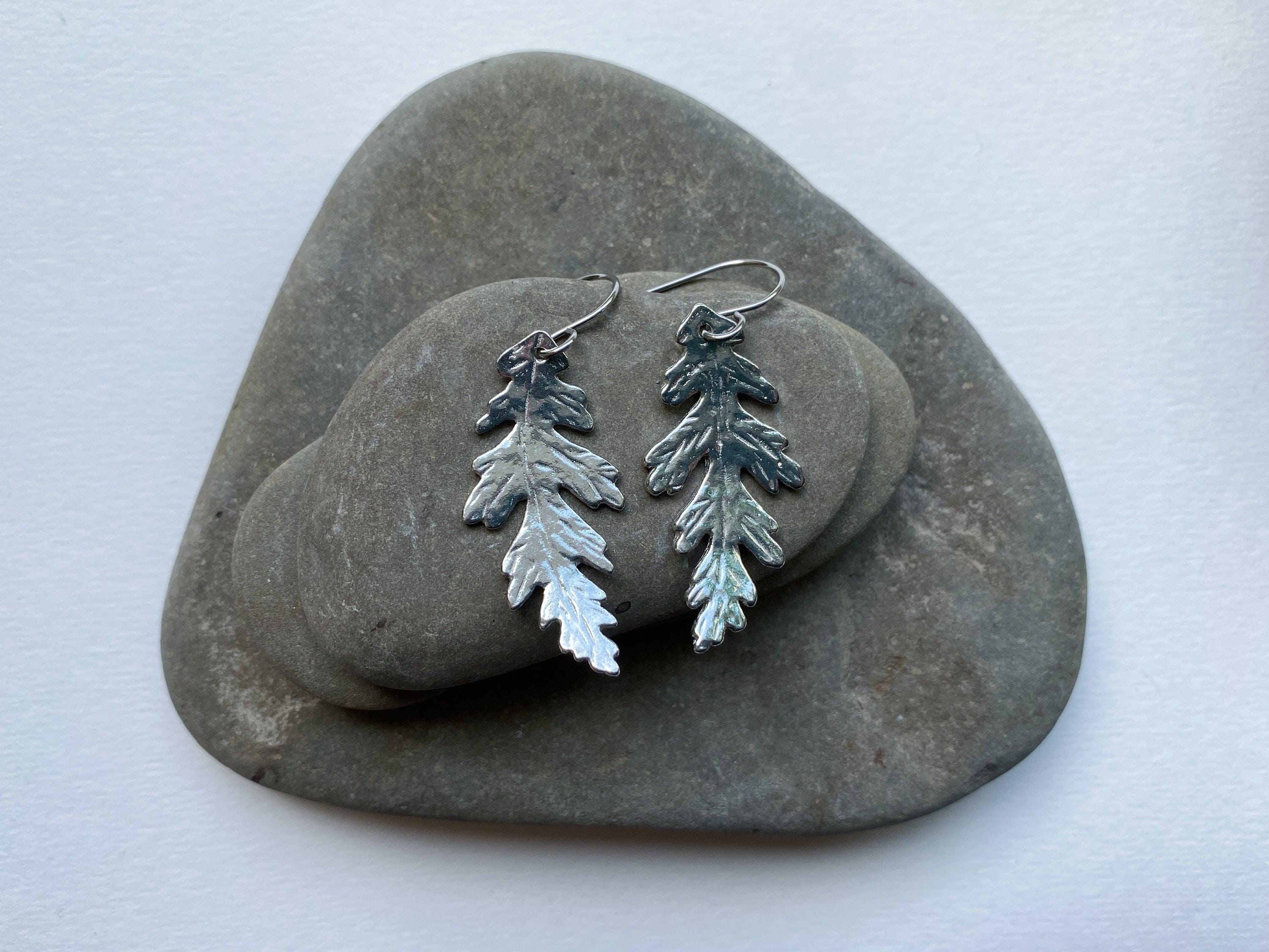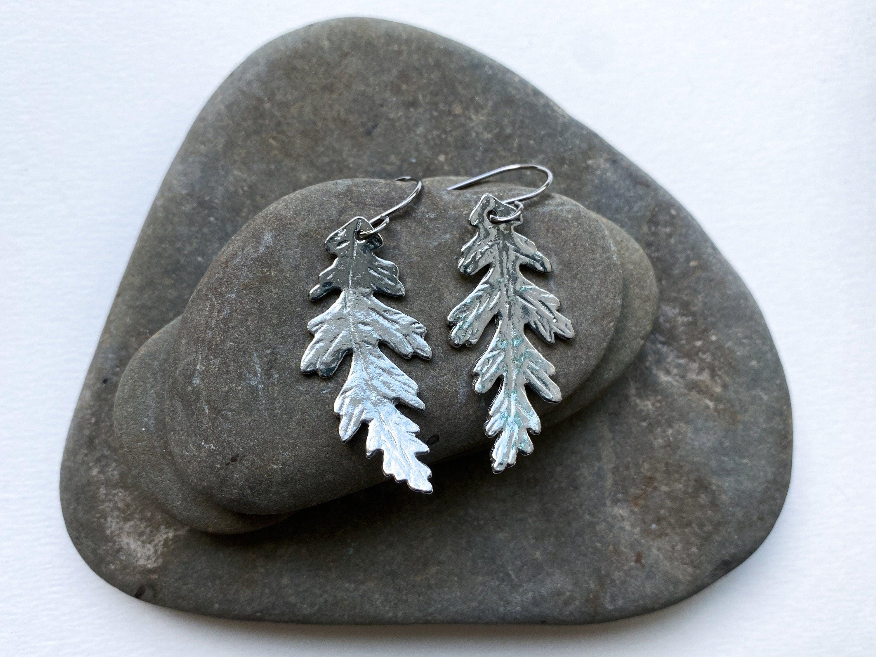 Pewter Oak Leaf Earrings, Modern Pewter Lead Free, Handmade Botanical Earrings