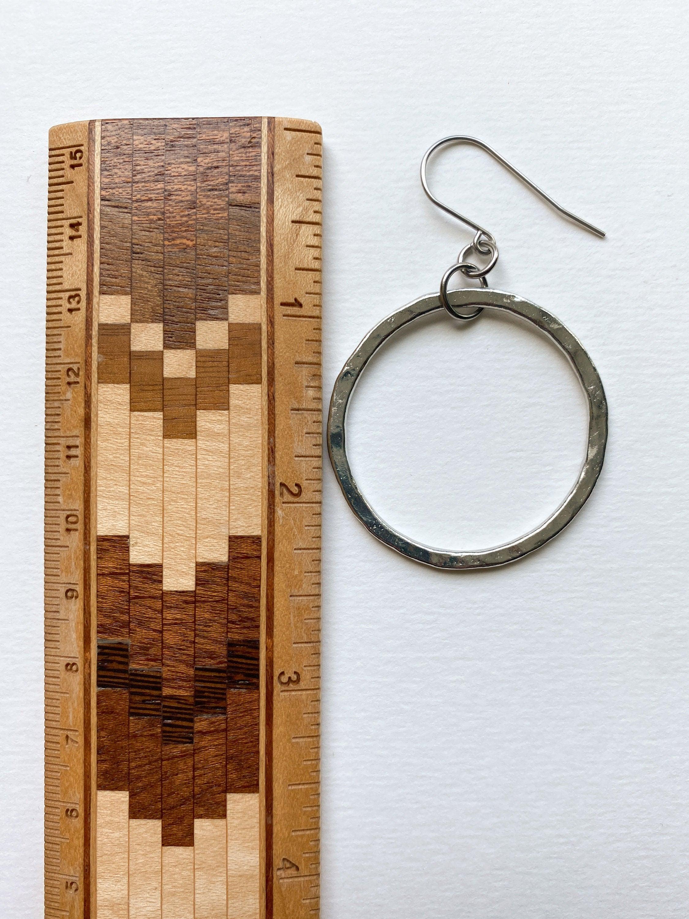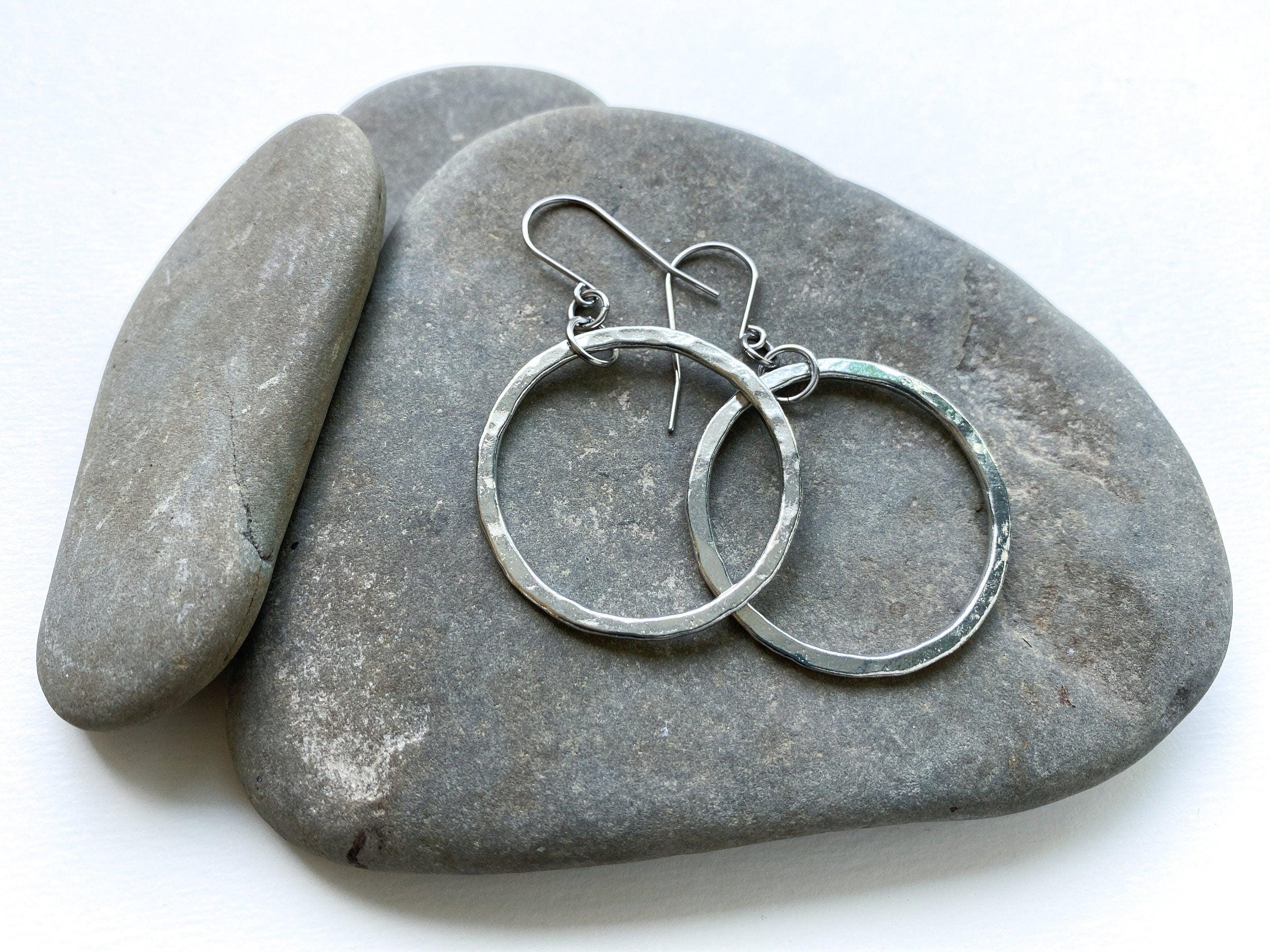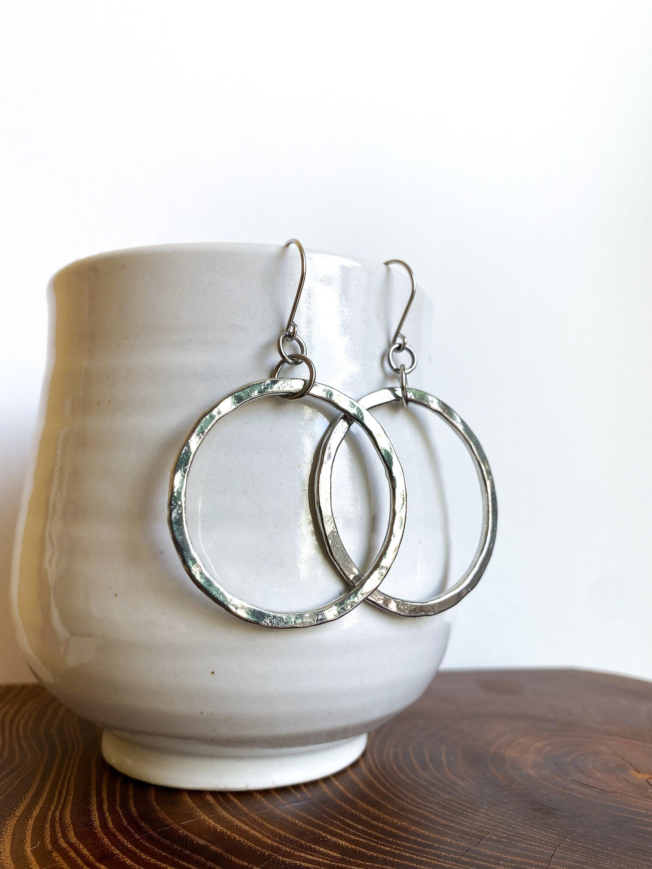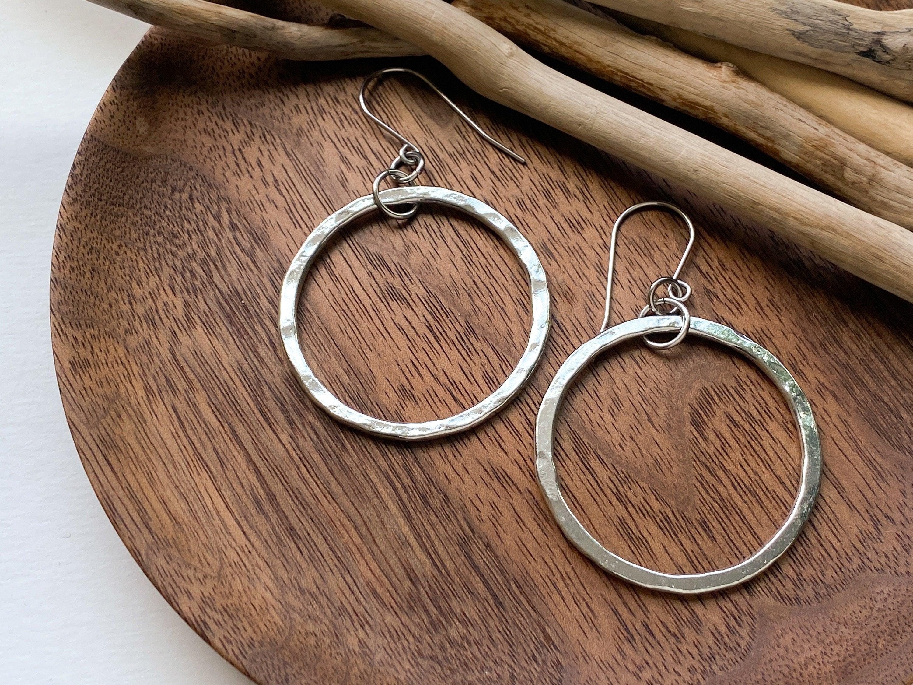 Pewter Open Circle Earrings, Hammered Texture, Modern Pewter Lead Free, Handmade Minimalist Earrings