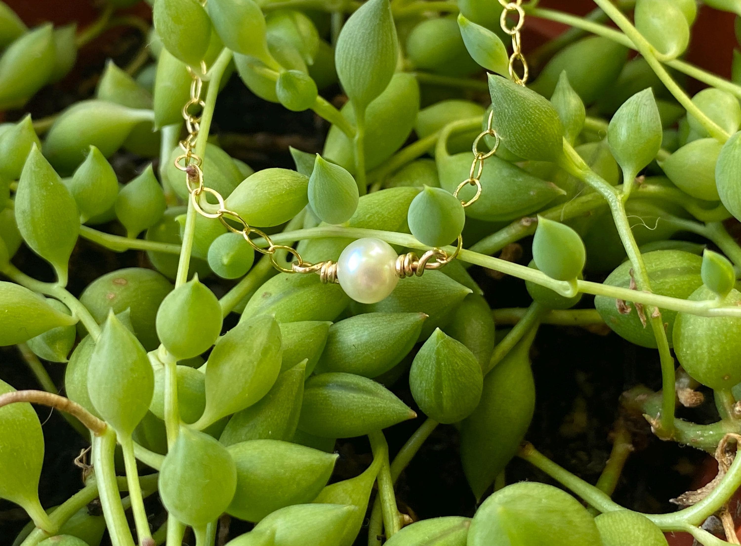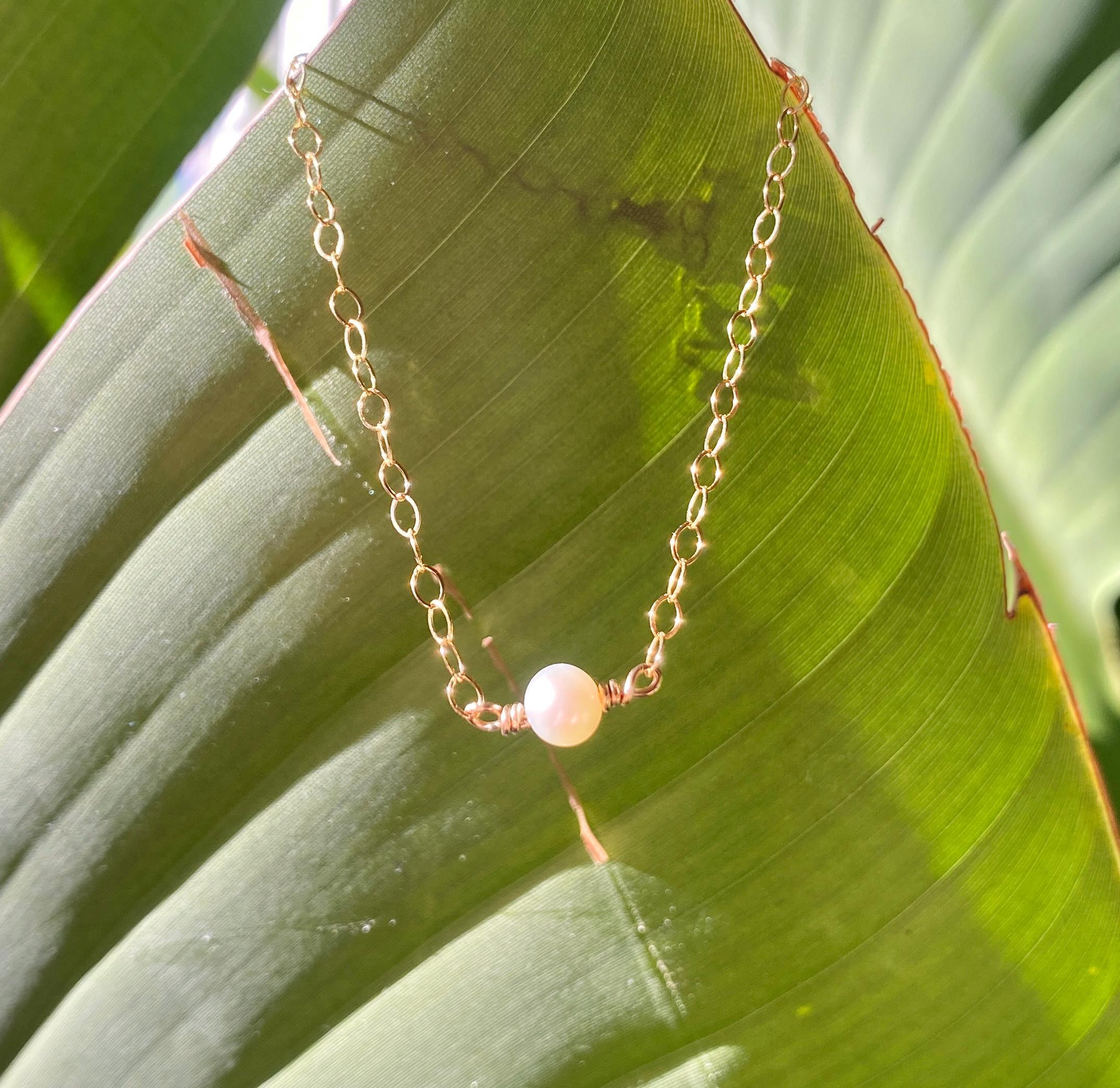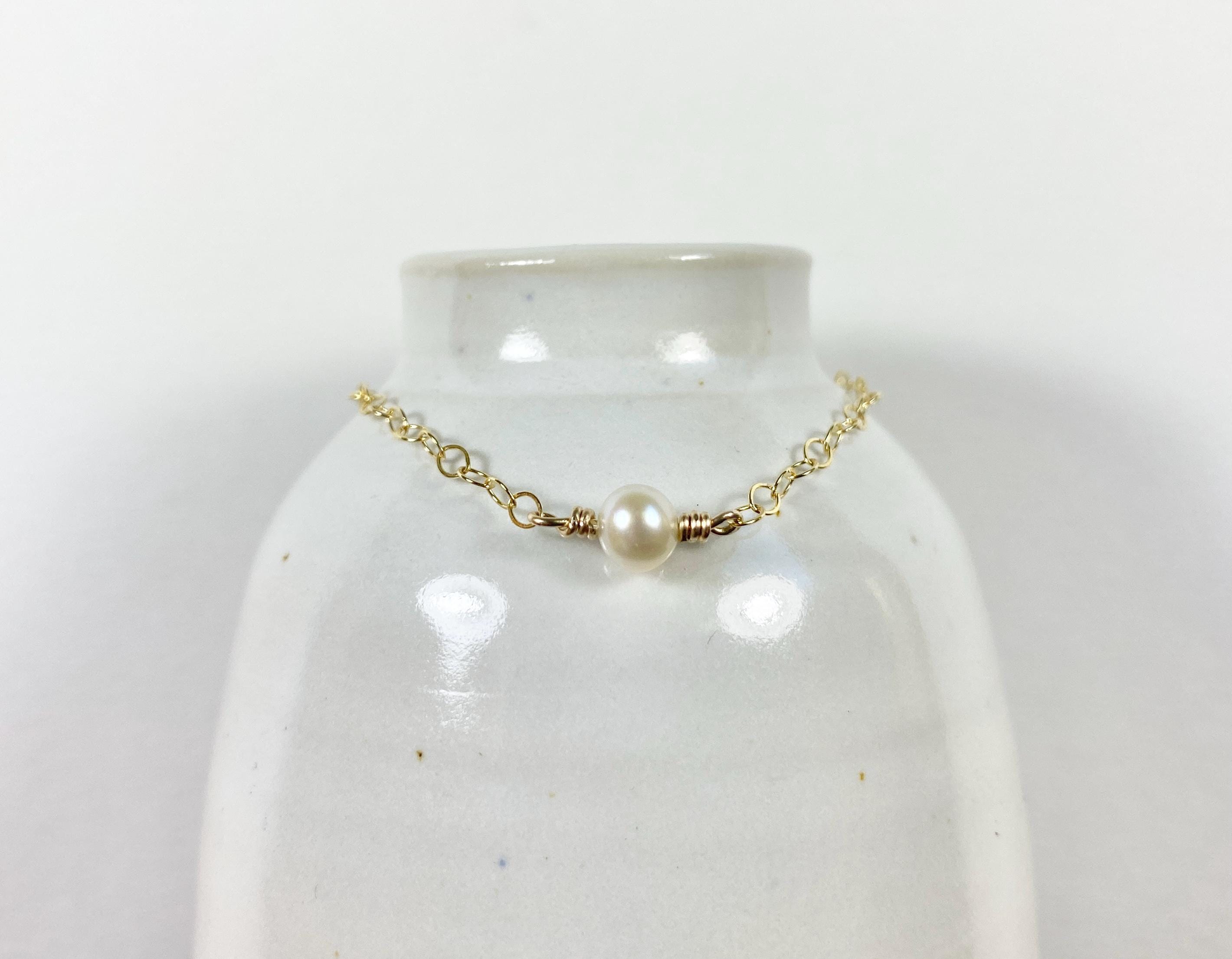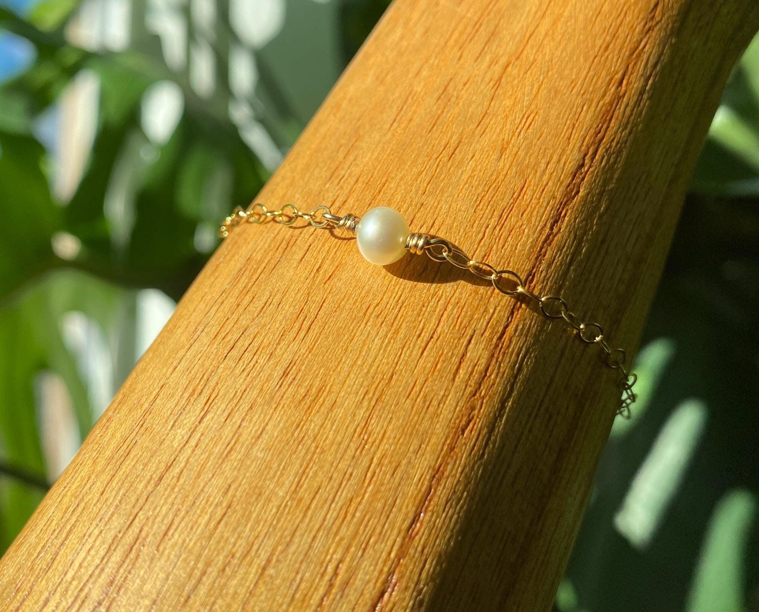 Freshwater Pearl and 14k gold fill Bracelet, June Birthstone - Adjustable, maximum length 7".
