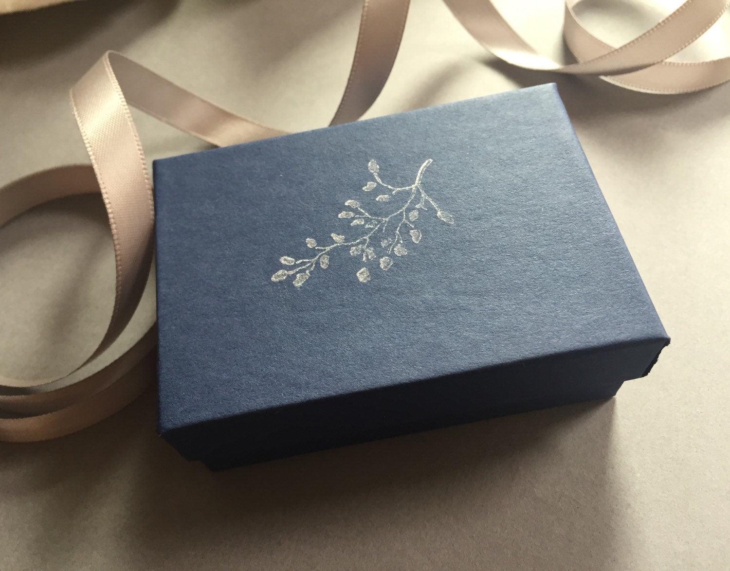 They will arrive in a pretty blue or green box with a hand stamped silver branch design on it.