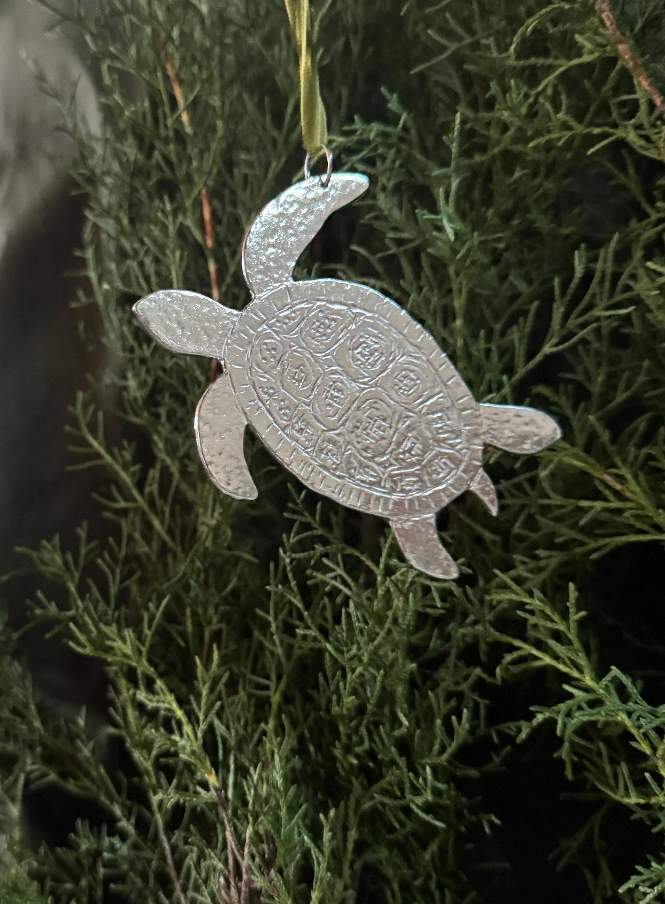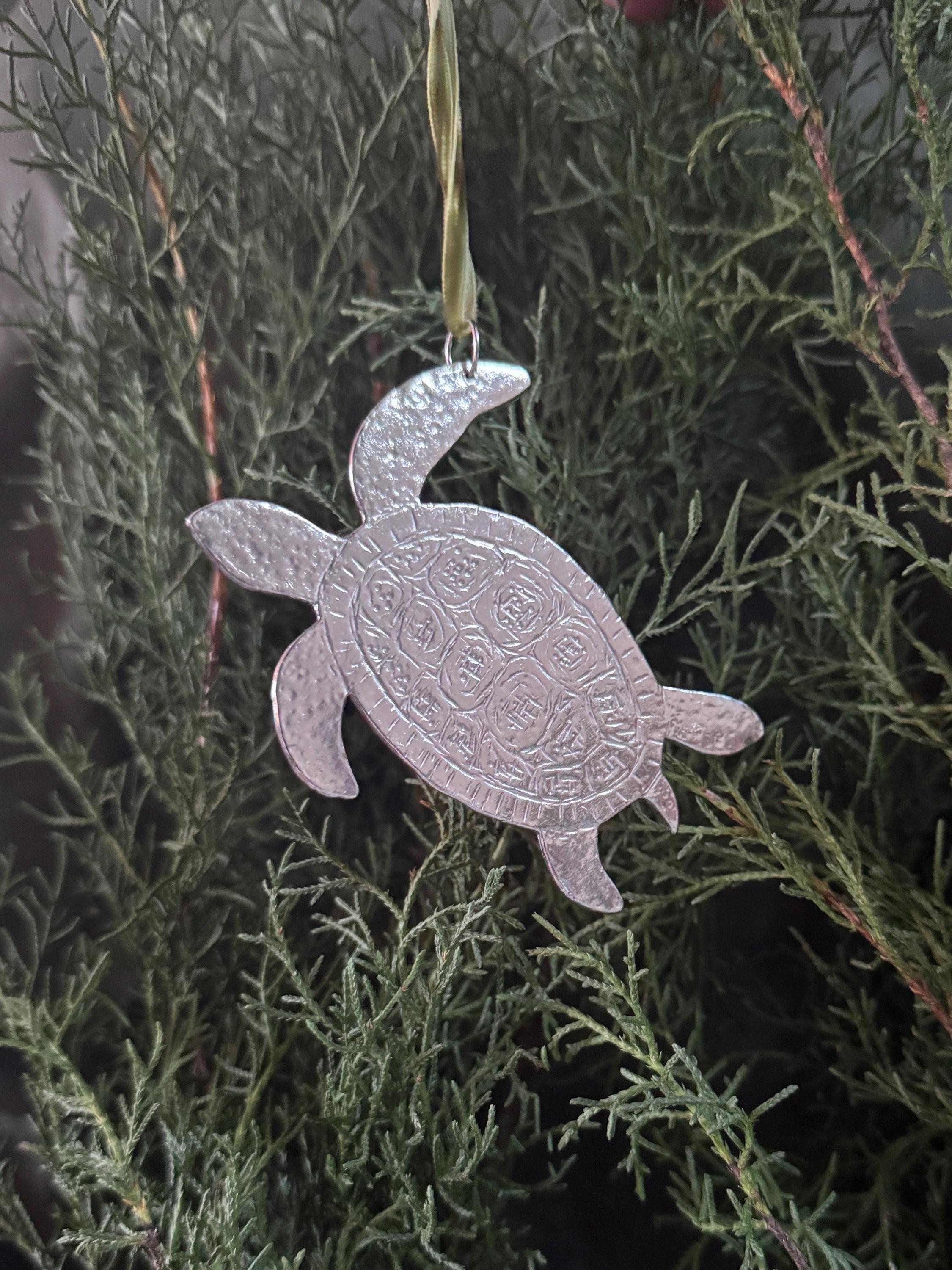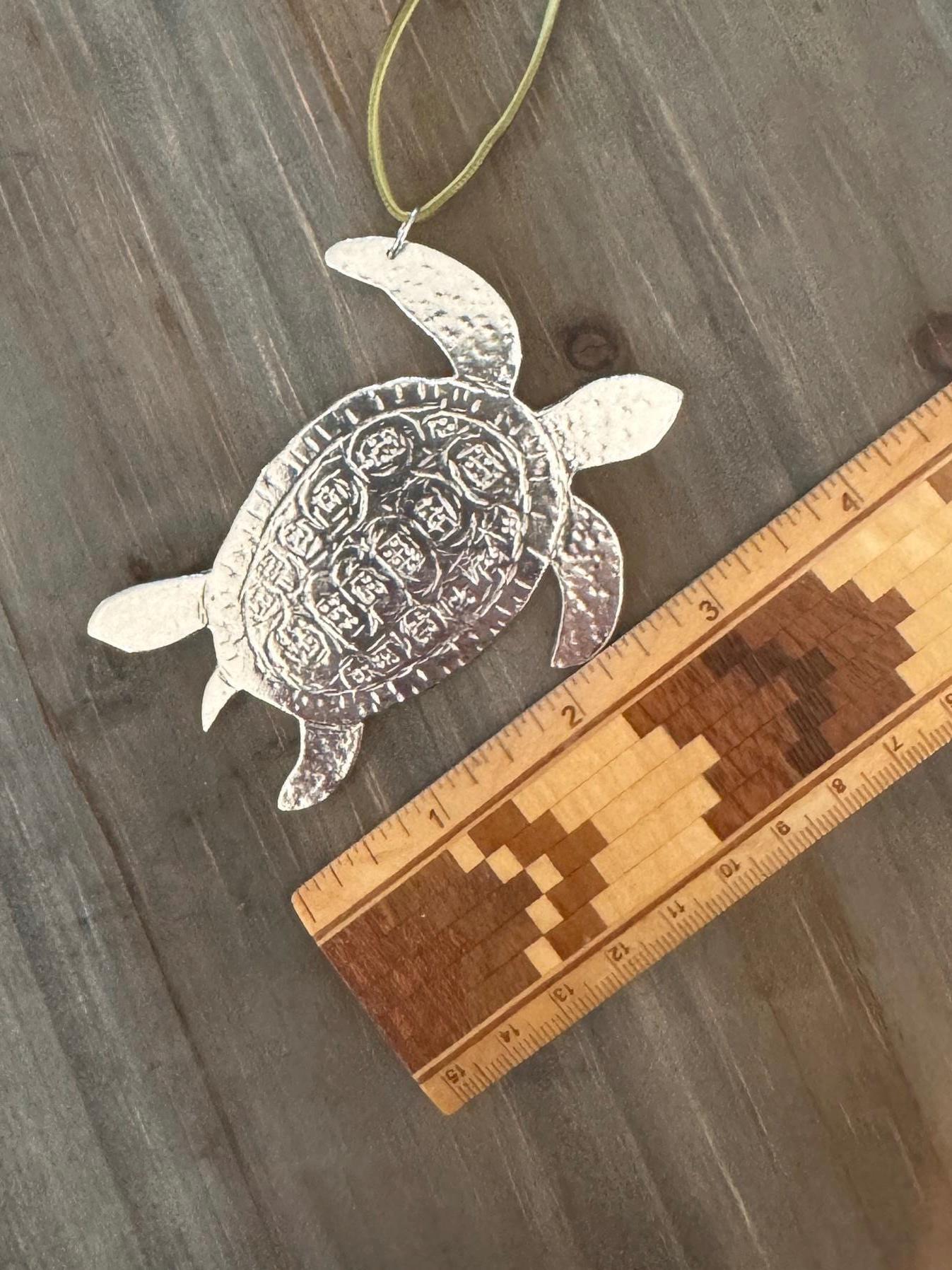 Handmade silver, Solid Pewter Sea Turtle Ornament.