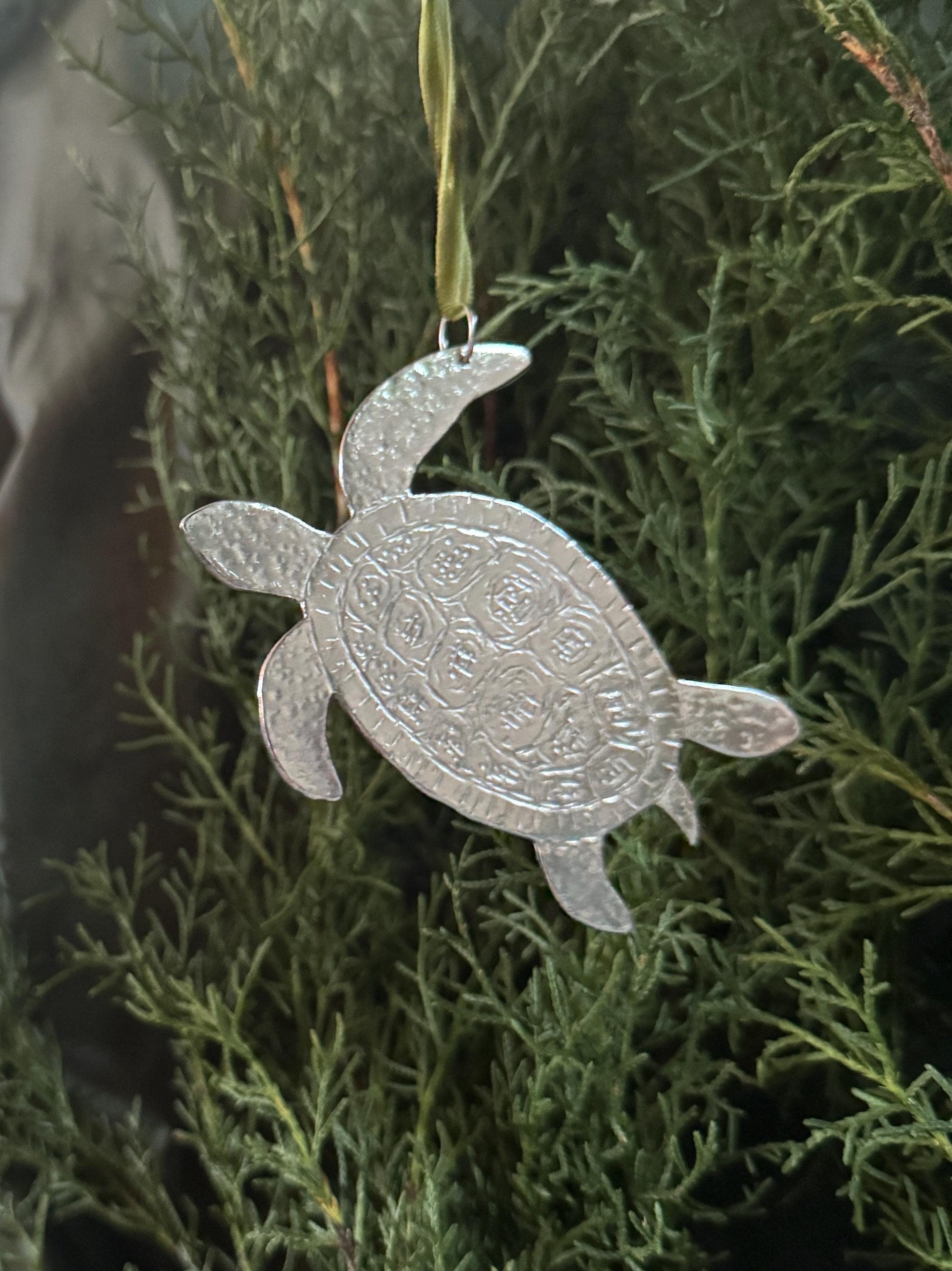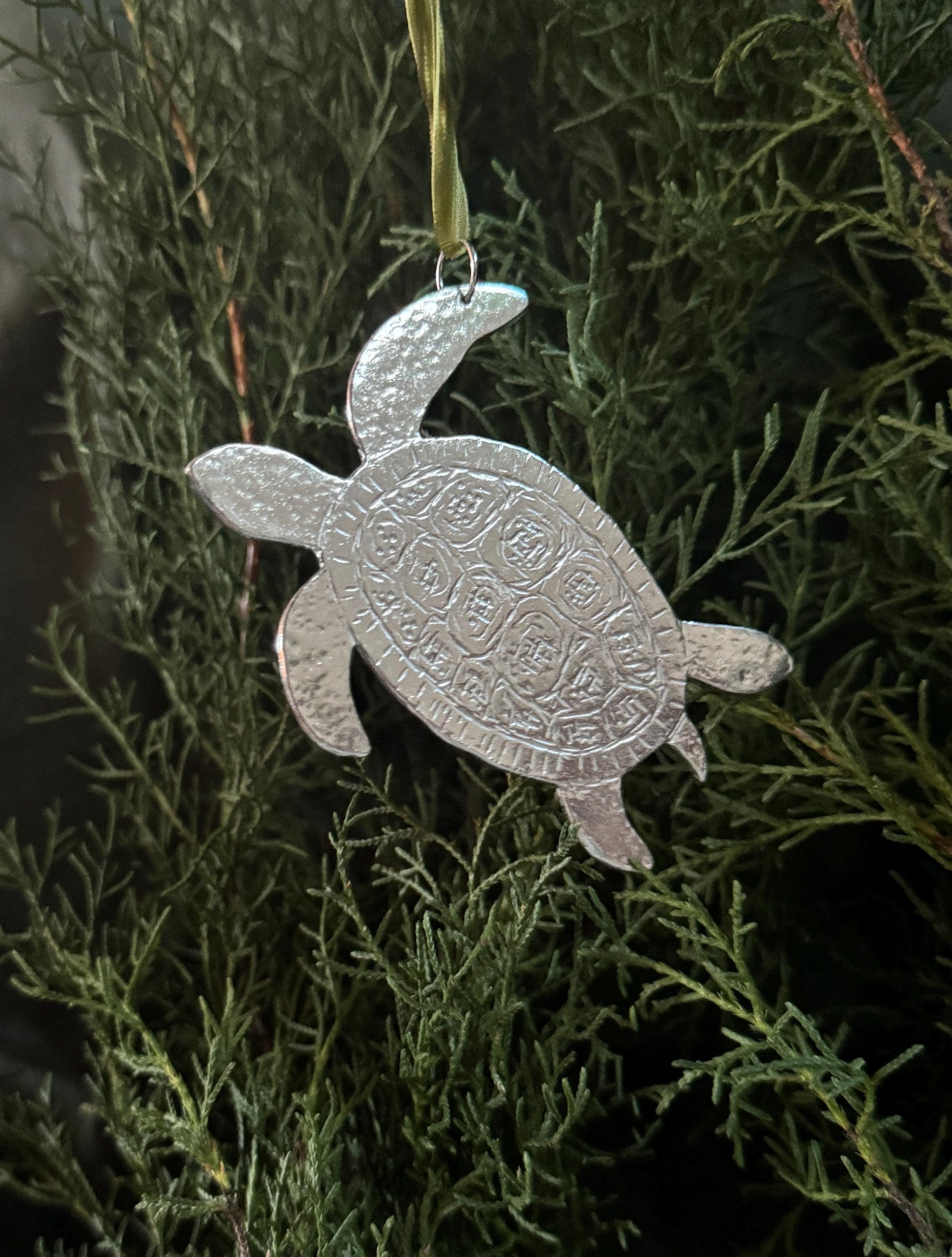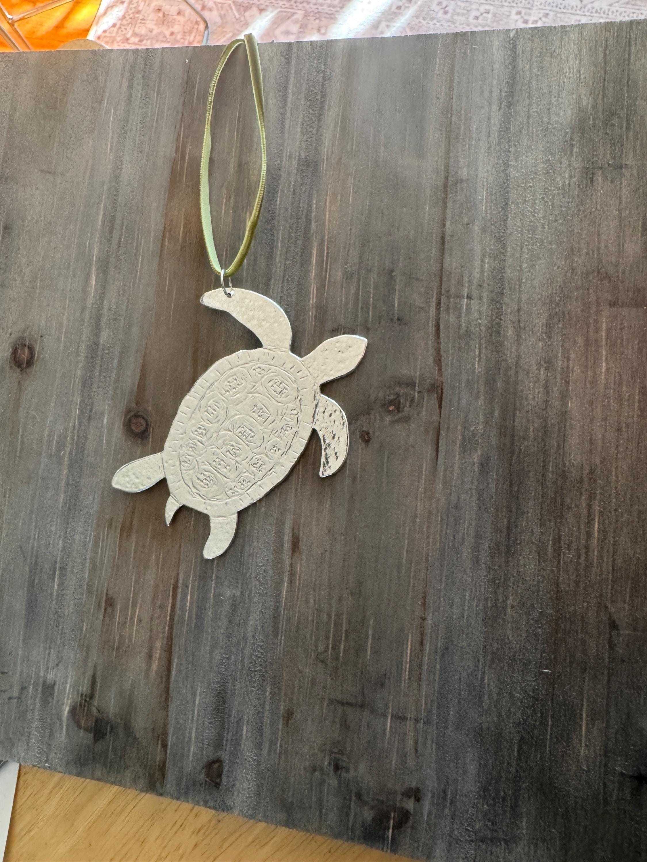 Handmade silver, Solid Pewter Sea Turtle Ornament.