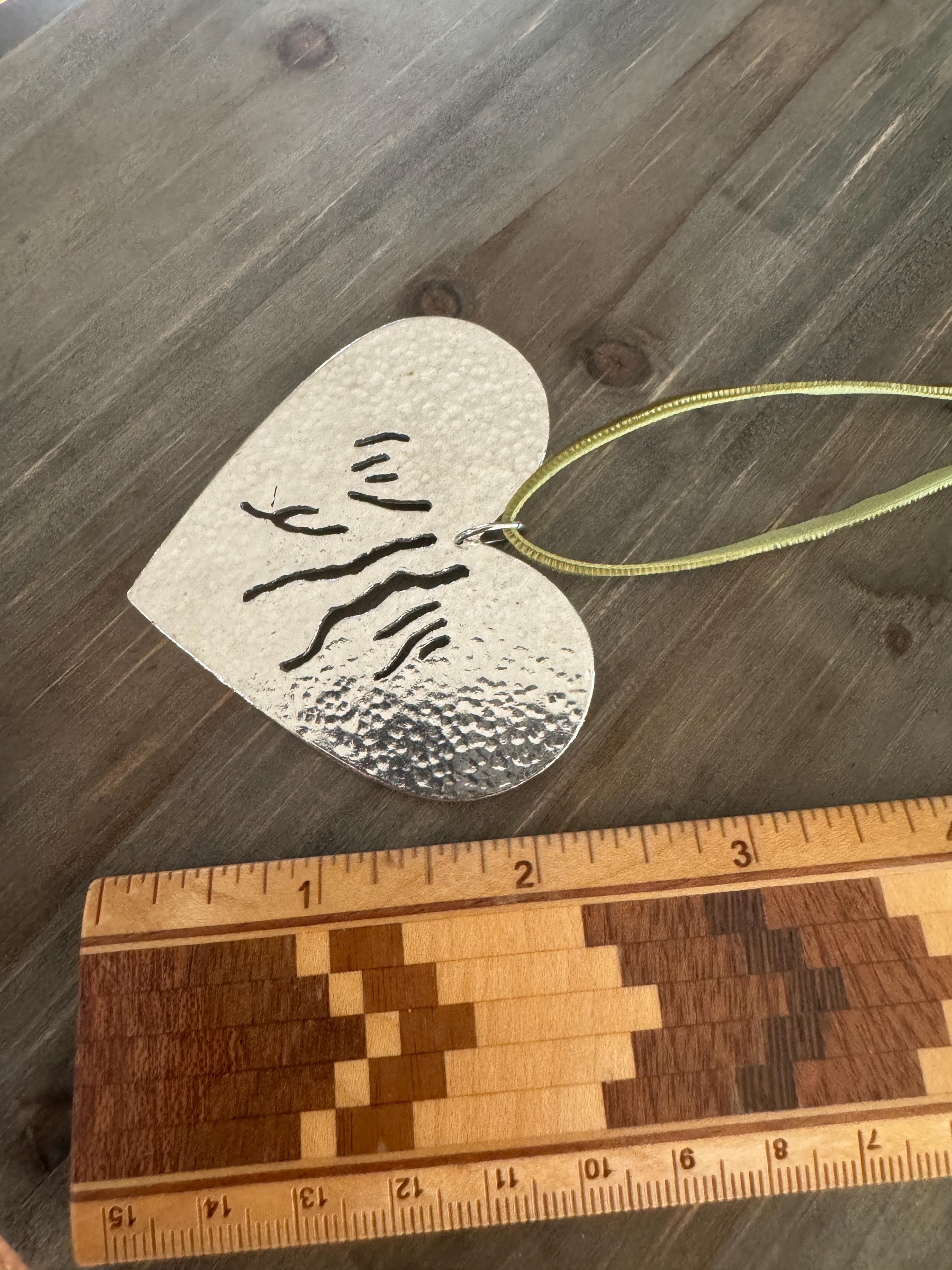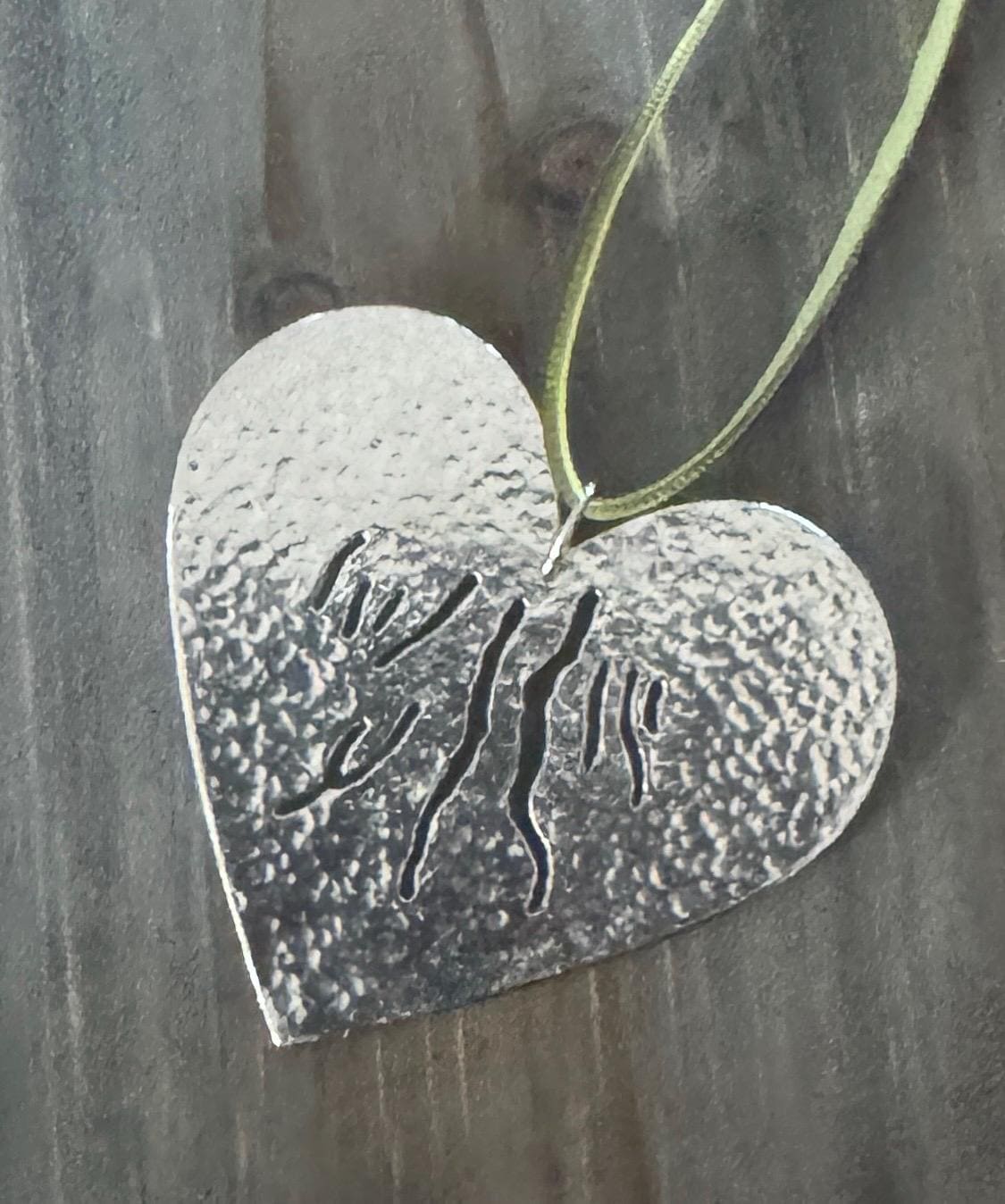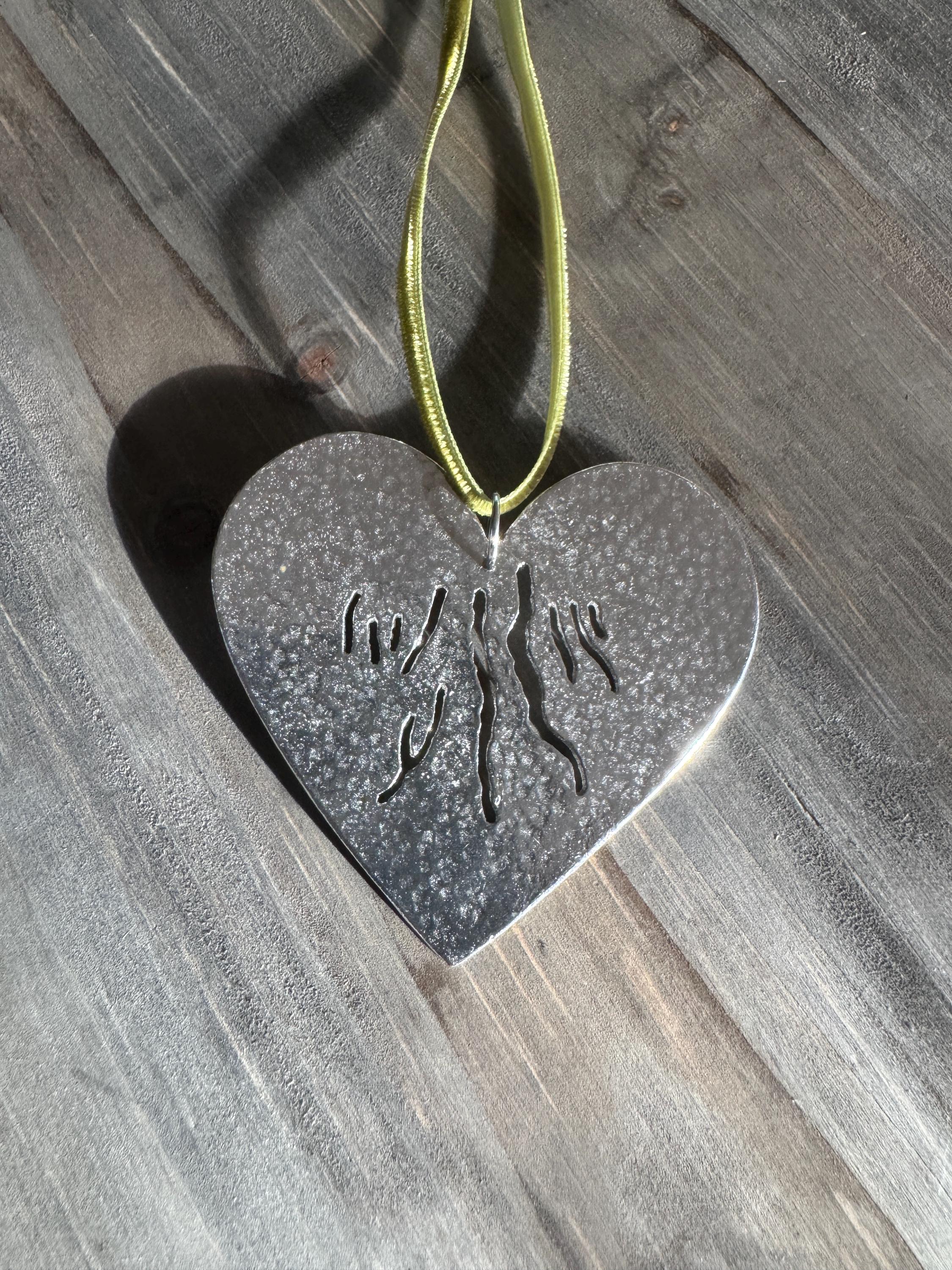 Fingerlakes Heart Ornament , finger lakes region, NY . Solid Pewter, shiny silver in color.
