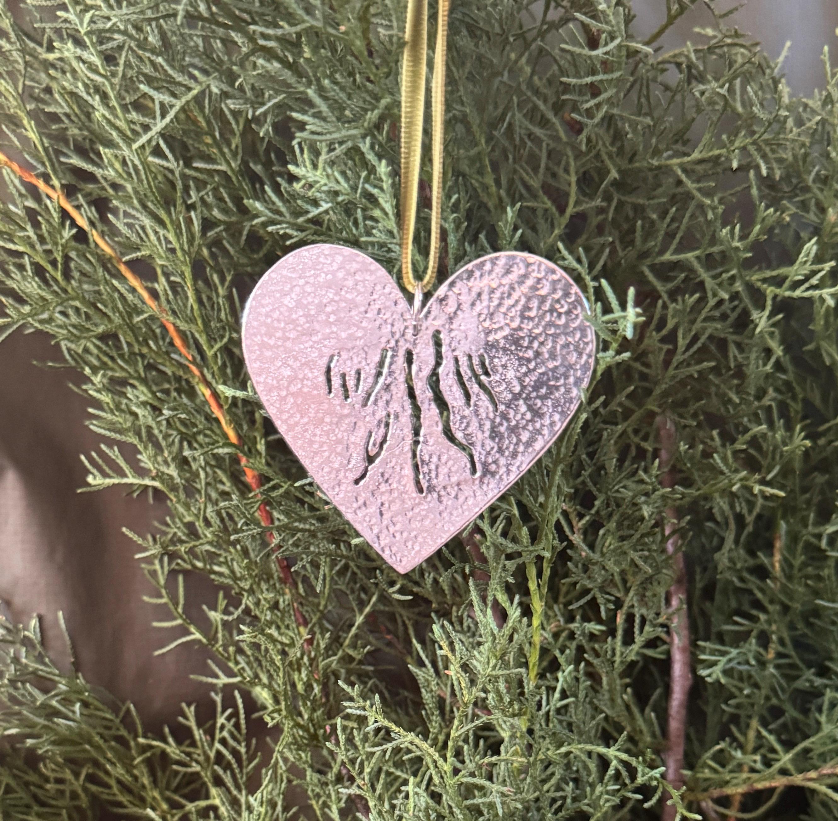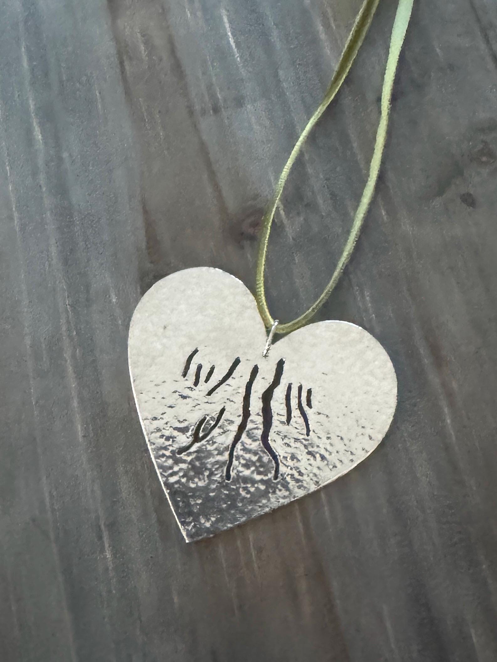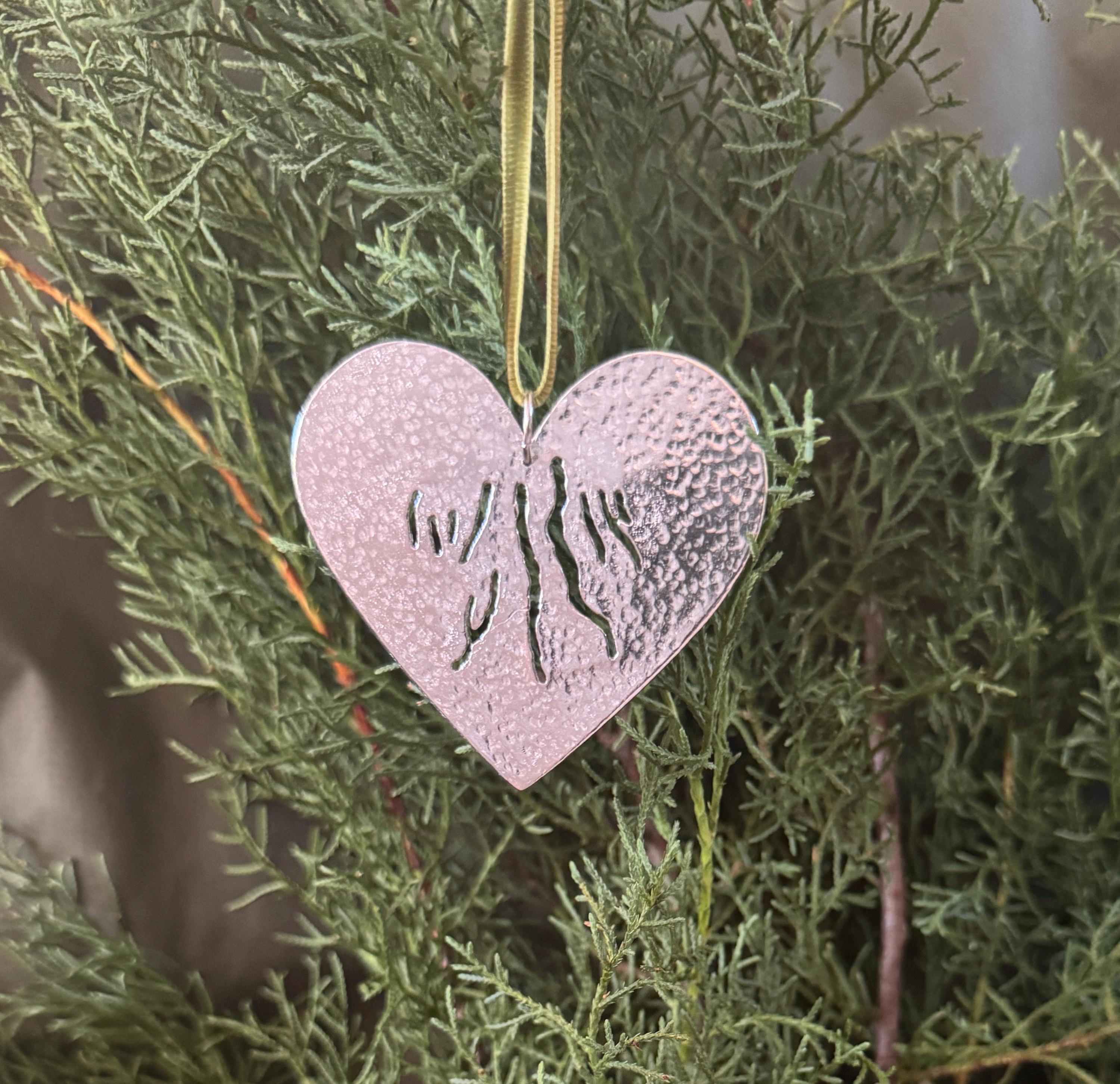 Fingerlakes Heart Ornament , finger lakes region, NY . Solid Pewter, shiny silver in color.