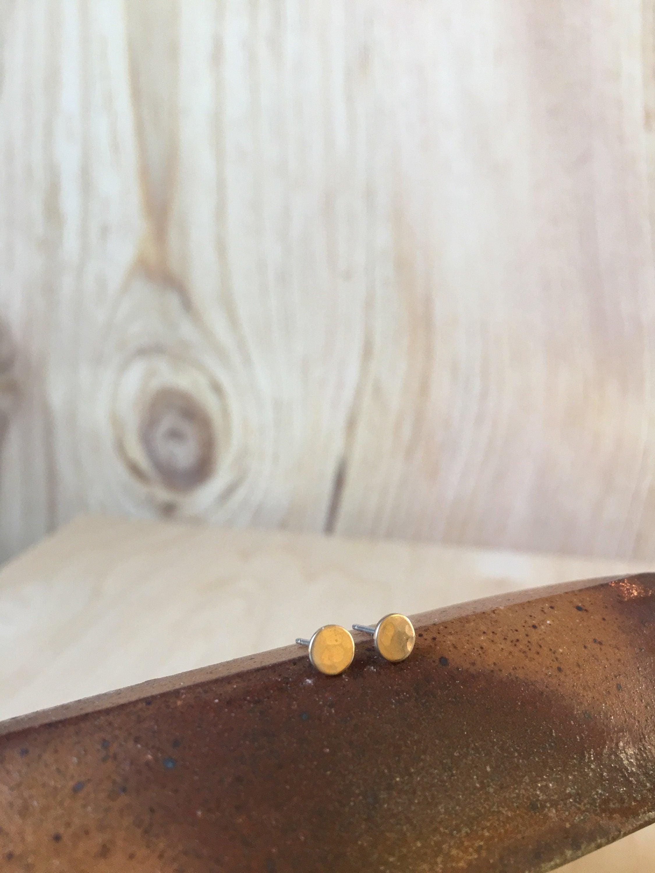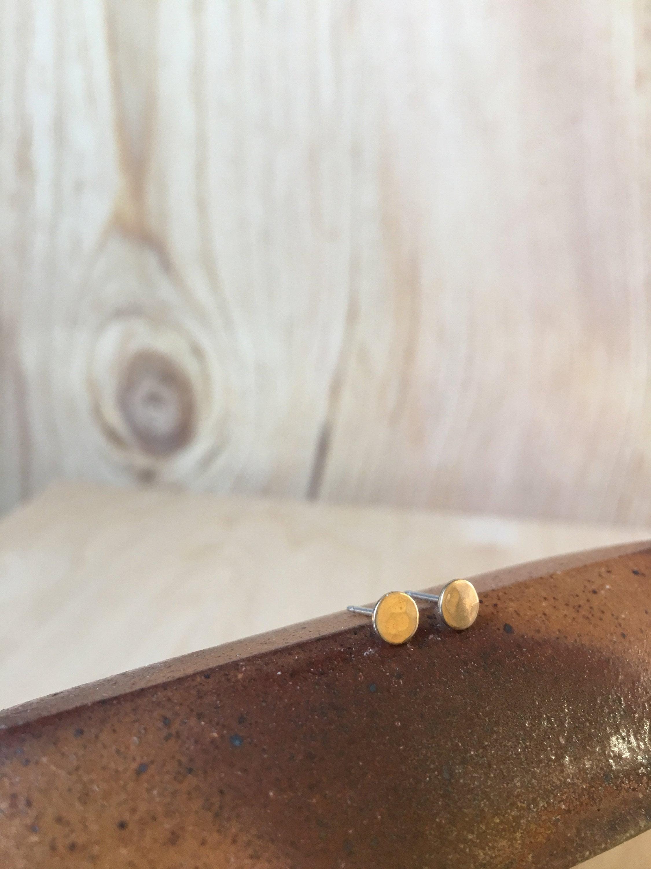 Brass Disc Earrings. Gold Brass studs. Brass post Earrings, Round, circle. Moon Earrings.
