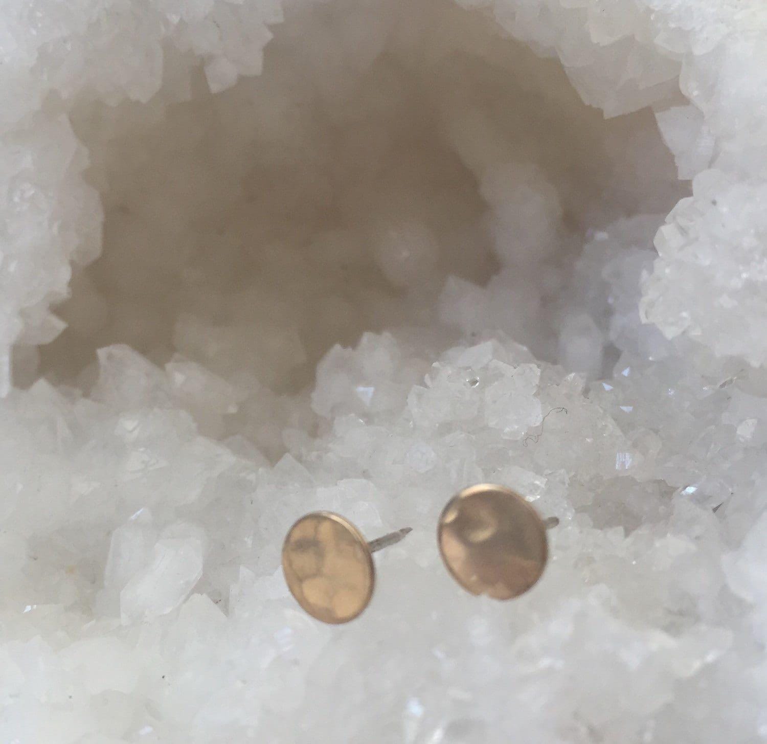 You will get one pair of my handmade post earrings. These are elegant and simple brass circles with a hammered texture. Handmade with Brass fronts and sterling silver backs and posts. I hand hammered them for a dappled texture. Because these are brass they will change in color and darken over time. I will include a polishing kit so you can keep them bright. May vary slightly from photos due to unique handmade nature.