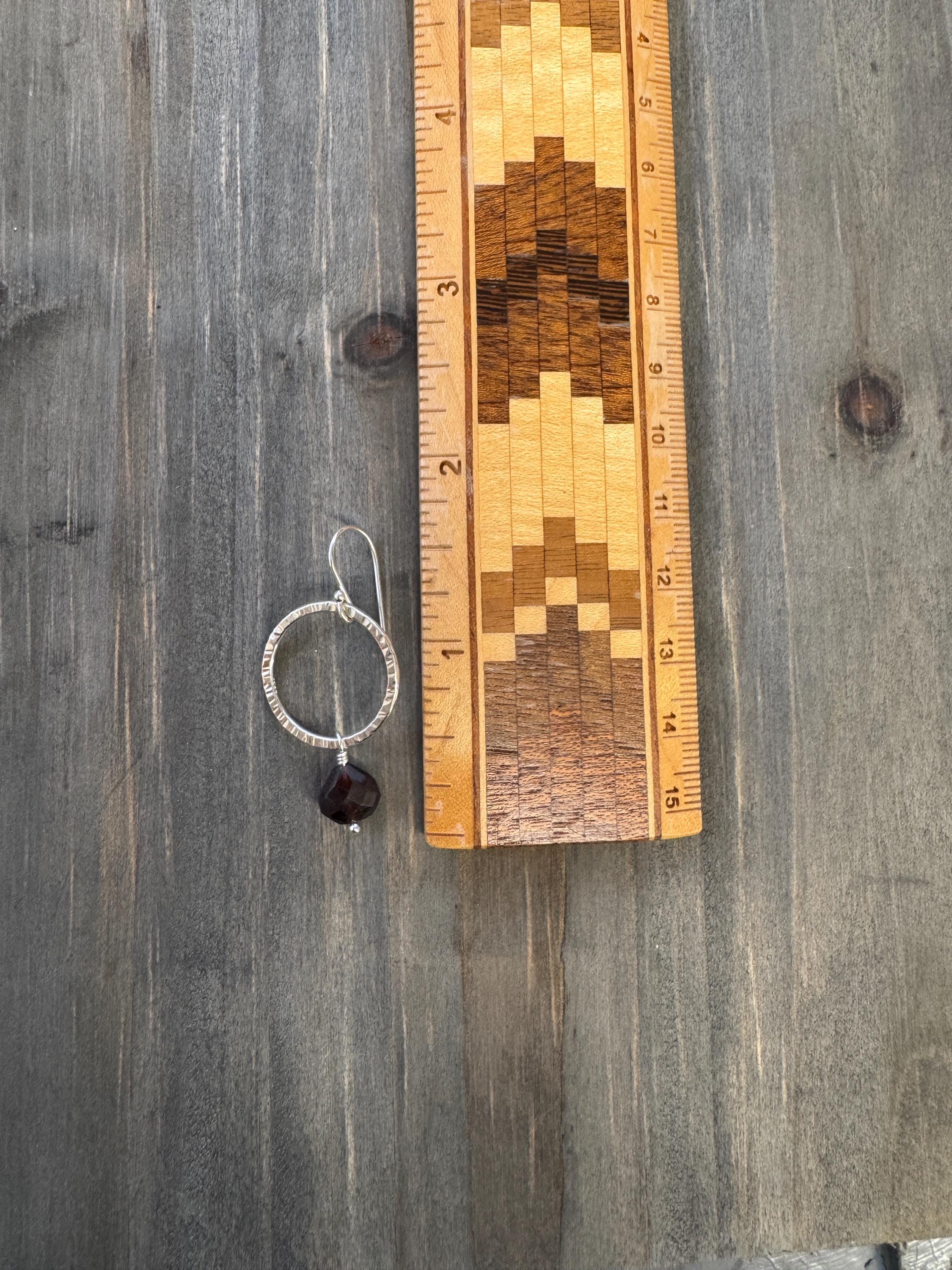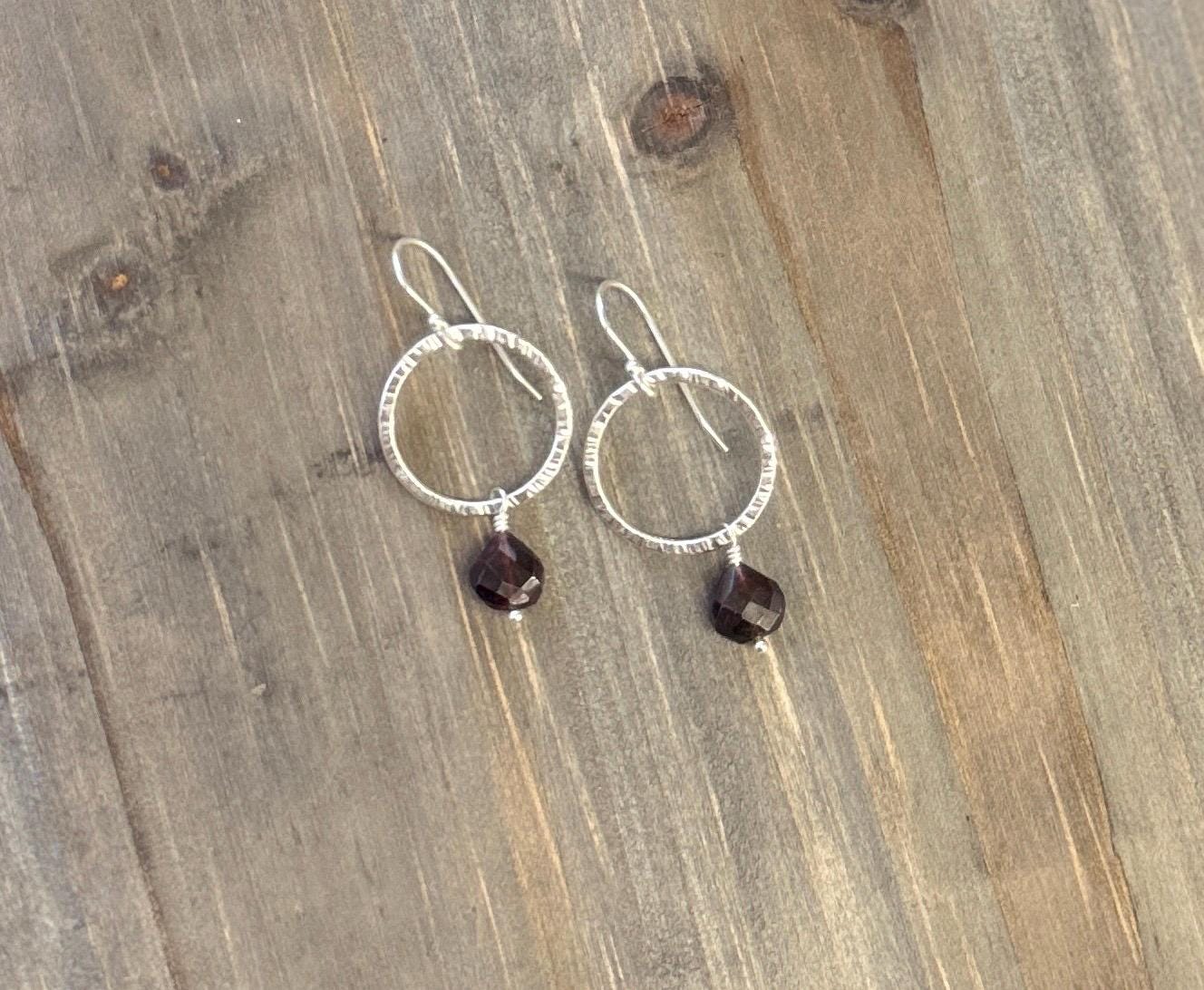 Sterling Silver & Garnet Earrings, Pretty Sterling Silver Hoops, Natural Red Gemstone Earrings, January Birthstone