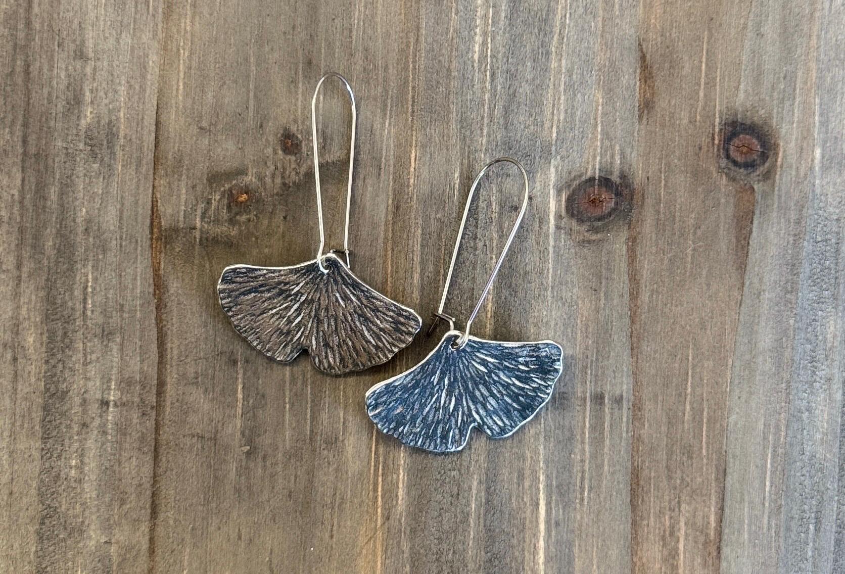 Pewter Ginkgo Leaf Earrings, Modern Pewter Lead Free, Handmade Botanical Earrings