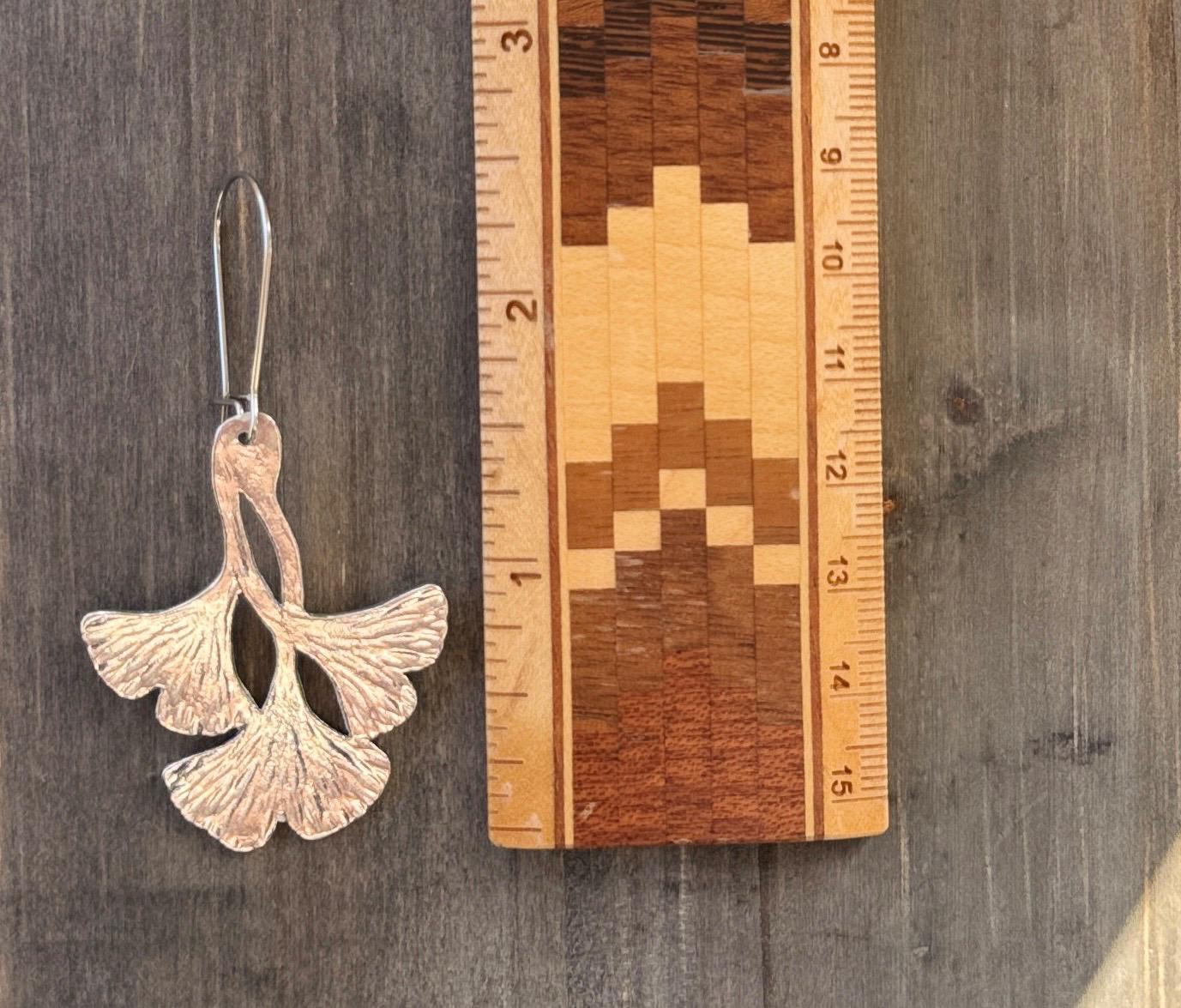 Pewter Triple Ginkgo Leaf Earrings, Modern Pewter Lead Free, Handmade Botanical Earrings