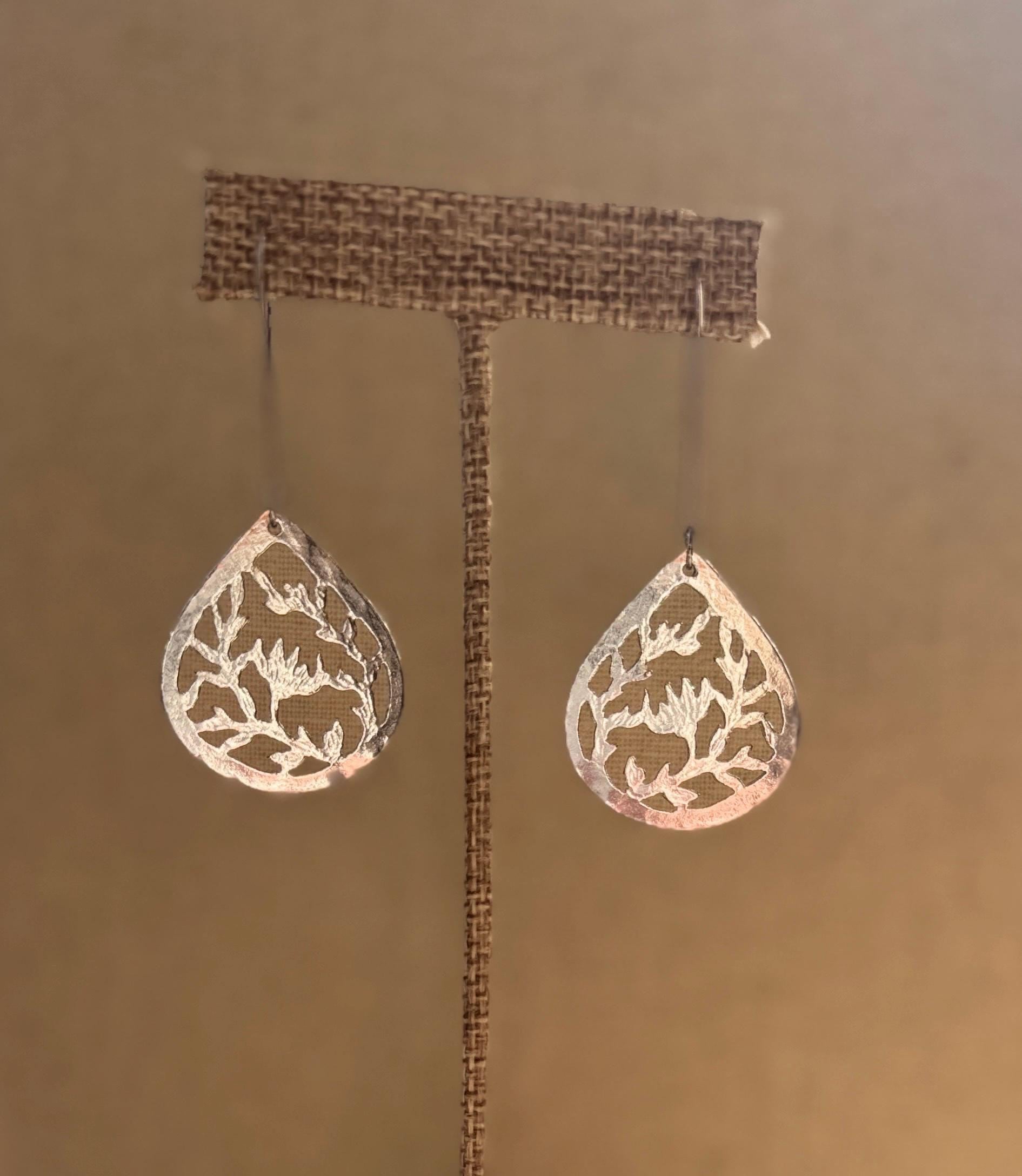 These teardrop shaped earrings are geometric and modern, with a unique textured finish that will vary slightly from pair to pair.