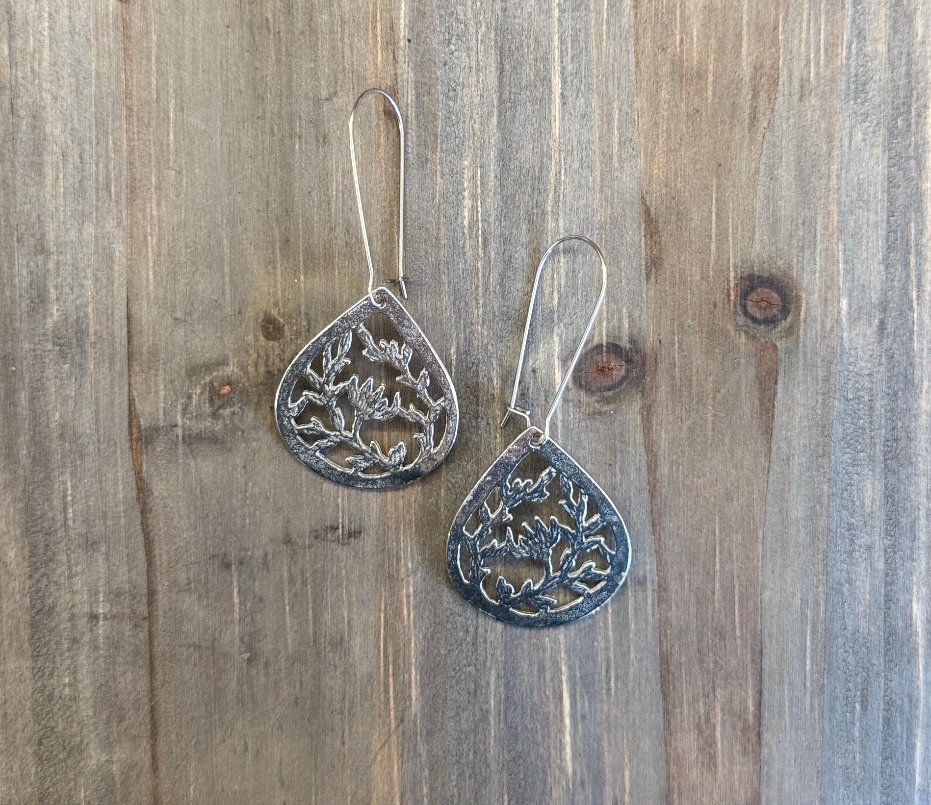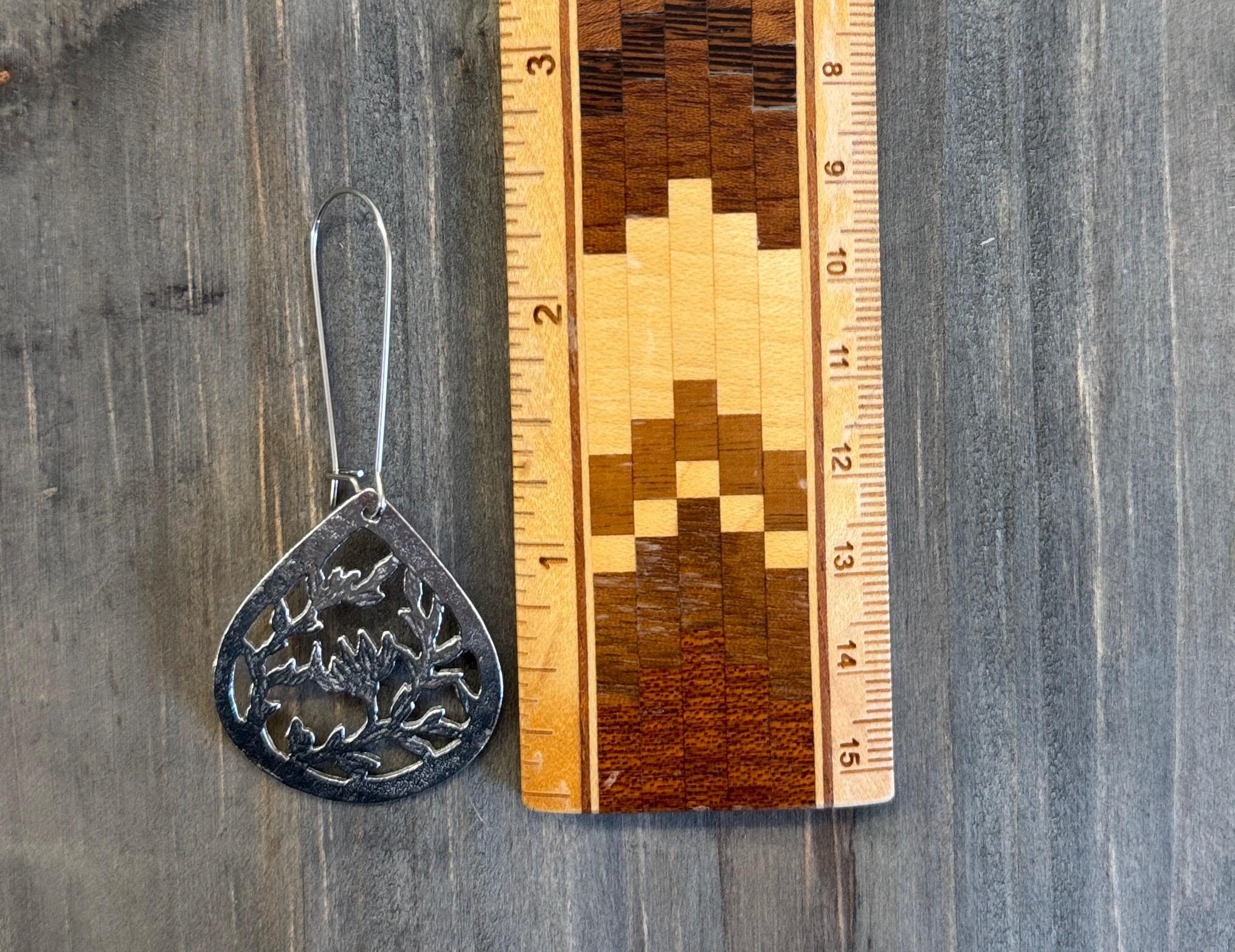 Pewter Botanical Teardrop Earrings, Modern Pewter Lead Free, Handmade Minimalist Earrings