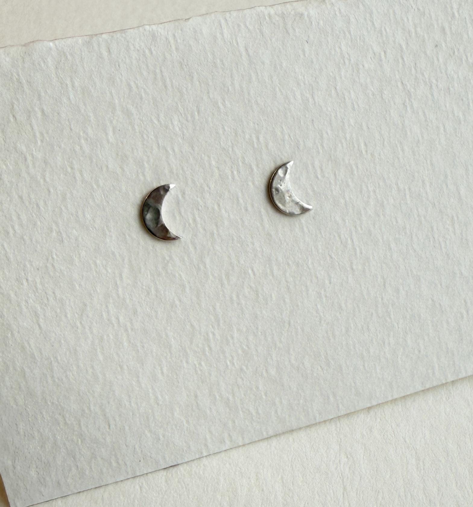 Pretty, narrow, crescent moon sterling silver post earrings. Each pair is a made with one of a kind pieces so will vary slightly. Your pair will be very similar but unique.