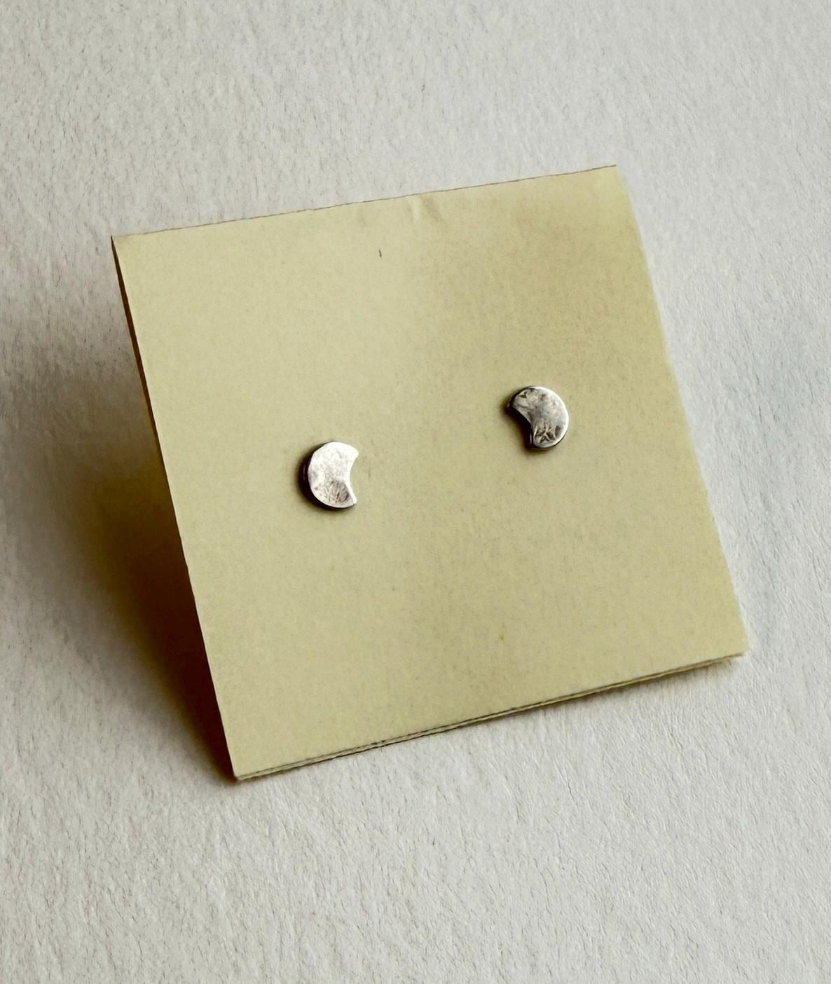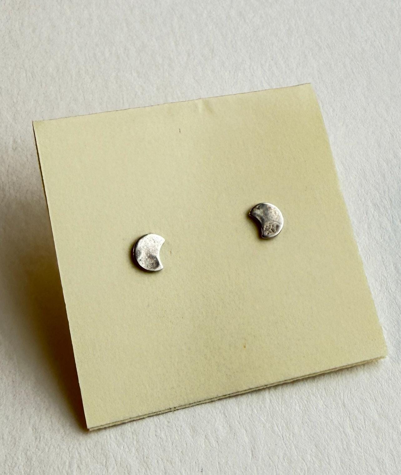 Pretty crescent moon sterling silver post earrings. Each pair is a made with one of a kind pieces so will vary slightly. Your pair will be very similar but unique.