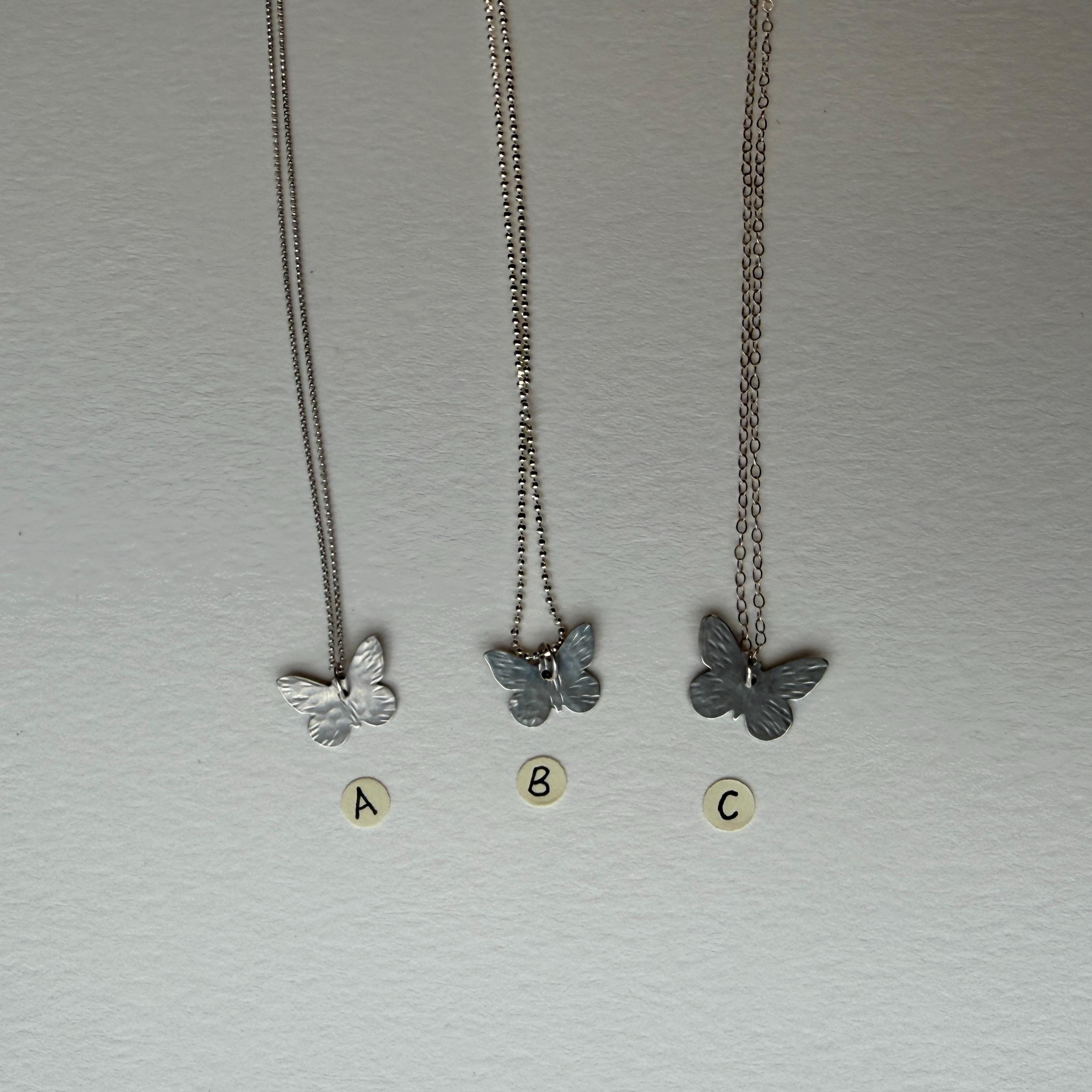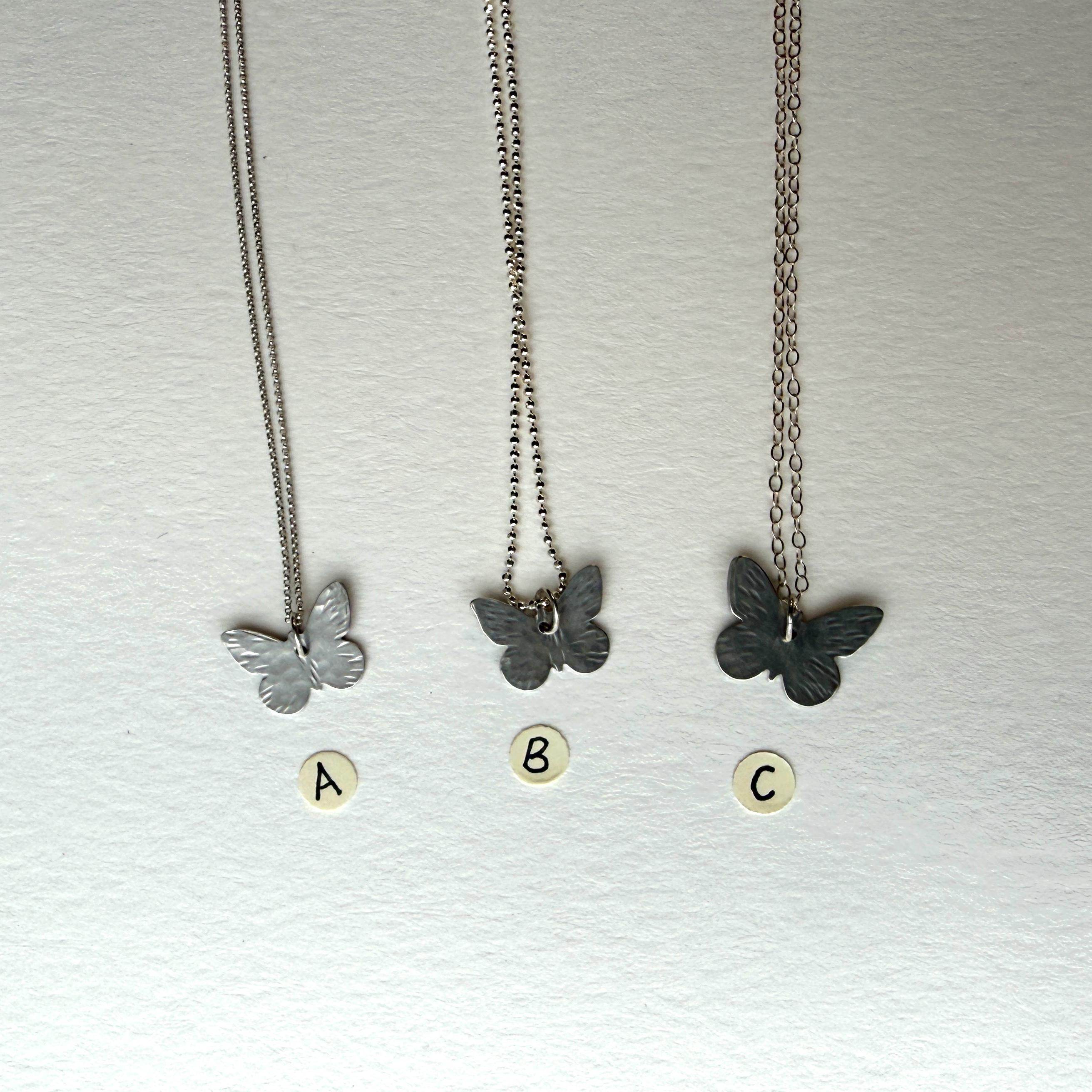 Sweet small sterling silver butterfly necklace. Each piece is individually made so they will vary slightly and be unique.