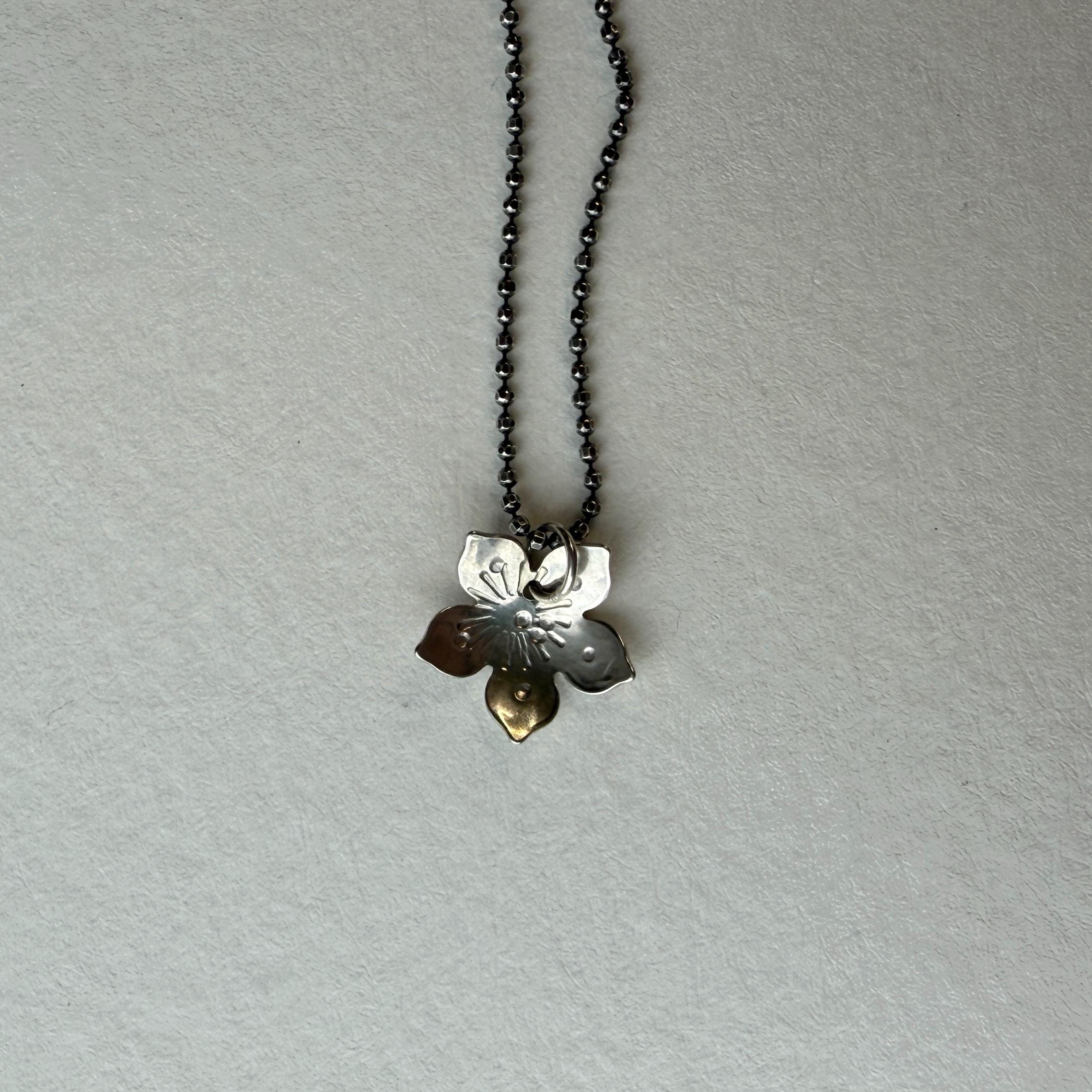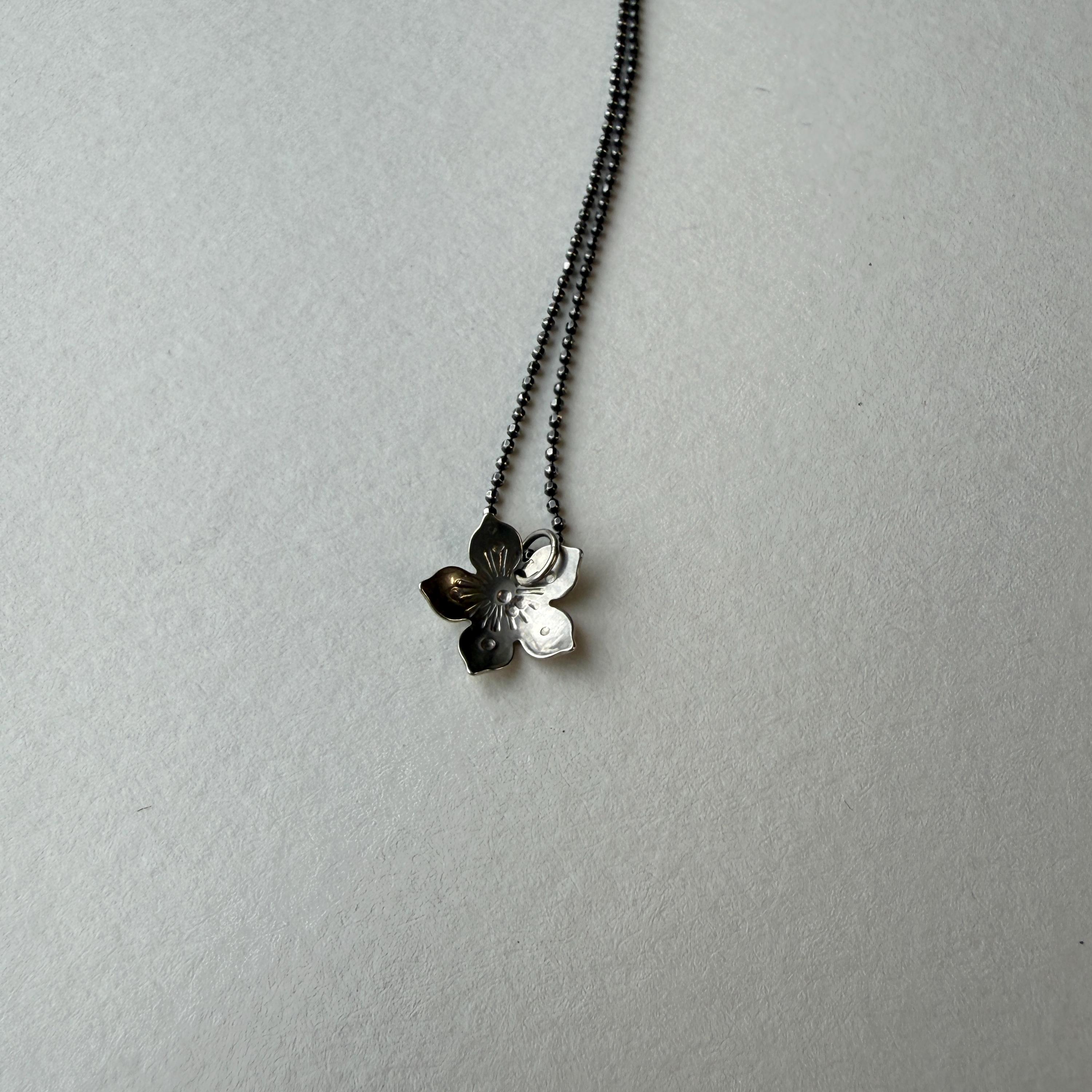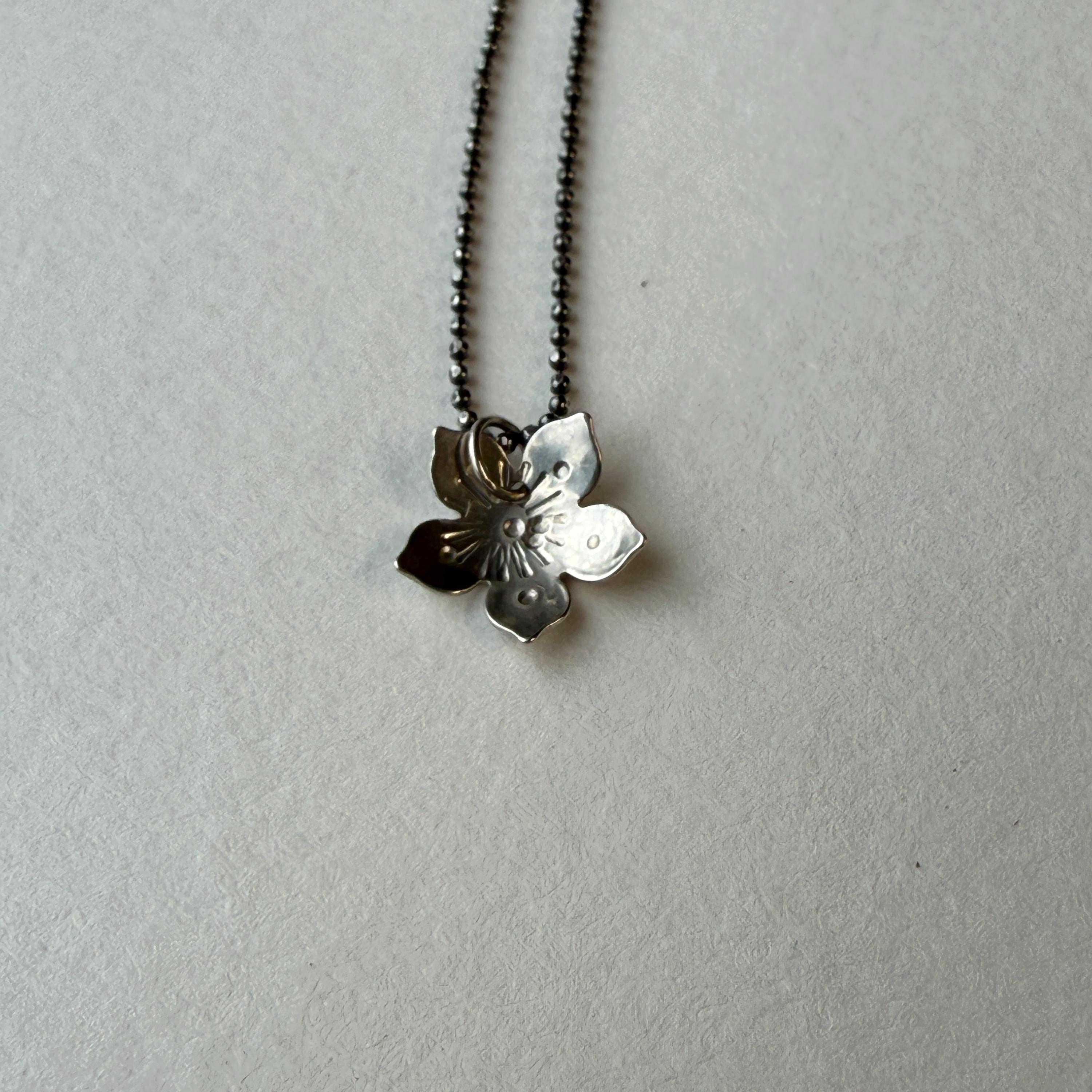 Tiny sterling silver flower necklace. Each piece is individually made so they will vary slightly and be unique.