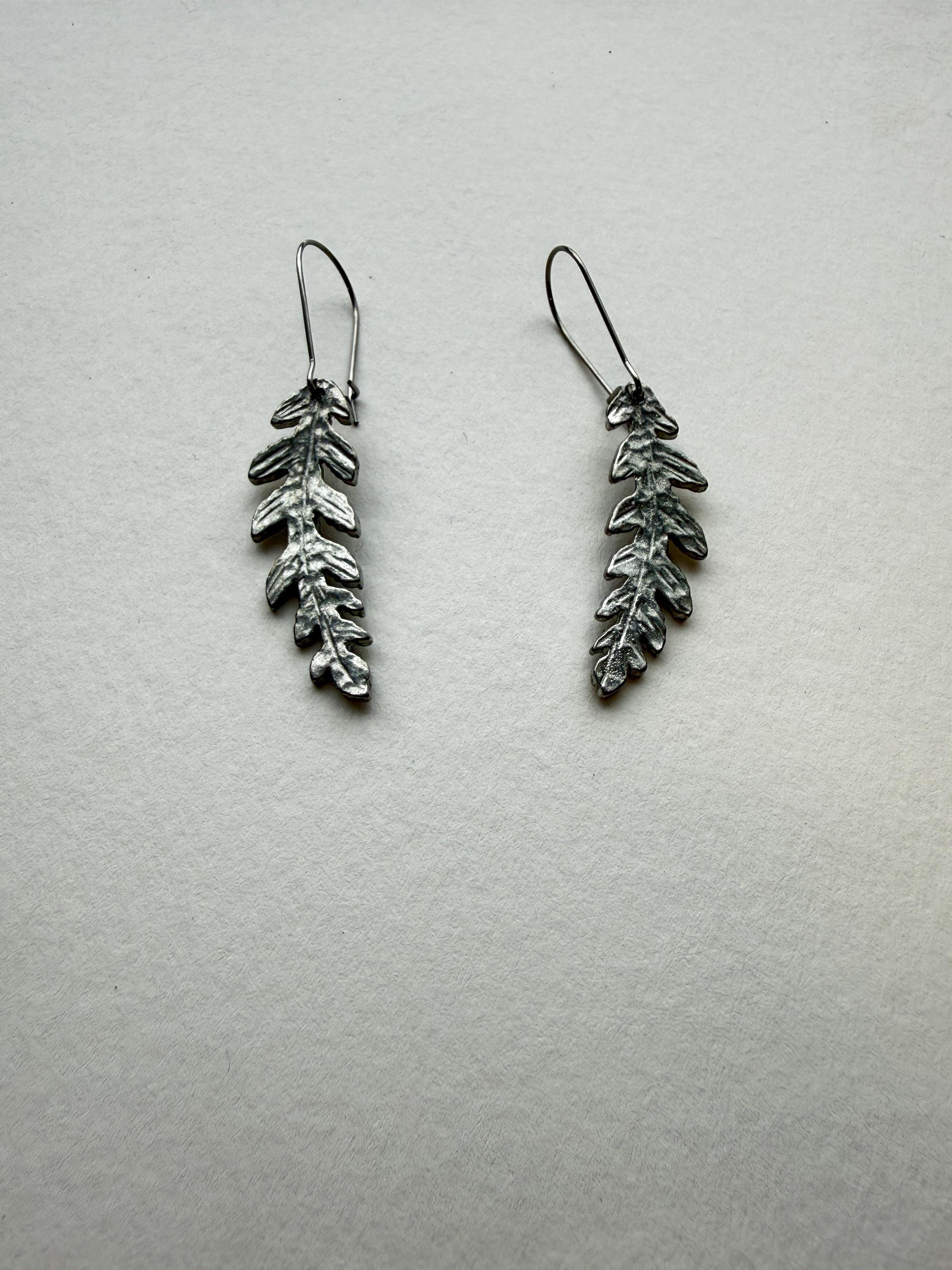 Fern Earrings, Modern Pewter Lead Free, Handmade Botanical Earrings