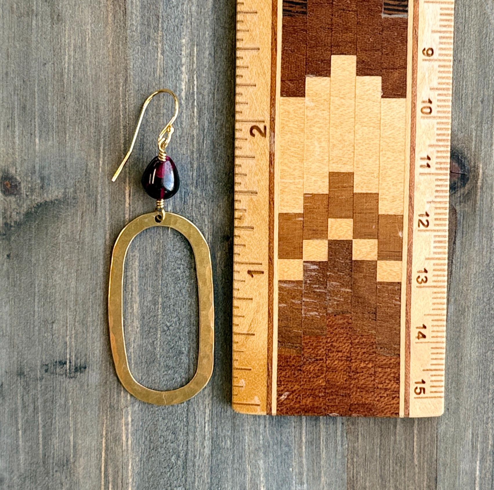 Garnet, Brass, and 14k Gold Filled Oval loop Earrings