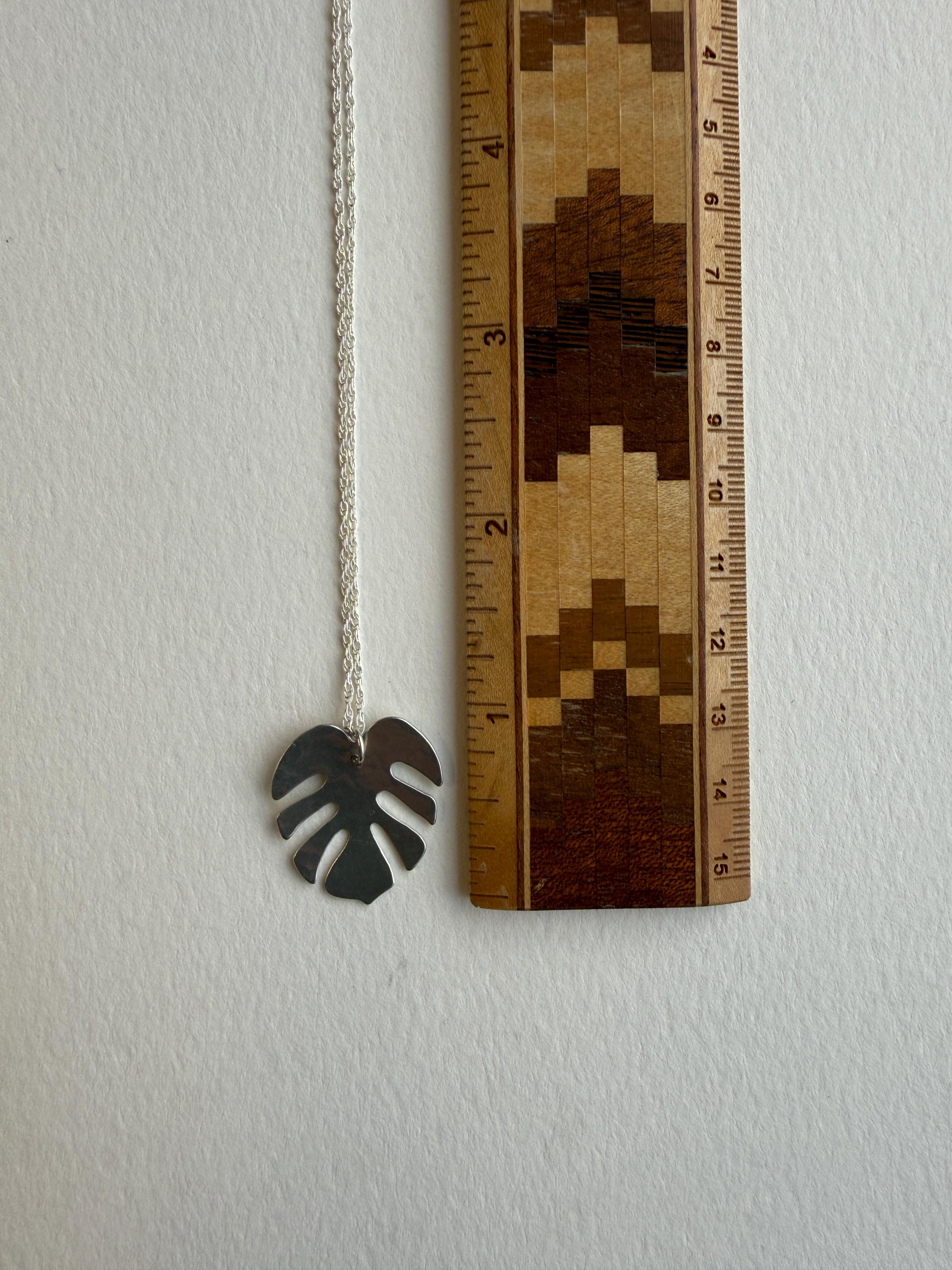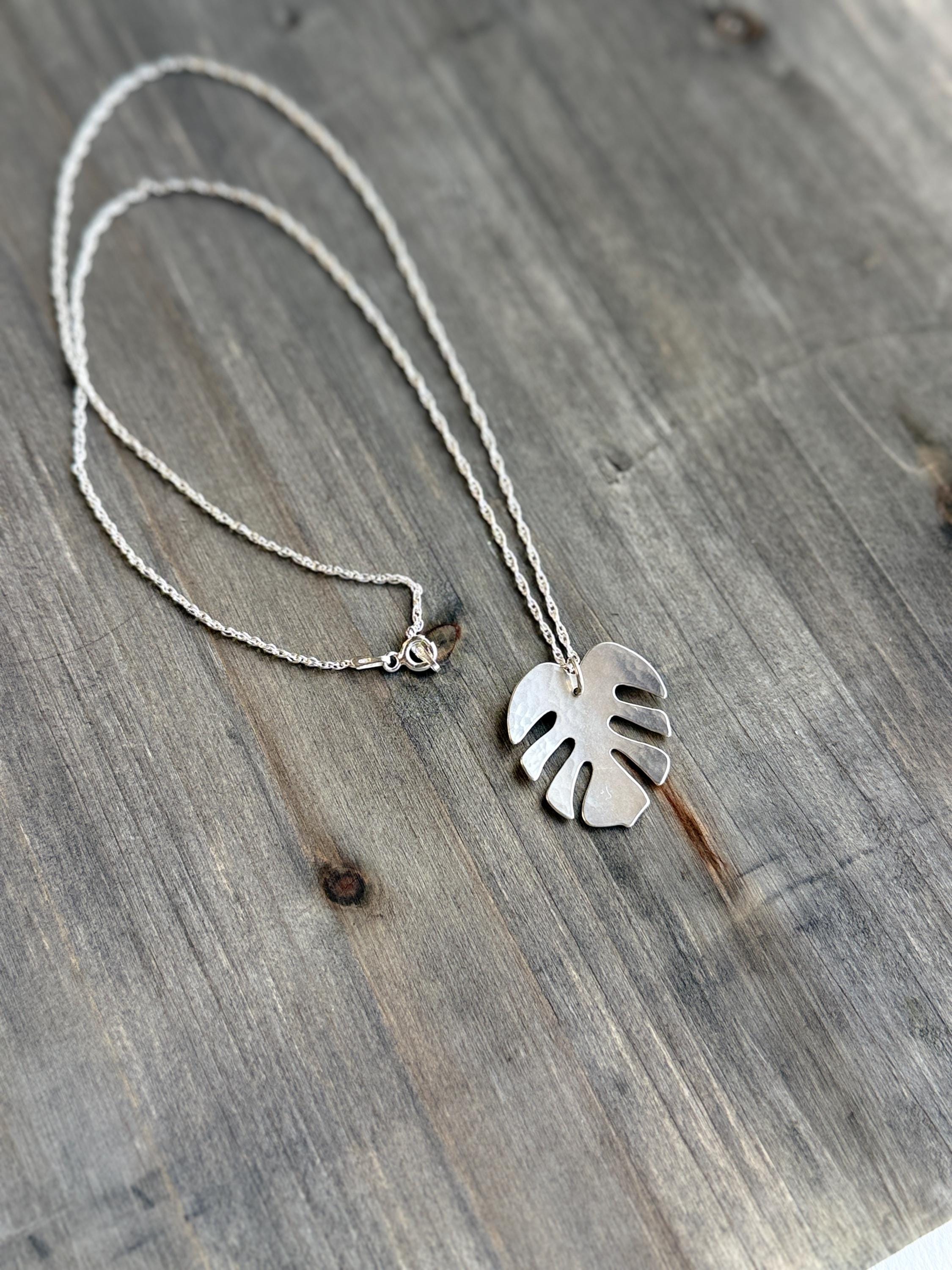 Sterling Silver Monstera Leaf Necklace, Handmade